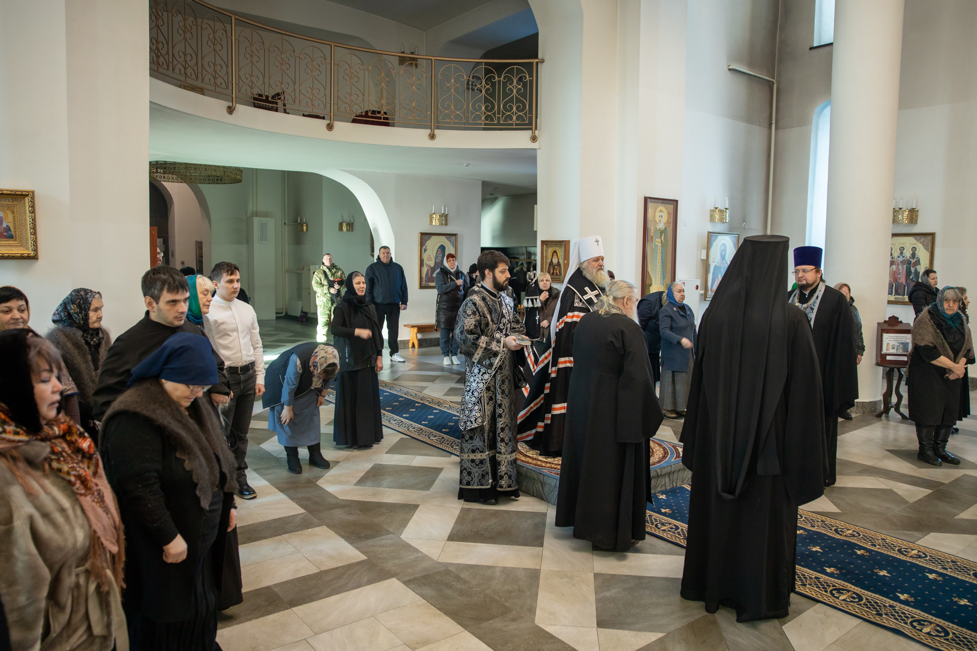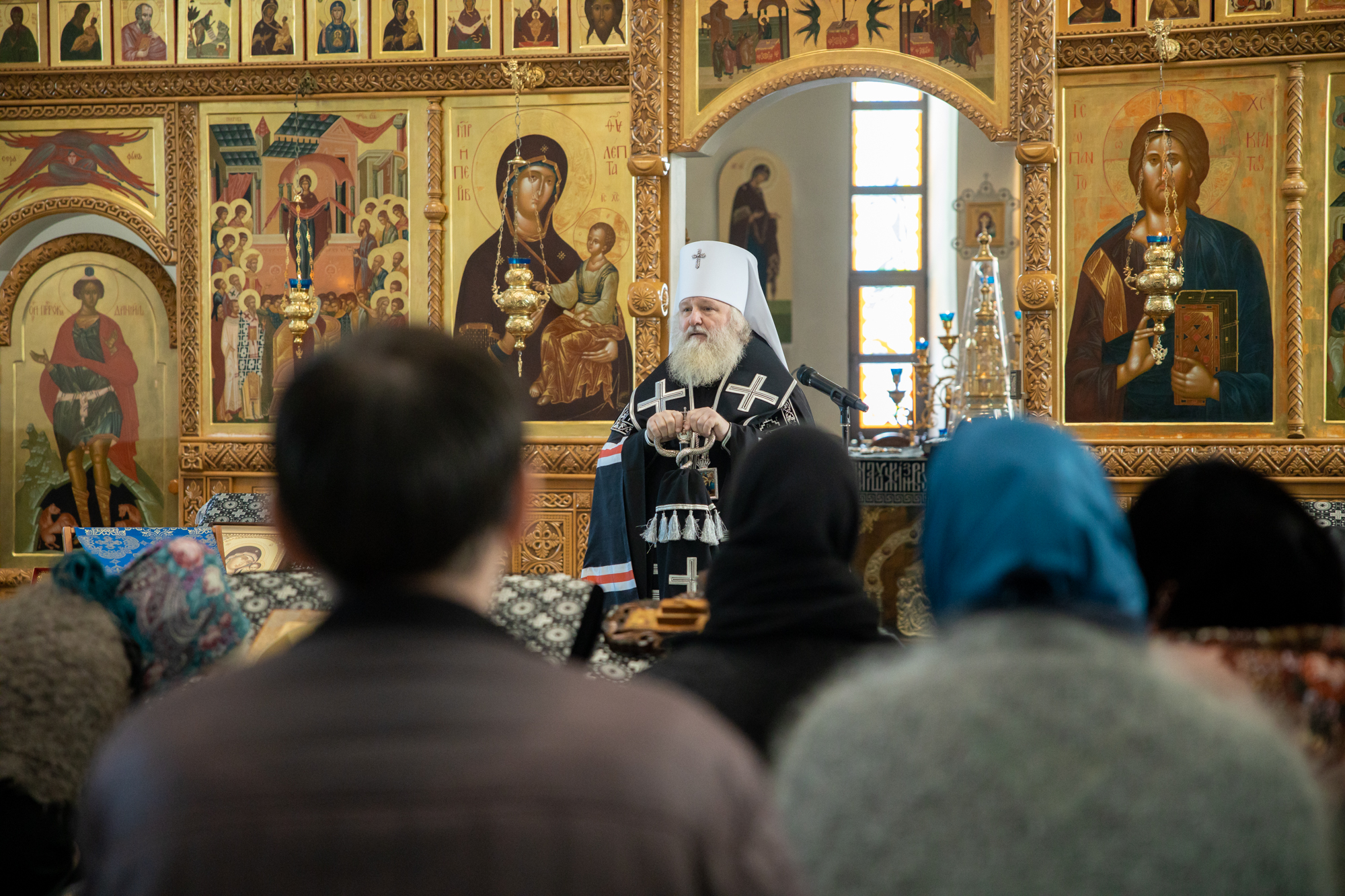 ГалереяВ четверг первой седмицы Великого поста митрополит Павел молился за уставным богослужением в женском монастыре в честь иконы Божией Матери «Умиление» г. Сургута