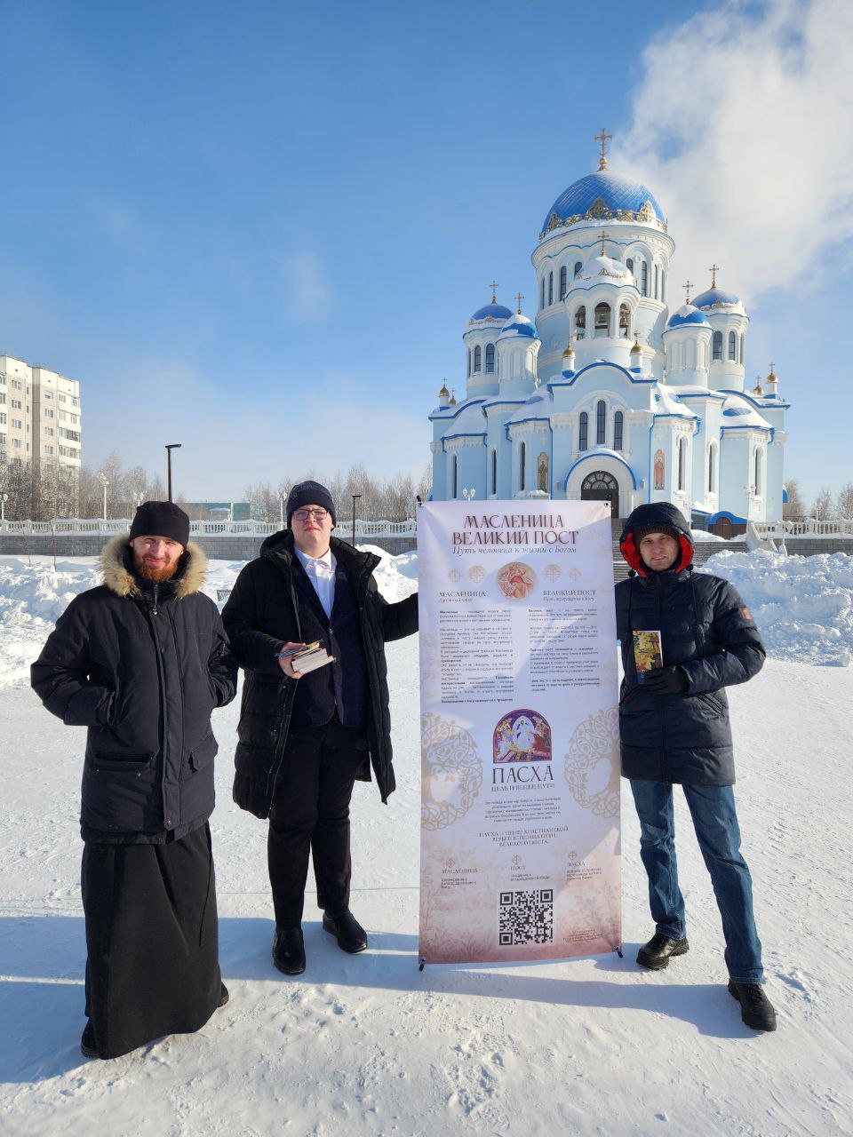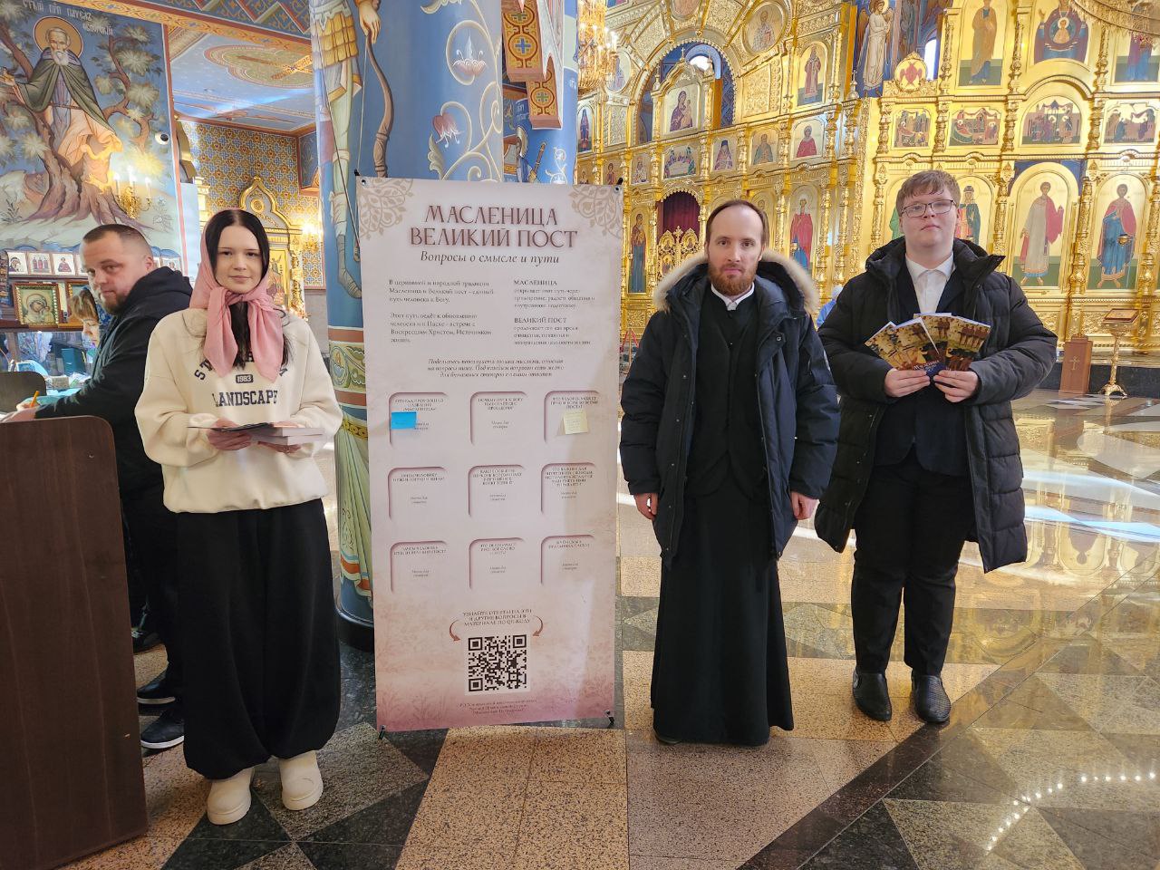22 февраля 2026 г. по окончании Божественной литургии в храме Архистратига Михаила г. Нефтеюганска, в рамках акции «Масленица-Великий пост» участниками православного молодежного движения «ФАВОР» при храме Архистратига Михаила г. Нефтеюганска, была организована раздача буклетов, подготовленных к распространению Синодальным Миссионерским отделом Ханты-Мансийской епархии.