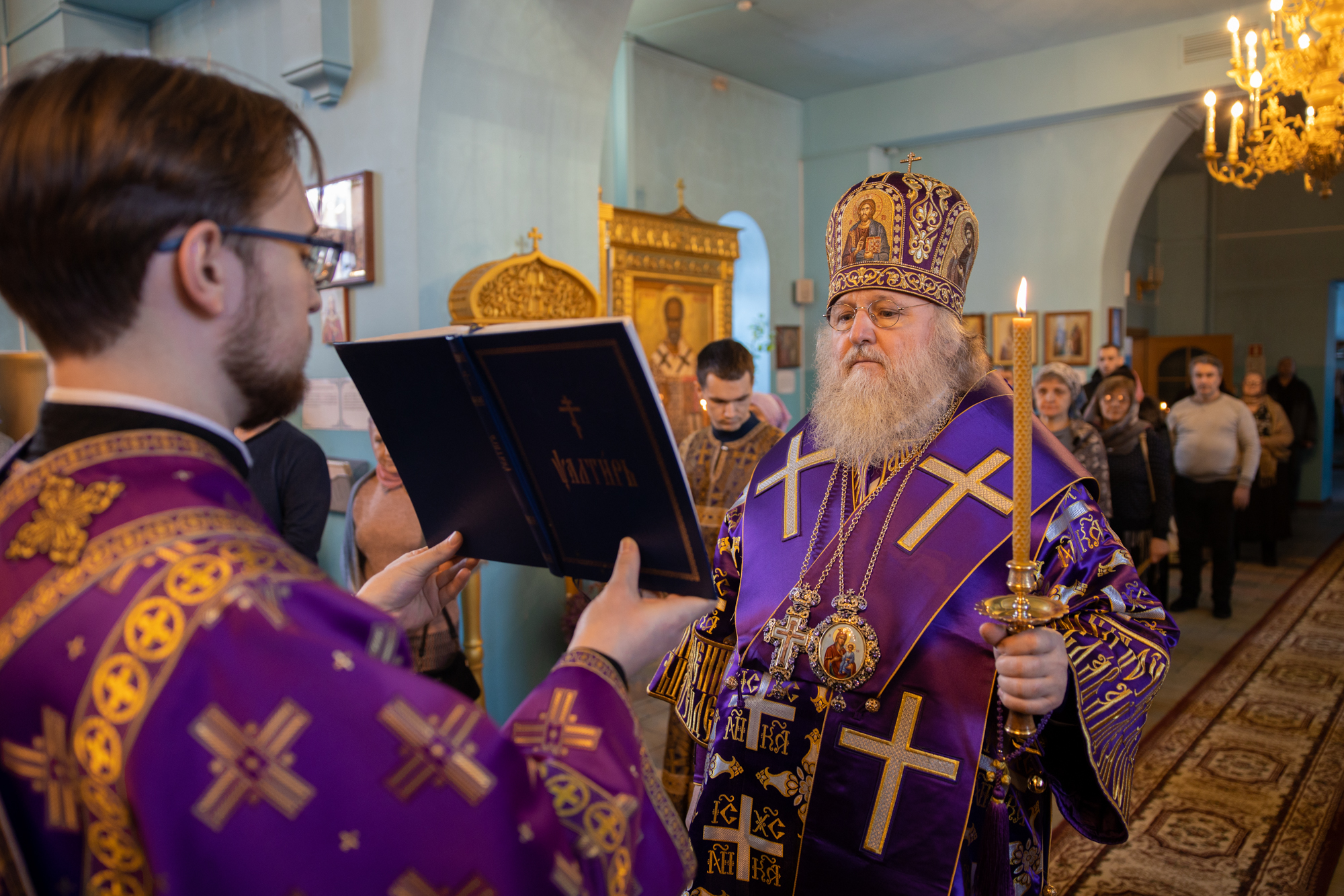 Его Высокопреосвященству сослужили: благочинный Лангепасского благочиния иерей Евгений Чебыкин, иерей Николай Спамбетов, иеромонах Никодим (Пирховский), иерей Александр Кремень, диакон Даниил Матвеев.