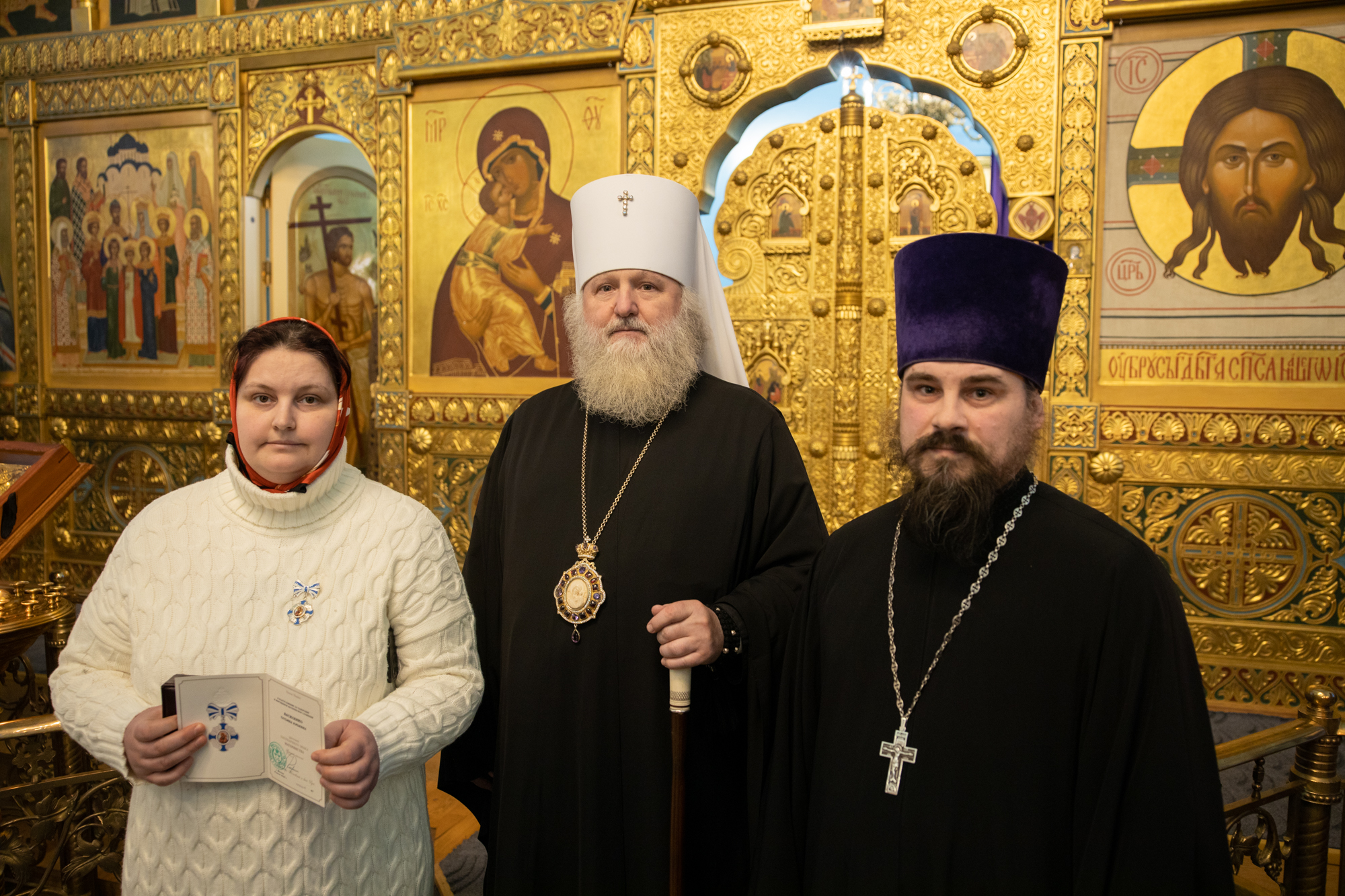 В благословение за чадородие и жертвенное материнское служение Патриаршего знака Материнства второй степени удостоены: Надежда Владимировна Овсянникова; Любовь Николаевна Диденко; Светлана Вячеславовна Картаус.