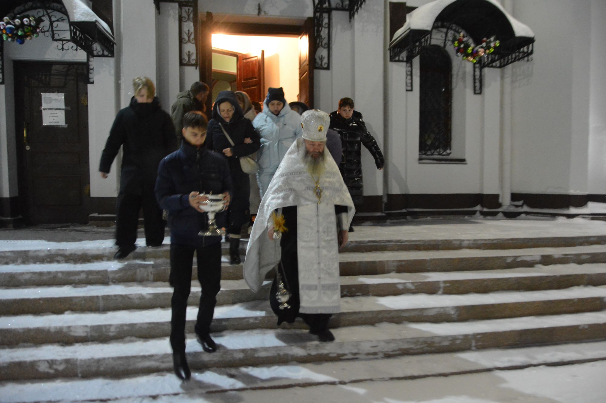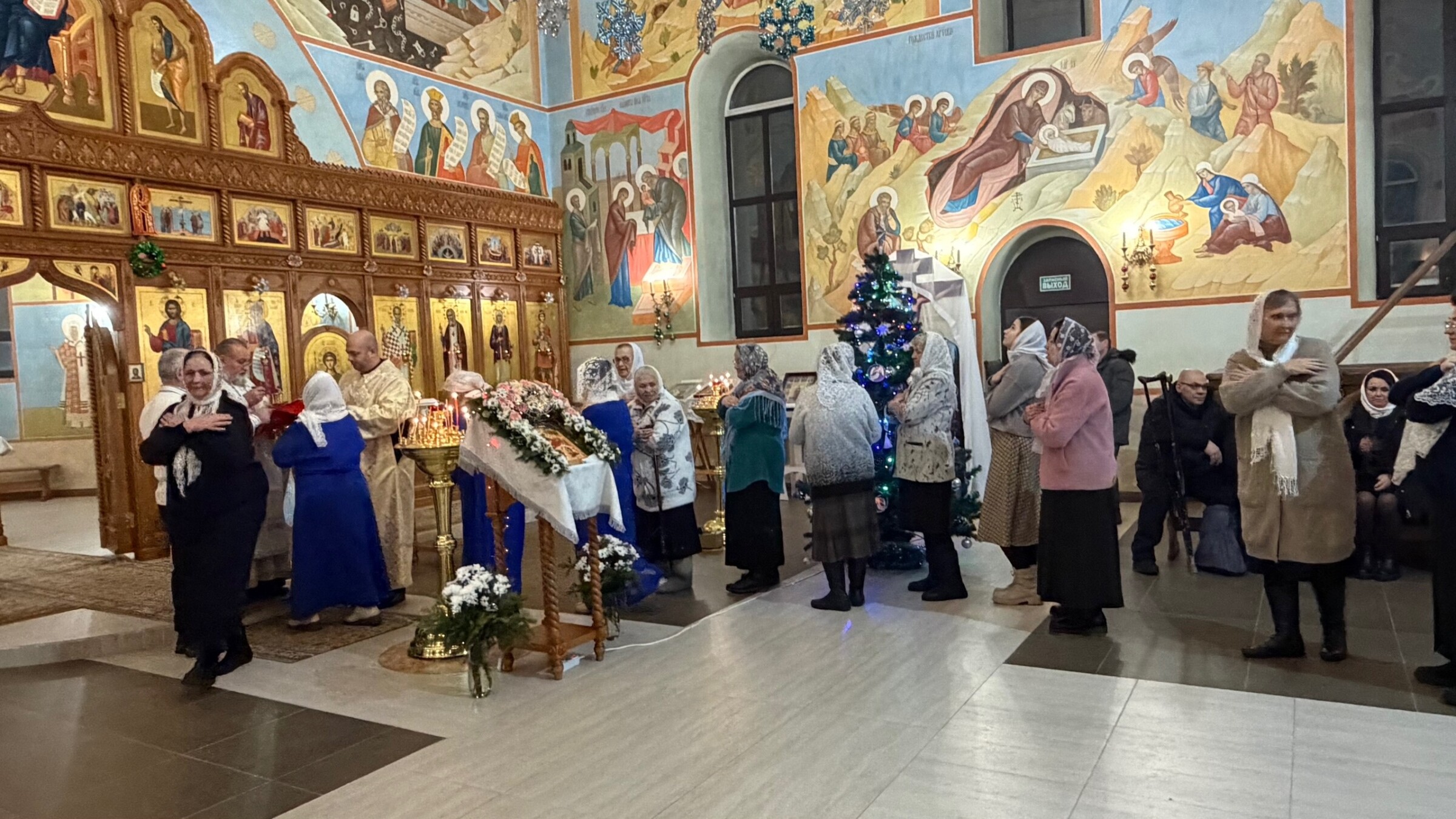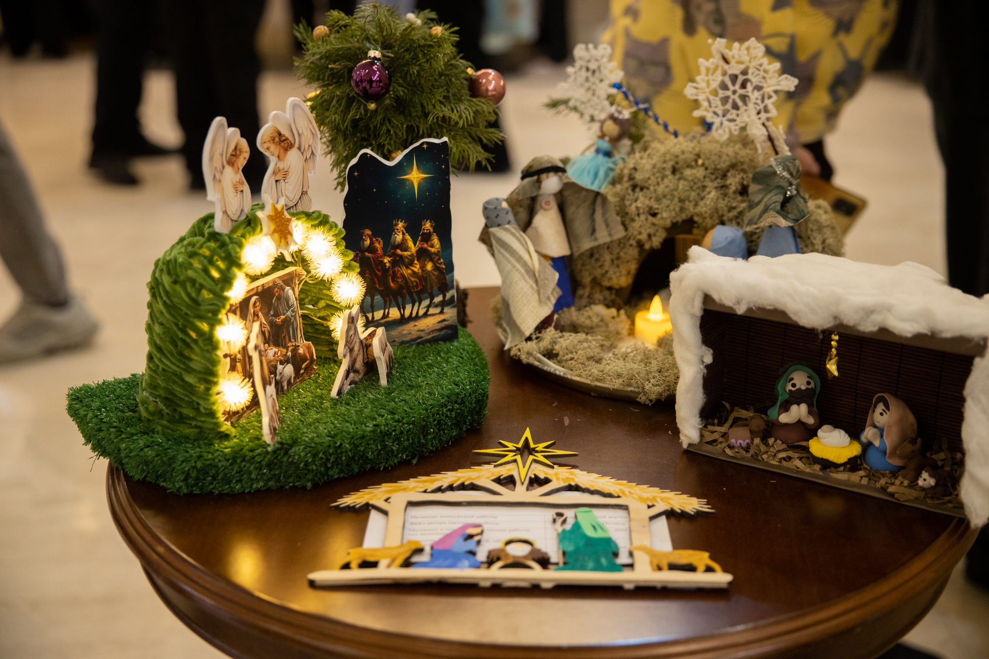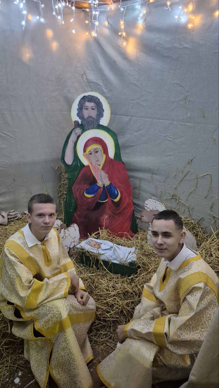 Возле храма гостей ожидала праздничная композиция — красочно украшенный вертеп, созданный руками самих прихожан с особой теплотой и заботой. Атмосфера праздника объединила всех присутствующих, оставив каждому светлые воспоминания о встрече великого христианского торжества.