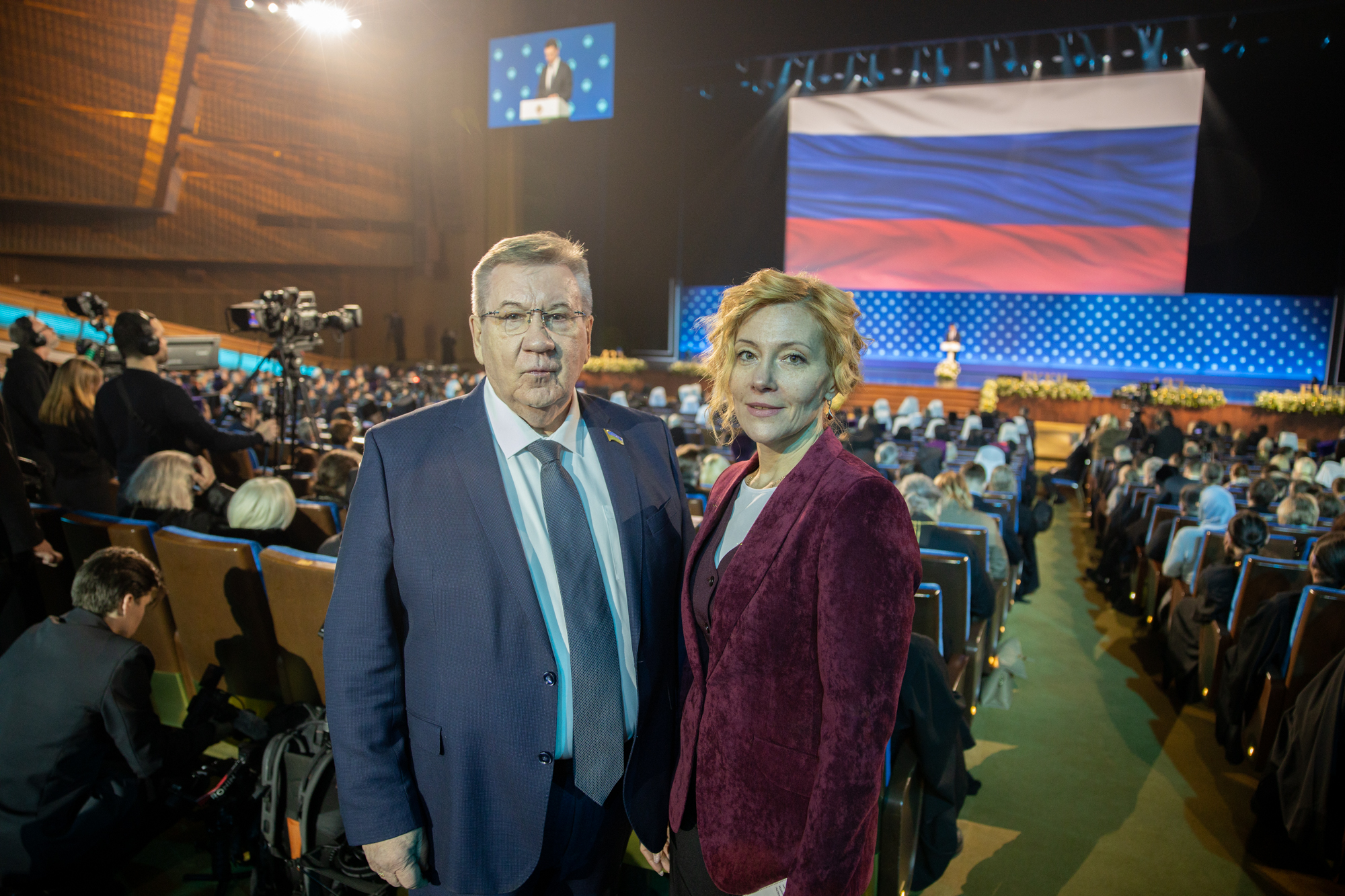 Приветствие председателя Совета Федерации ФС РФ В.И. Матвиенко огласил первый заместитель председателя Совета Федерации А.В. Яцкин.