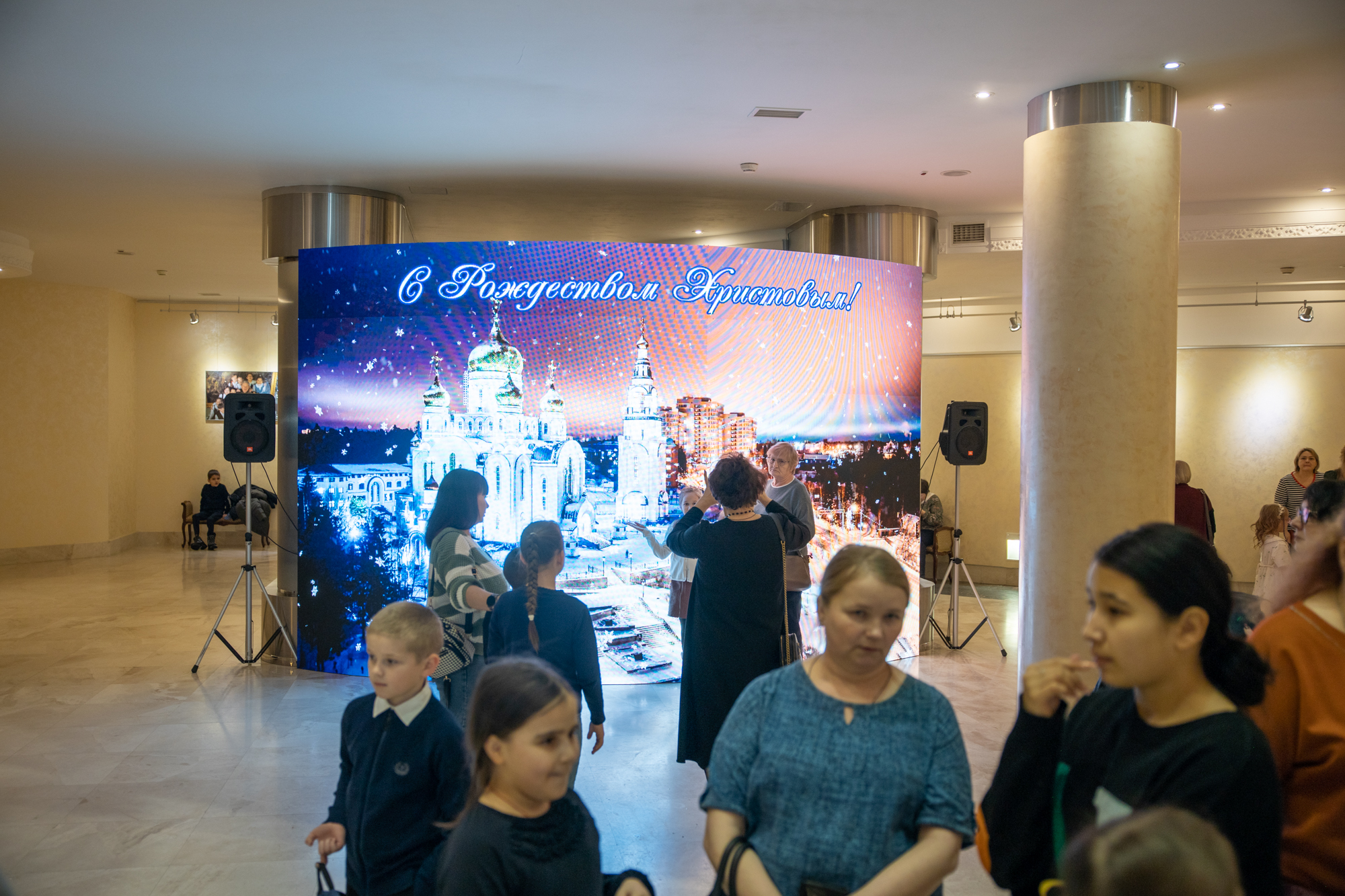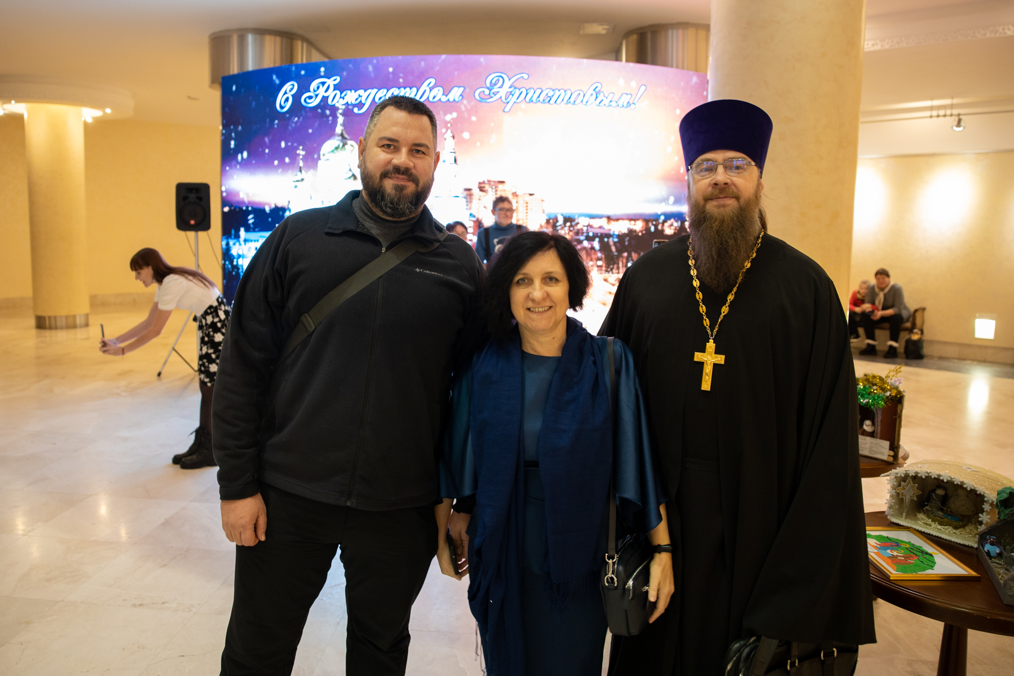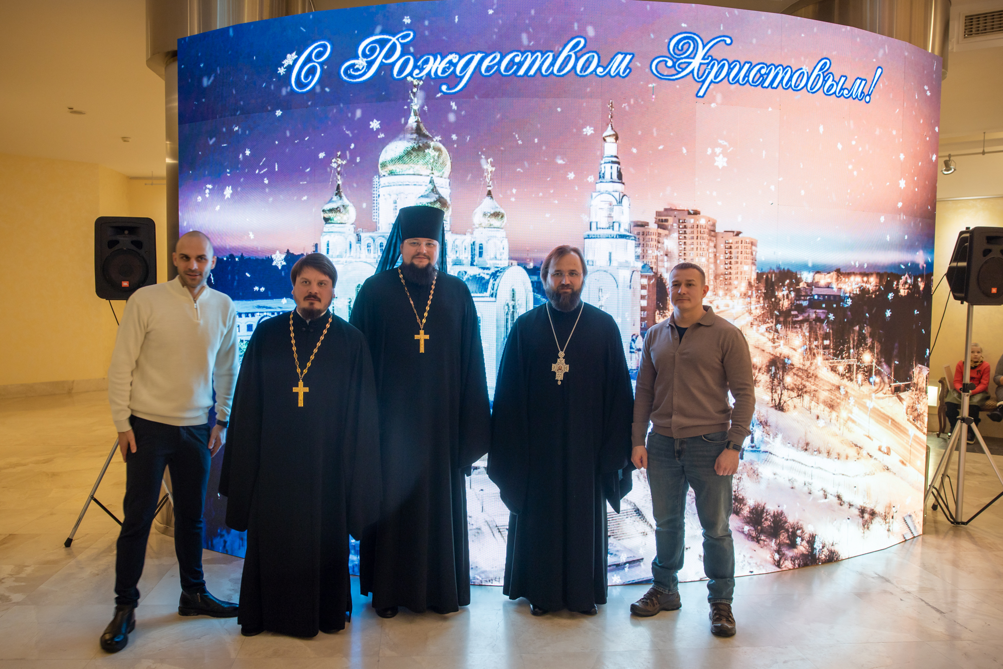 «Дорогие отцы, братья и сестры, участники нашего спектакля, наши артисты, организаторы, позвольте в первую очередь поздравить всех с величайшим праздником Рождества Христова. Христос рождается! Славите Христа! Мои дорогие, хотел бы пожелать, чтобы Рождественская радость, она длилась до следующего Рождества. И так от праздника до праздника, как говорится, проживать этот год в мире, благополучии, чтобы действительно наступил мир на нашей земле, да и в целом во всем мире.