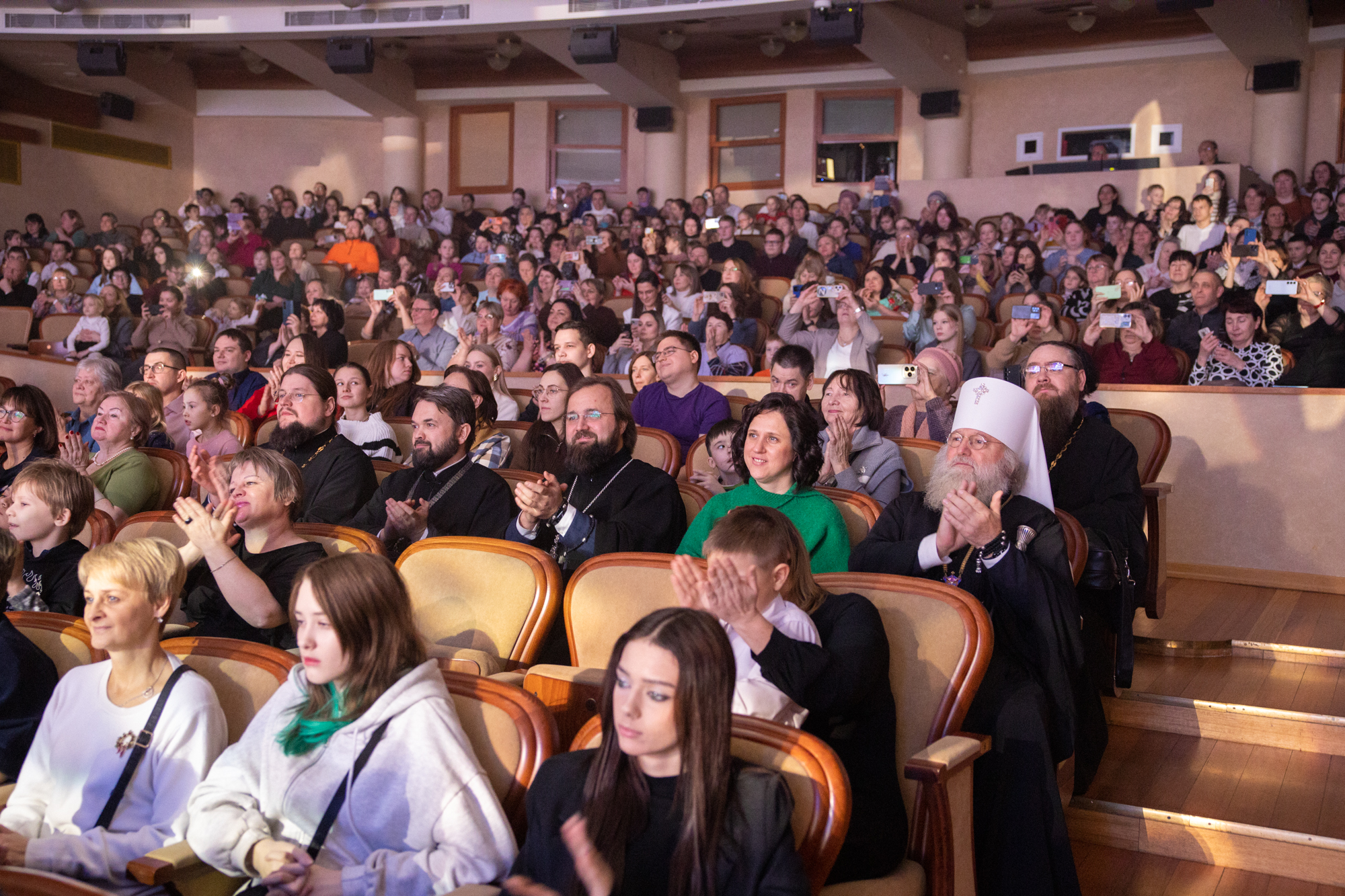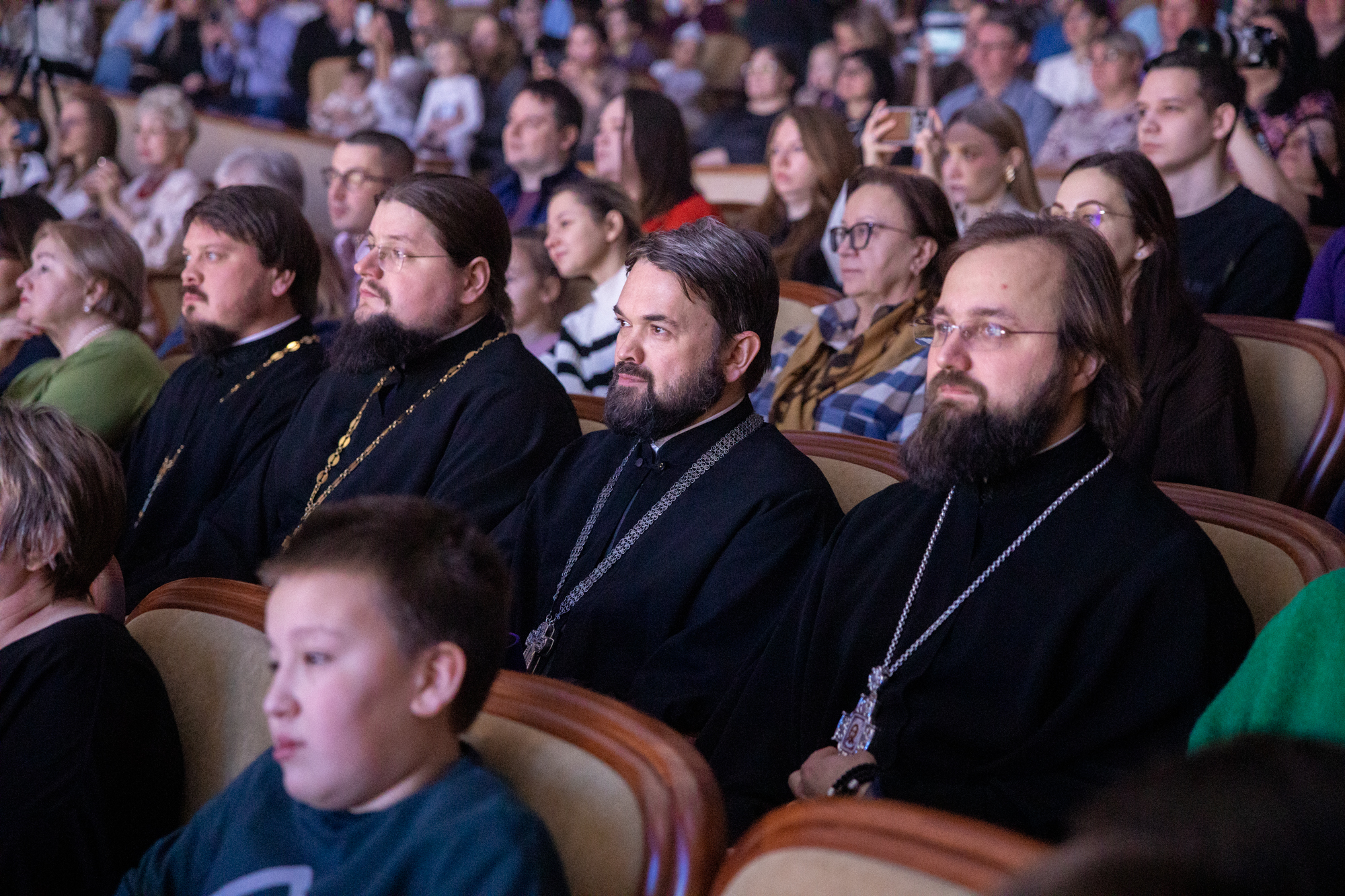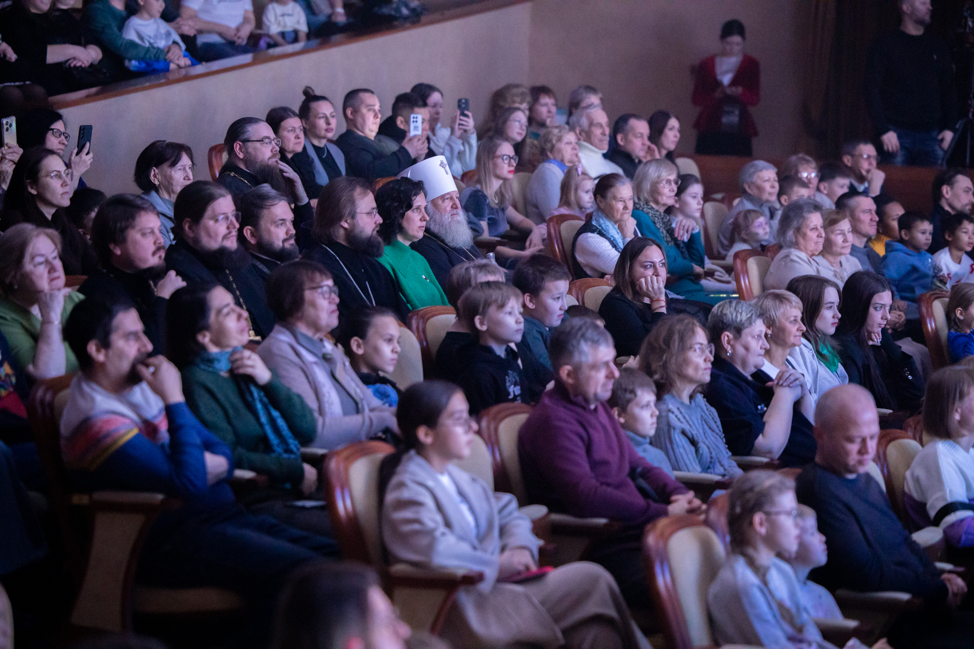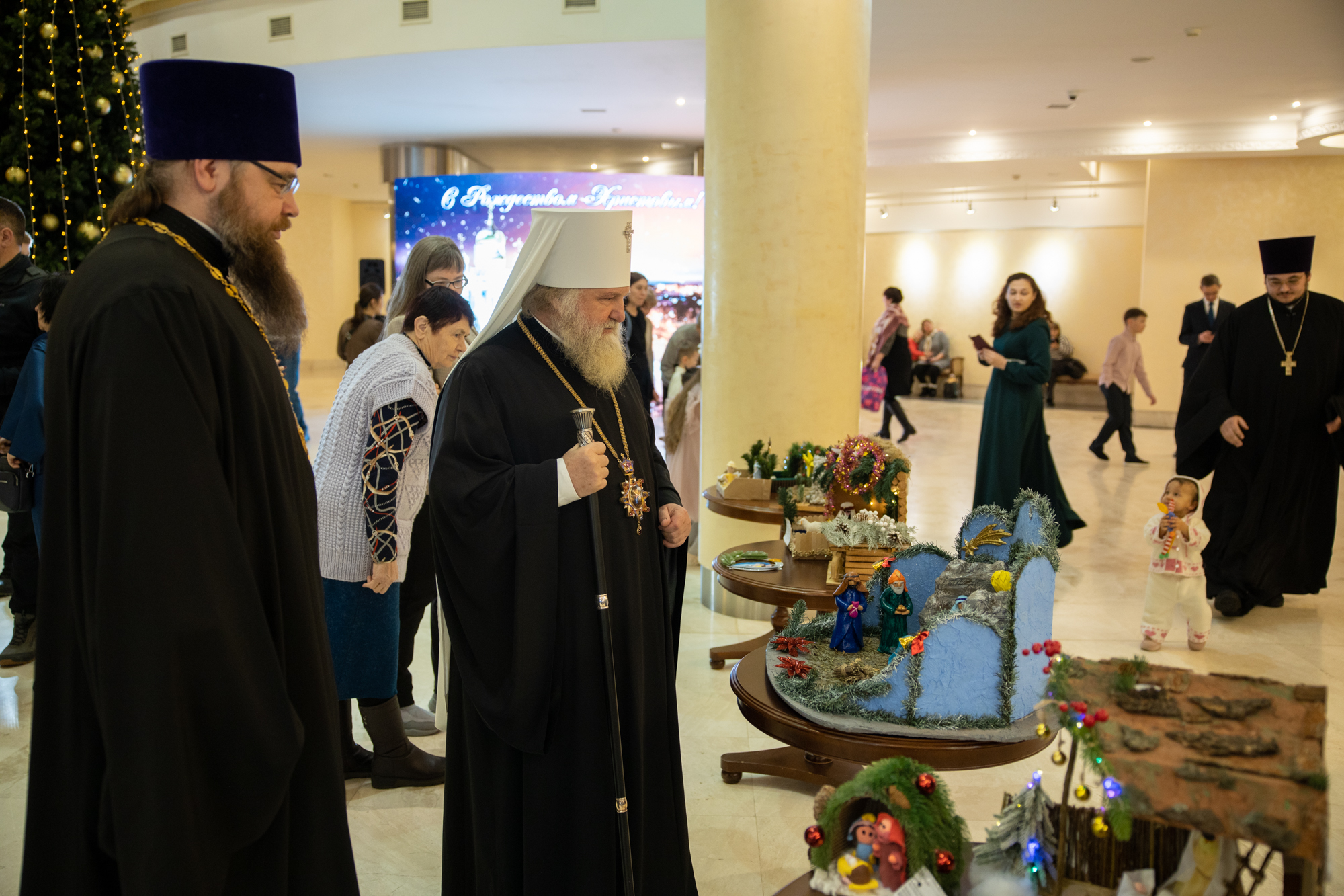 Сегодня, отмечая праздник Рождества, я хотел бы особо поблагодарить всех наших артистов, участников, организаторов, которые, действительно, донесли смысл и победы добра над злом. Эта сказка, связанная с Рождеством и с победой тех недобрых дел, которые происходят в нашей жизни. Они порой произвольны, потому что мы несовершенны. И, конечно же, нет человека, который бы в жизни жил и не согрешил. Но добро всегда повреждает зло. Есть мудрая мысль, такая сказана, философская. Если бы было зла больше в мире, то мир перестало бы существовать. А добра больше. Вот это добро, оно должно приумножаться и спектакль нам так четко, ясно рассказал об этом. Где гордость, где зависть, а все побеждается добром. Спасибо вам, что вы сумели донести до всех зрителей эту победу добра над злом и связали с праздником Рождества Христова. Это очень-очень важно сегодня и так необходимо для нас для всех. Я сердечно благодарю вас. Я надеюсь, что и дальнейшее такое сотрудничество будет митрополии нашей и, конечно же, наших учреждений, всех организаций, которые сегодня участвуют в этом мероприятии, в спектакле, в реализации его. Я думаю, что будем совершенствовать и проводить такие мероприятия уне только традиционно в Рождество и Пасху, но и к праздникам большим в течение года. Мы об этом подумаем вместе с администрацией округа, чтобы действительно жизнь духовная, культурная, патриотическая, добрая, чтобы добро царствовало и приумножалось в нашей жизни. А будет добра больше, тогда у нас меньше зла будет, меньше войн будет, меньше будет разногласий, будет согласие, мир, тогда и Господь будет с нами. Всех, мои дорогие, поздравляю еще раз с праздником Рождества Христова. Пусть Всемилостивый Господь дарит нам эту радость на протяжении года. Благодарим вас, мои дорогие артисты, участники, организаторы. Дай Бог здоровья, помощи Божией!»