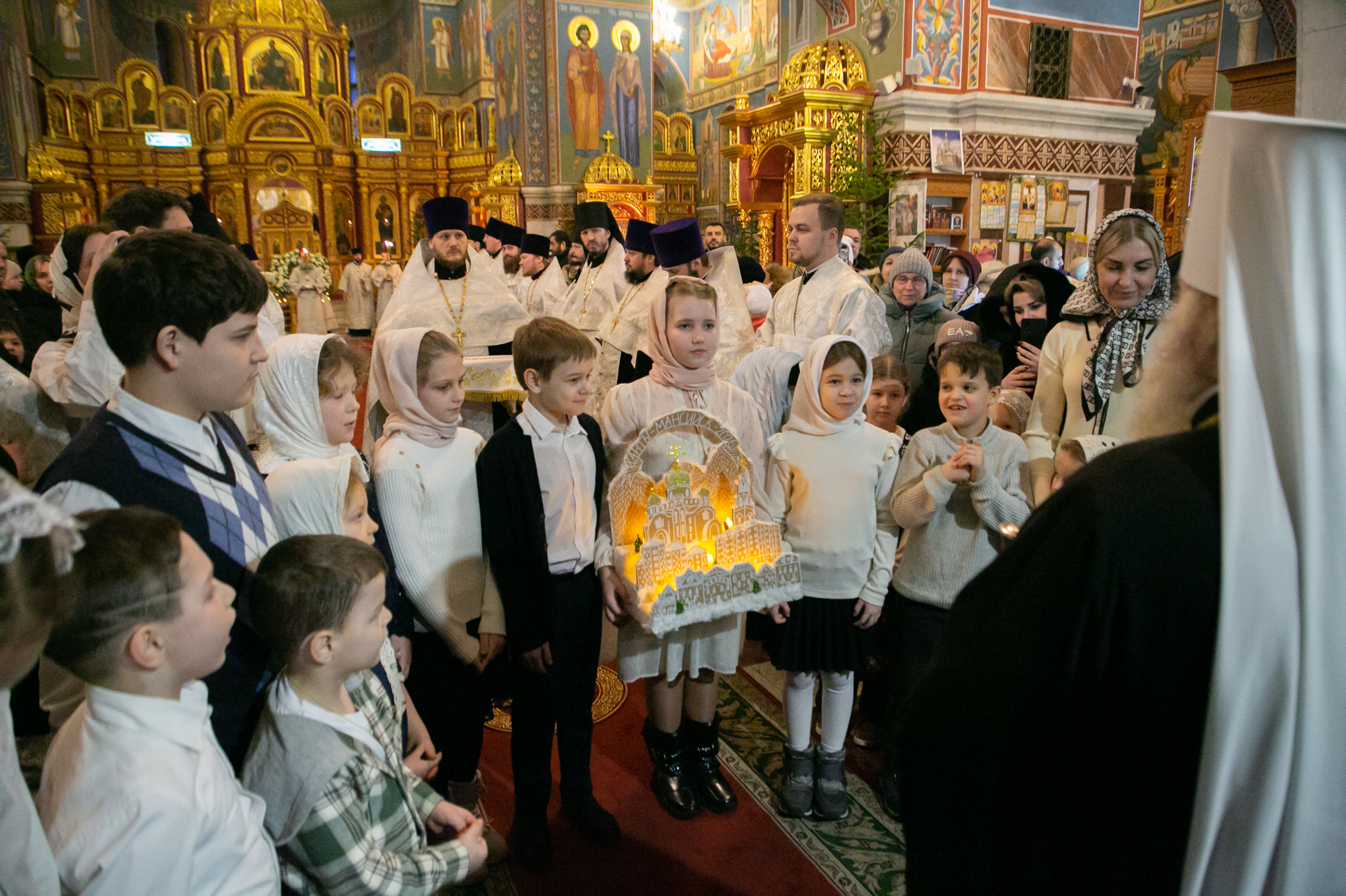 В ночь с 6 на 7 января 2026 года, в праздник Рождества Господа Бога и Спаса нашего Иисуса Христа, митрополит Ханты-Мансийский и Сургутский Павел совершил Божественную литургию св. Иоанна Златоуста в Воскресенском кафедральном соборе г. Ханты-Мансийска.