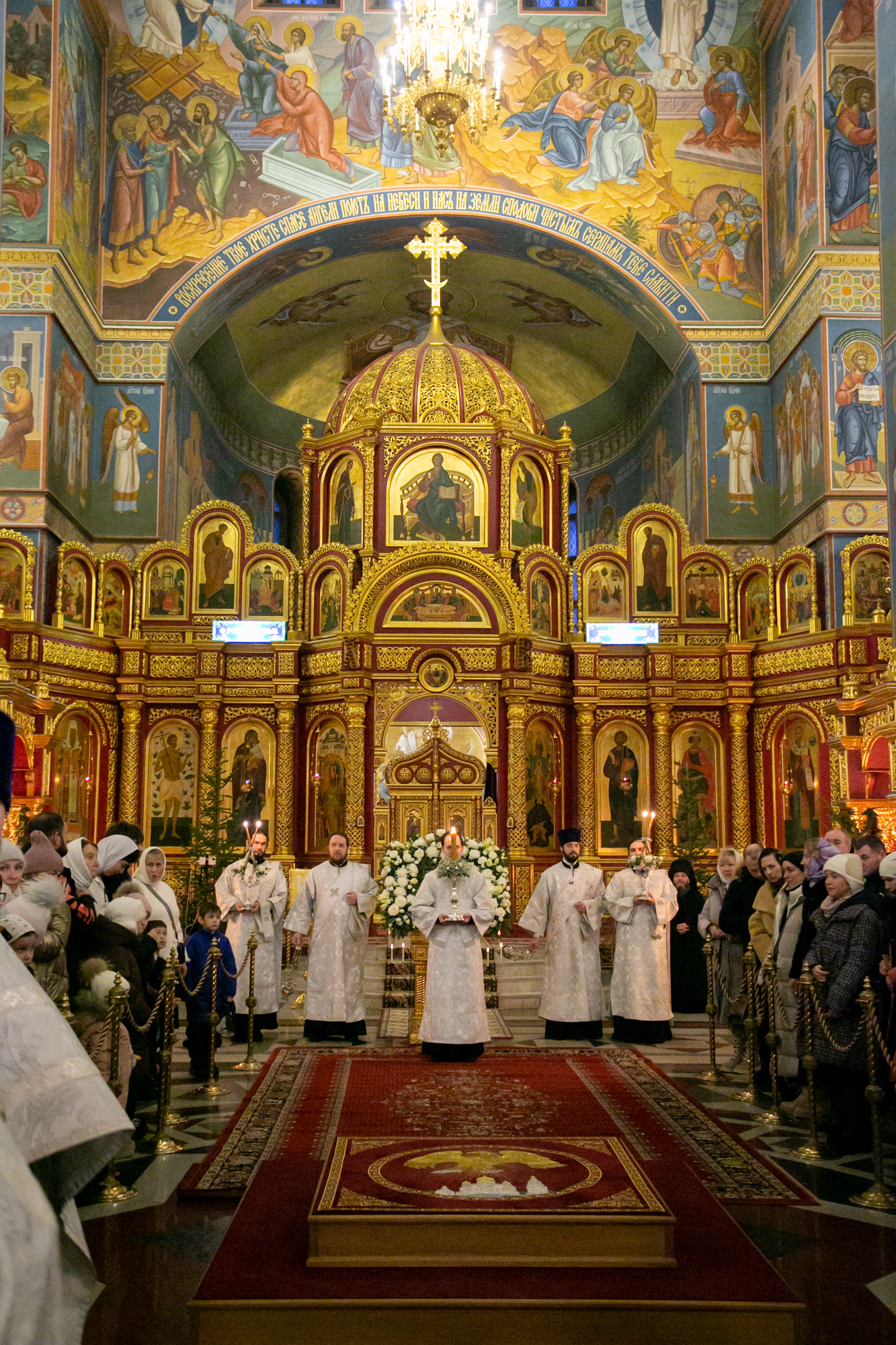 «Дорогие отцы братья и сёстры, дорогие дети, позвольте в первую очередь поздравить с праздником Рождества Христова всех нас! Величайший праздник — начало спасения рода человеческого. Мы знаем, что весь Ветхий Завет человечество ожидало Рождества Христова. Пророчества были, что придет в мир Спаситель, который избавит человечество от греха. И, конечно, какая радость была, когда пророчество это сбылось. Мы сейчас живем с таким богатым наследием духовным. Более двух тысяч лет отмечается этот праздник Рождества Христова, пришествия в мир Христа Спасителя. И, конечно же, имеем и Священное Писание, и Священное Предание, и богослужебная опытность огромнейшая, через которую человечество обретает Бога и смысл жизни. И конечно, нам проще, сегодня живущим на Земле, когда у нас такой есть богатый опыт жизни православной, и житейский опыт уже сложившийся.