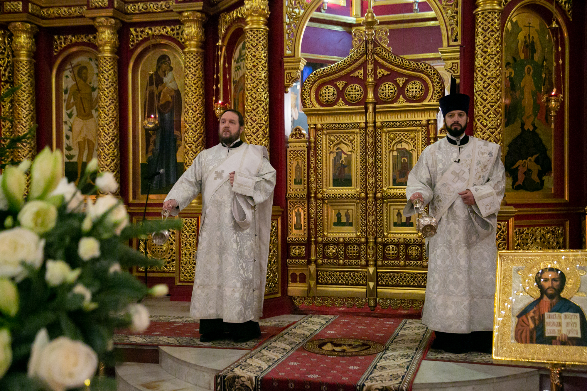 Богослужебные песнопения исполнил Архиерейский хор Воскресенского кафедрального собора (регент — Сатрапинская Э. Н.).