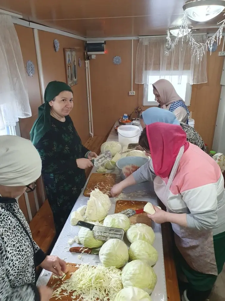 Кто-то участвовал в генеральной уборке, сестры солили капусту для отправки на СВО, кто-то убирал снег после обильного снегопада, кто-то вешал праздничные плакаты, кто-то украшал внутреннее убранство храма, кто-то делал вертеп! Была проделана большая работа, и все для того, чтобы сделать людям праздник, чтобы донести эту радостную новость: «Христос рождается!»