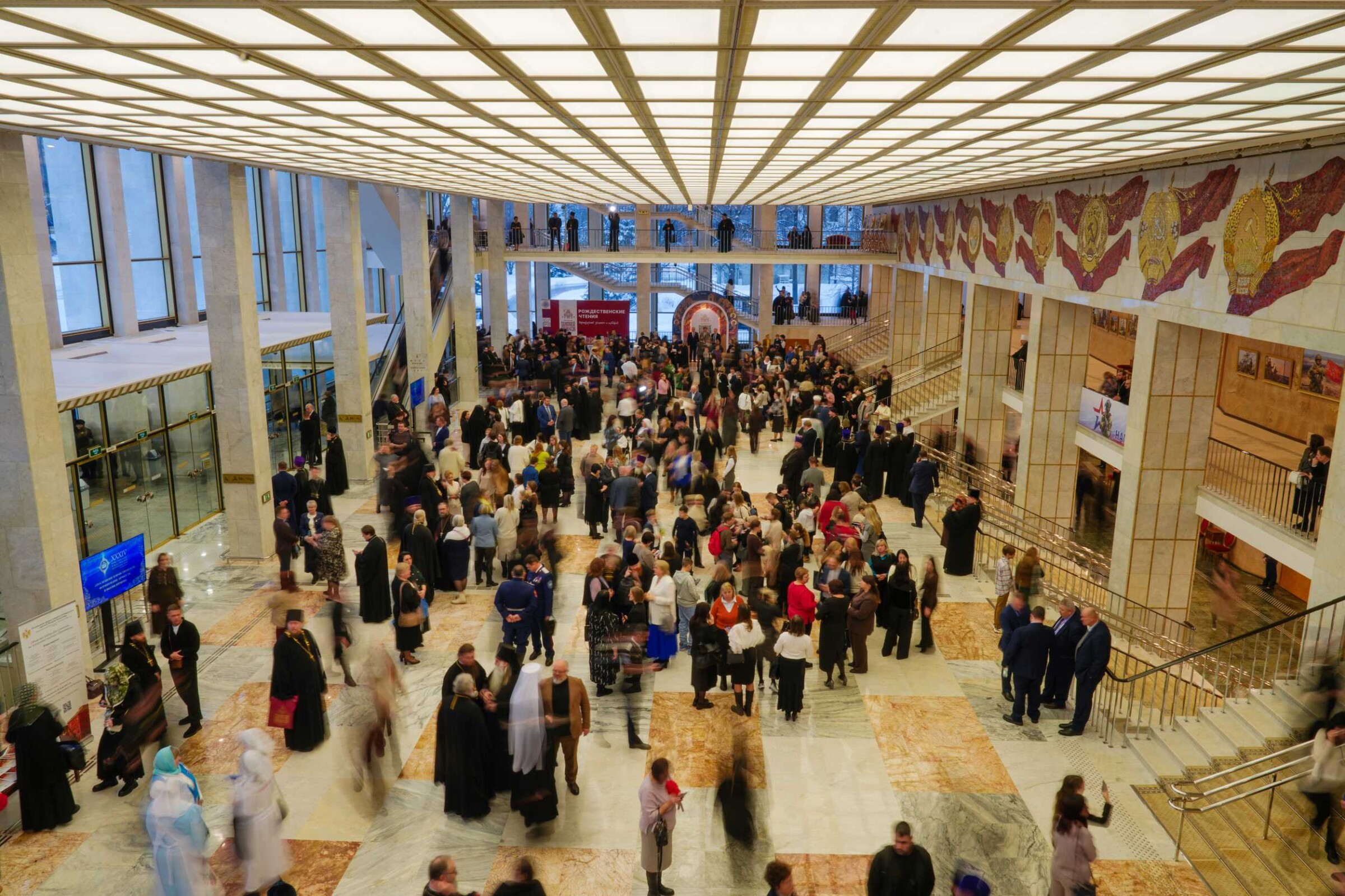 В зале Государственного Кремлевского дворца собралось свыше 5 тысяч человек: Преосвященные архипастыри — члены Священного Синода и Высшего Церковного Совета, главы экзархатов, митрополий и епархиальные архиереи Русской Православной Церкви, представители Поместных Православных Церквей, члены Межрелигиозного совета России, полномочные представители Президента Российской Федерации в федеральных округах, представители обеих палат российского парламента, руководители и представители федеральных и региональных органов власти, ректоры и представители свыше 250 российских и зарубежных вузов, директора и педагоги общеобразовательных организаций, священнослужители, приходские специалисты, деятели науки и культуры.
