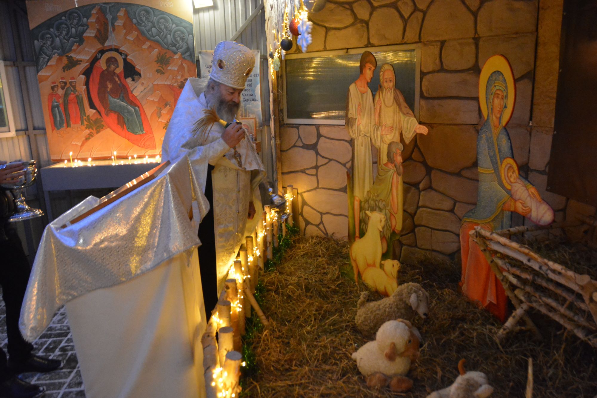 В Рождественский сочельник, после Великой вечерни и Божественной Литургии святого Василия Великого, настоятель храма в честь великомученика Георгия Победоносца г.Сургута протоиерей Антоний Исаков со всем клиром и прихожанами совершил освящение и открытие Рождественского вертепа на территории храмового комплекса.
