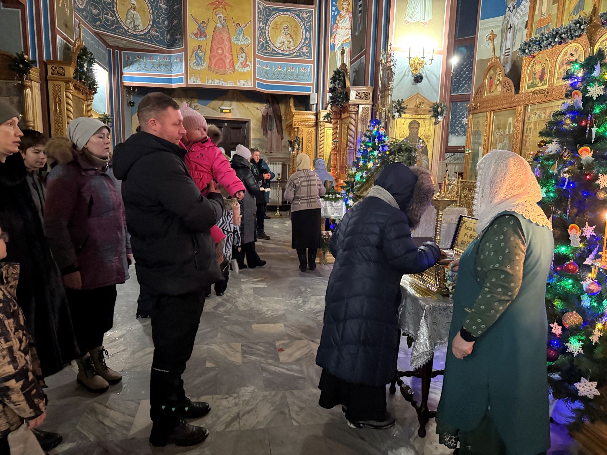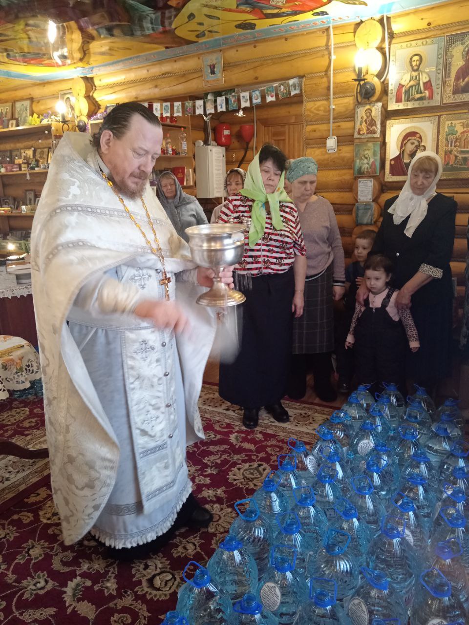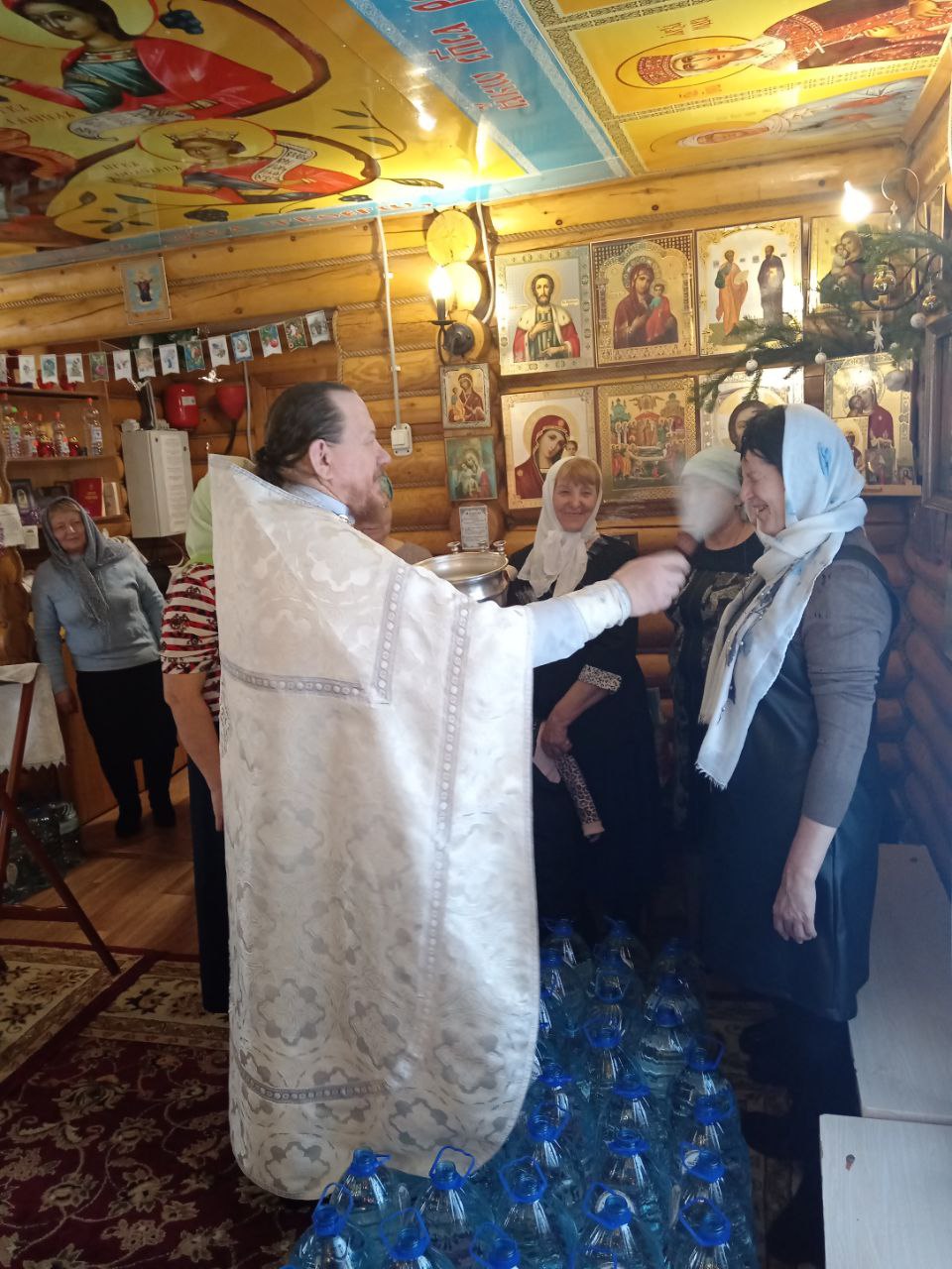 По окончании богослужения отец Алексий поздравил прихожан с великим праздником и окропил всех святой водой. Верующие смогли набрать освященную воду — Агиасму, которая будет сопровождать их в течение всего года как источник духовной силы и благословения. Галерея