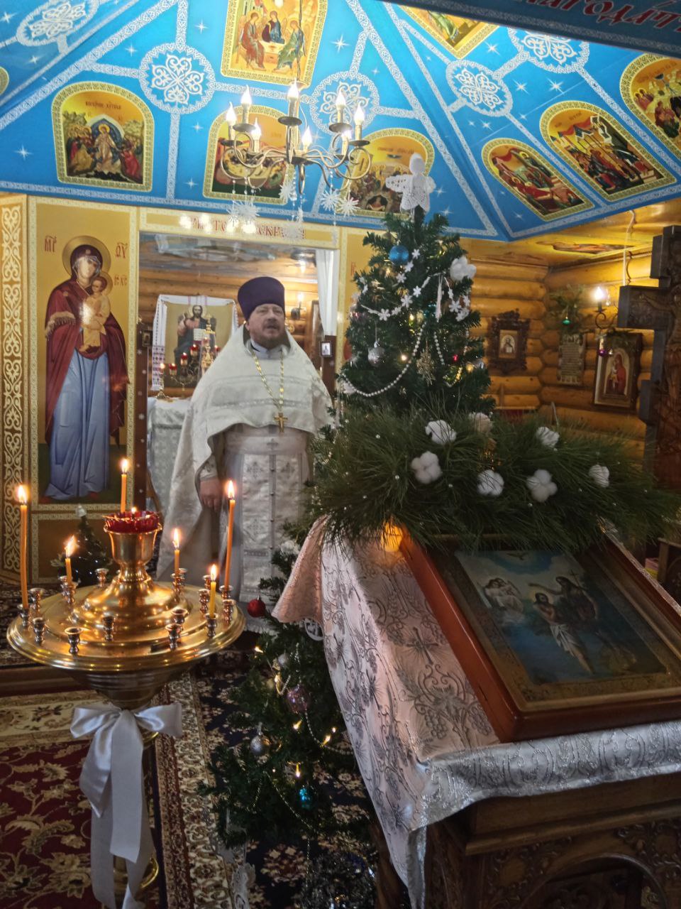 19 января, в день праздника, настоятель храма иерей Иоанн Рассудов совершил Божественную литургию и чин Великого освящения воды.