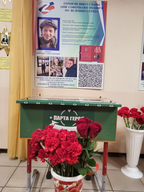 На молитвенную память, для достижения многих побед и скорейшего окончания военных действий, иерей Иоанн Дарий передал школе подарок – икону святого воина Георгия Победоносца.
