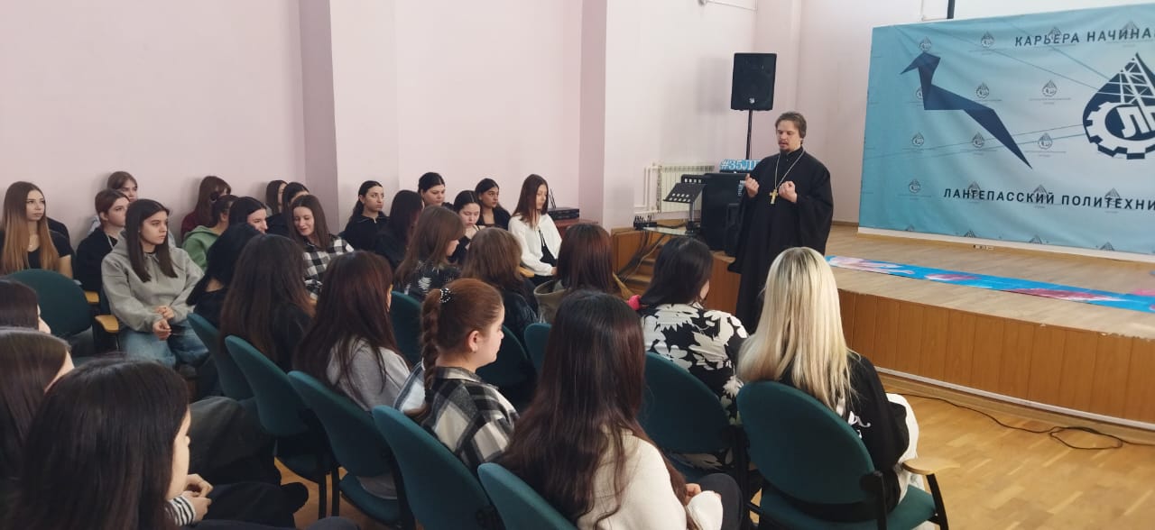 14 октября 2025 года, в день празднования Покрова Пресвятой Богородицы, в лицее №3 города Сургута состоялась встреча учащихся 10-11 классов с клириком храма в честь вмч. Георгия Победоносца иереем Рафаилом Хасановым, посвященная беседе на тему «Семья как храм». Отец Рафаил рассказал учащимся о ценностях и традициях православной семьи, ответил на многочисленные интересные вопросы лицеистов. В конце беседы отец Рафаил пригласил лицеистов на экскурсию в храм, которая состоится на следующей неделе. В рамках сотрудничества Сургутского городского благочиния и системы образования города встречу организовал Стерхов Алексей Алексеевич, зам. директора по ВВВР, кандидат педагогических наук.