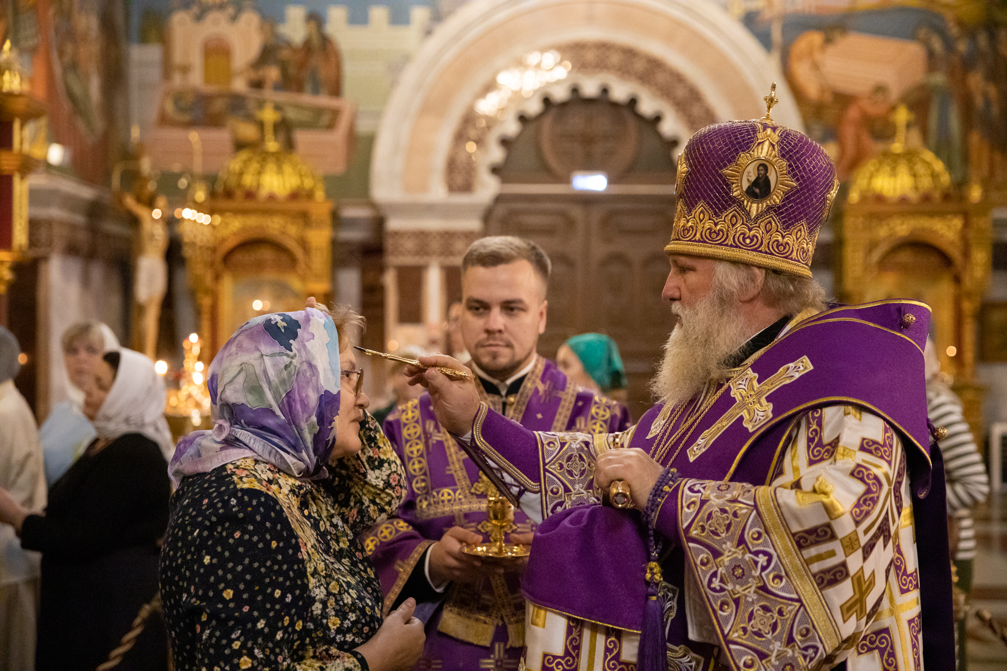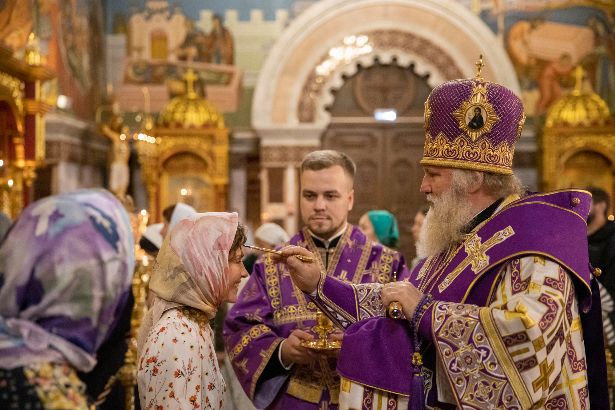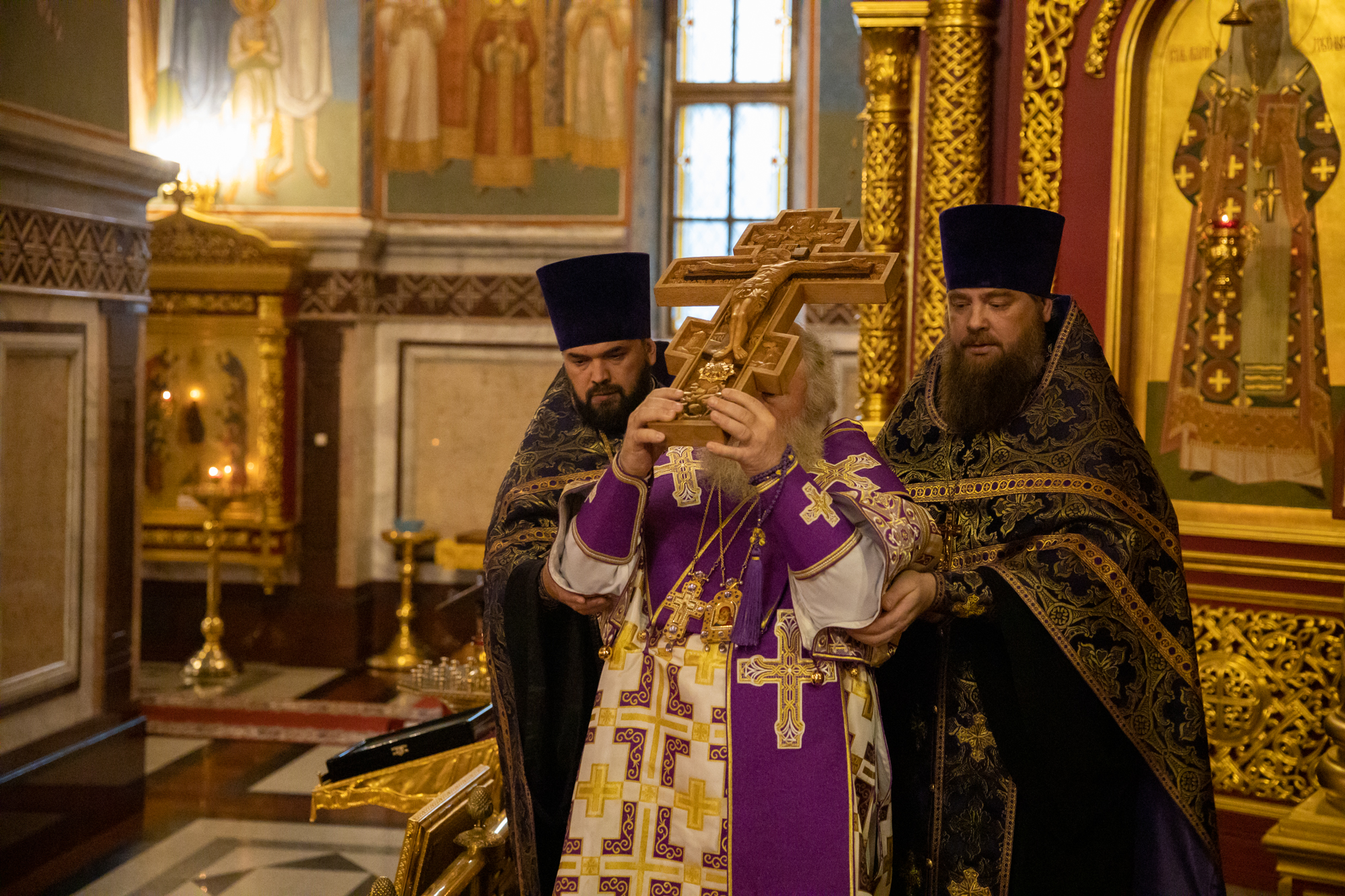 Его Высокопреосвященству сослужили: секретарь Ханты-Мансийской епархии игумен Антоний (Кирпичев), ключарь собора иерей Александр Петюр, диакон Даниил Матвеев.