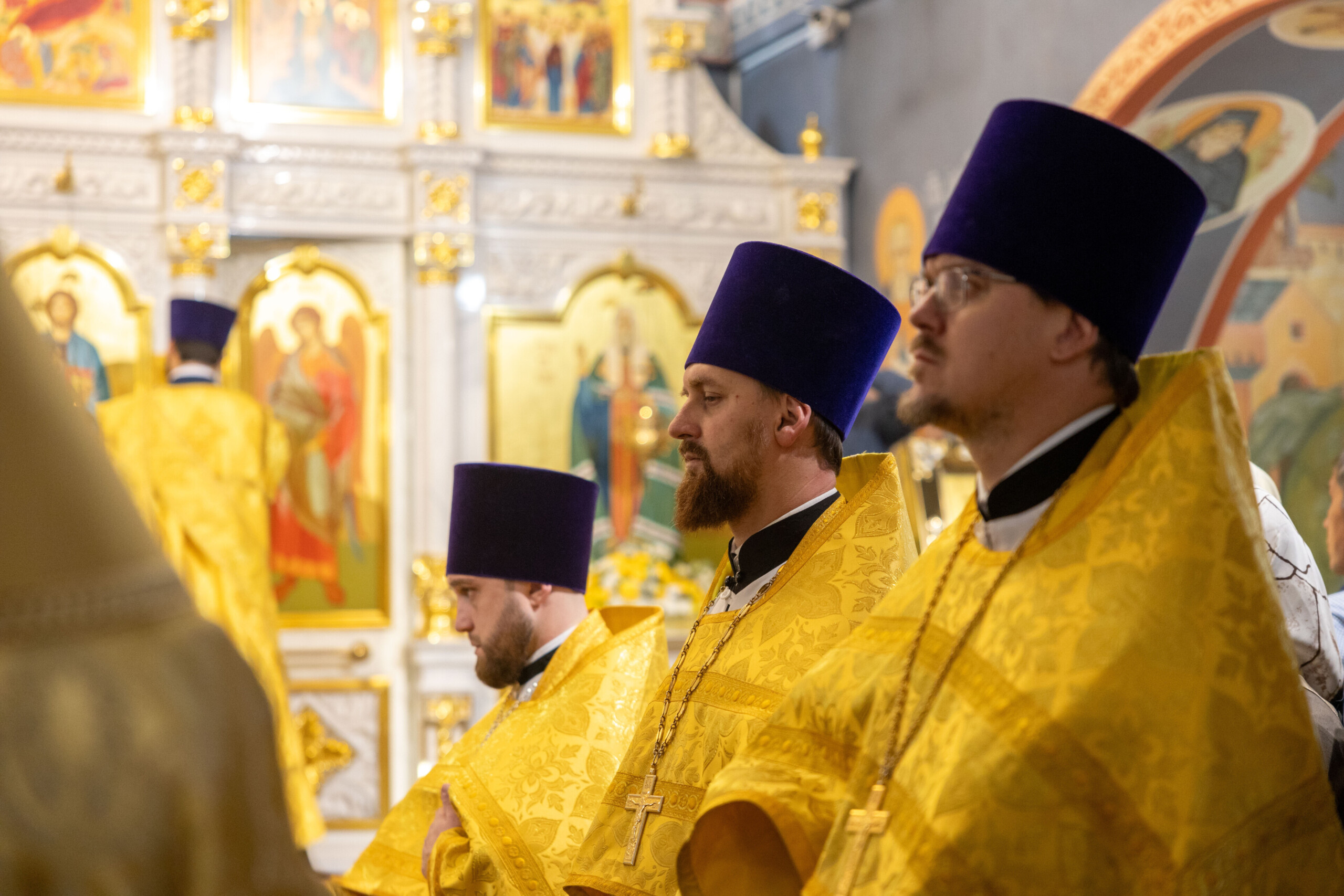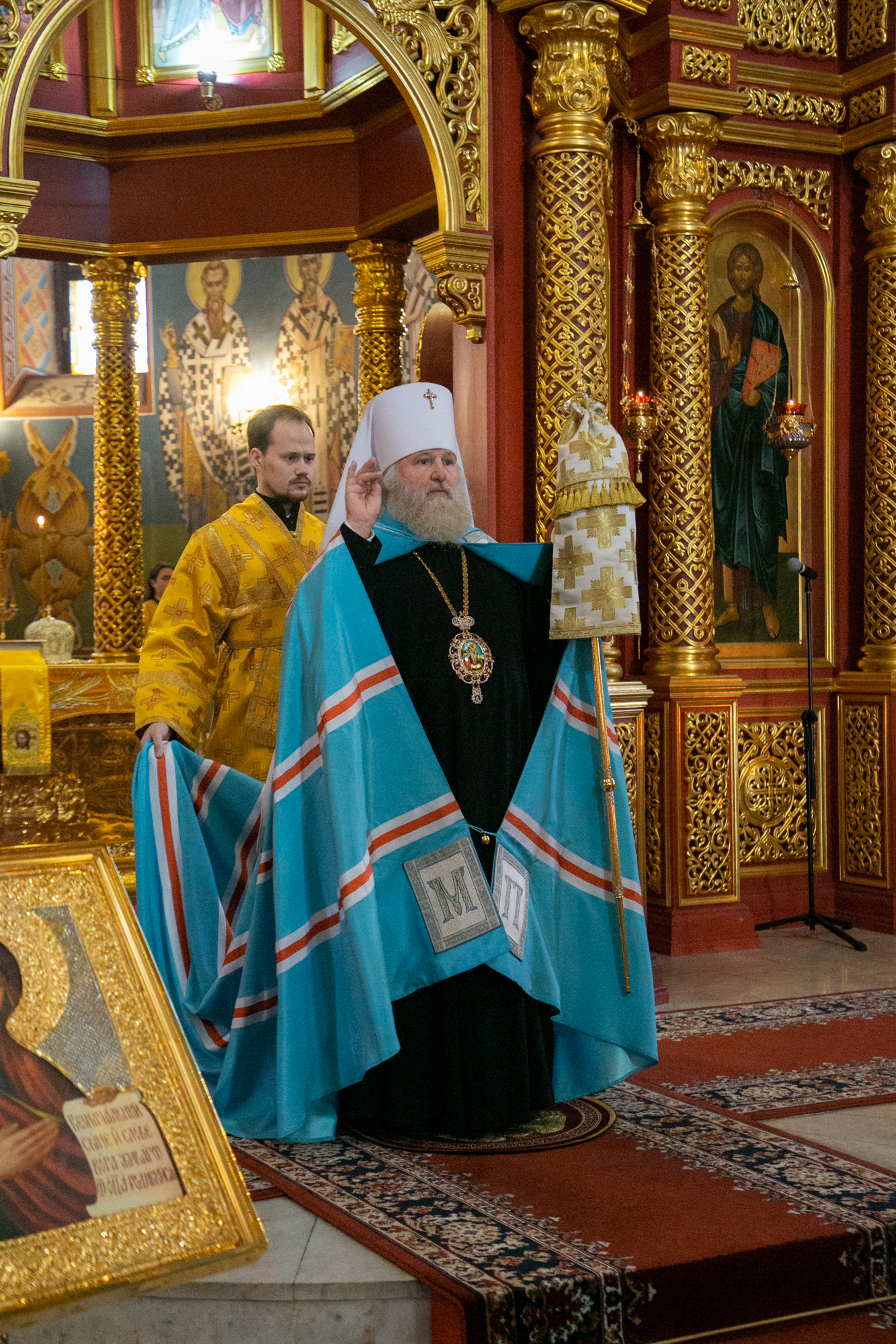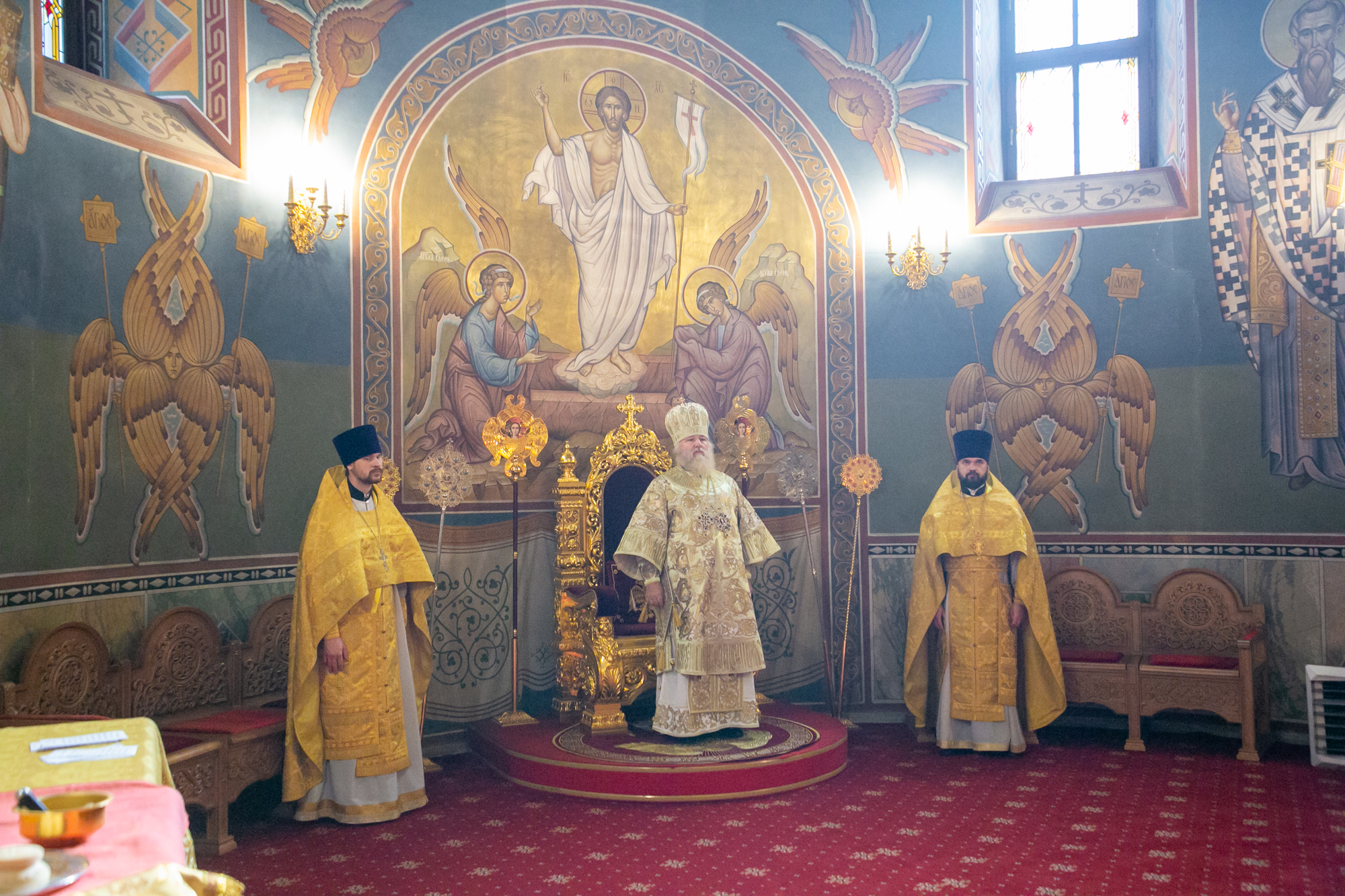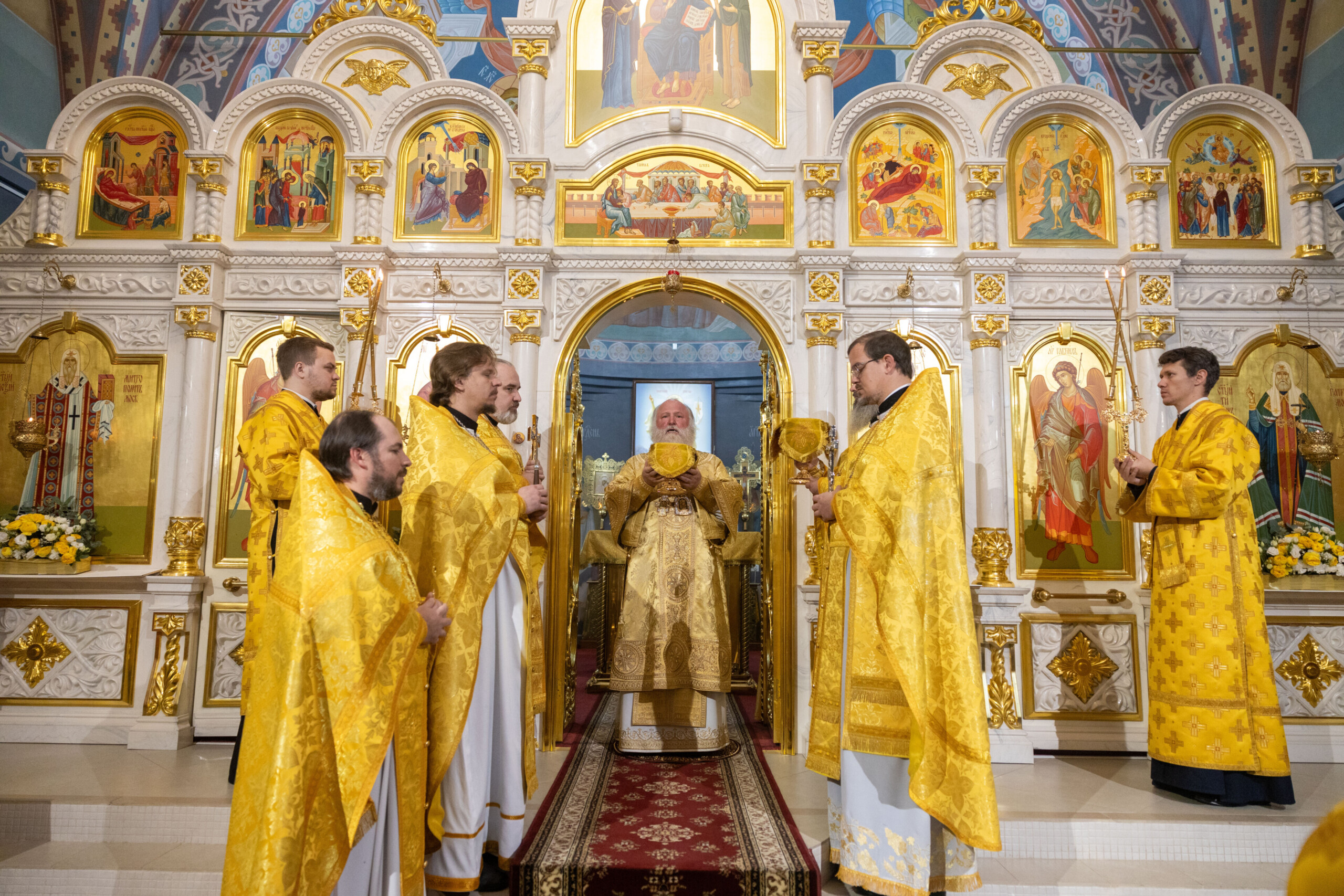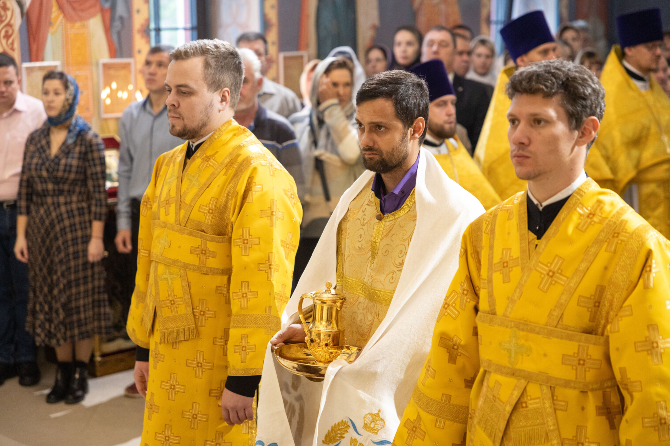 Его Высокопреосвященству сослужили: секретарь Ханты-Мансийской епархии игумен Антоний (Кирпичев), секретарь Югорской епархии иерей Николай Щерба, настоятель храм в честь Рождества Пресвятой Богородицы г. Урай протоиерей Иоанн Юрцун, настоятель храма иерей Леонид Бартков, духовенство города Ханты-Мансийска. Диаконский чин возглавил диакон Даниил Матвеев.