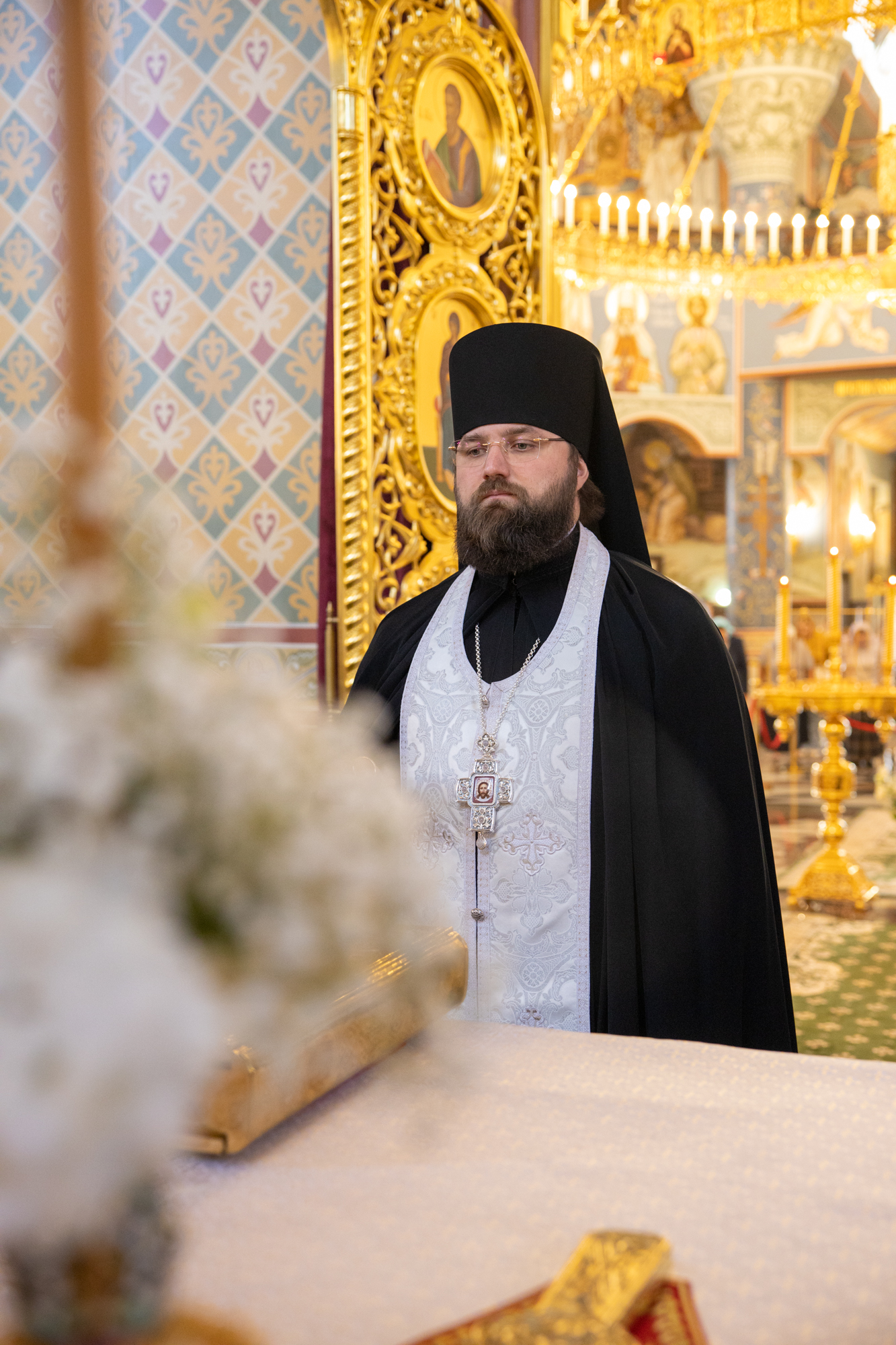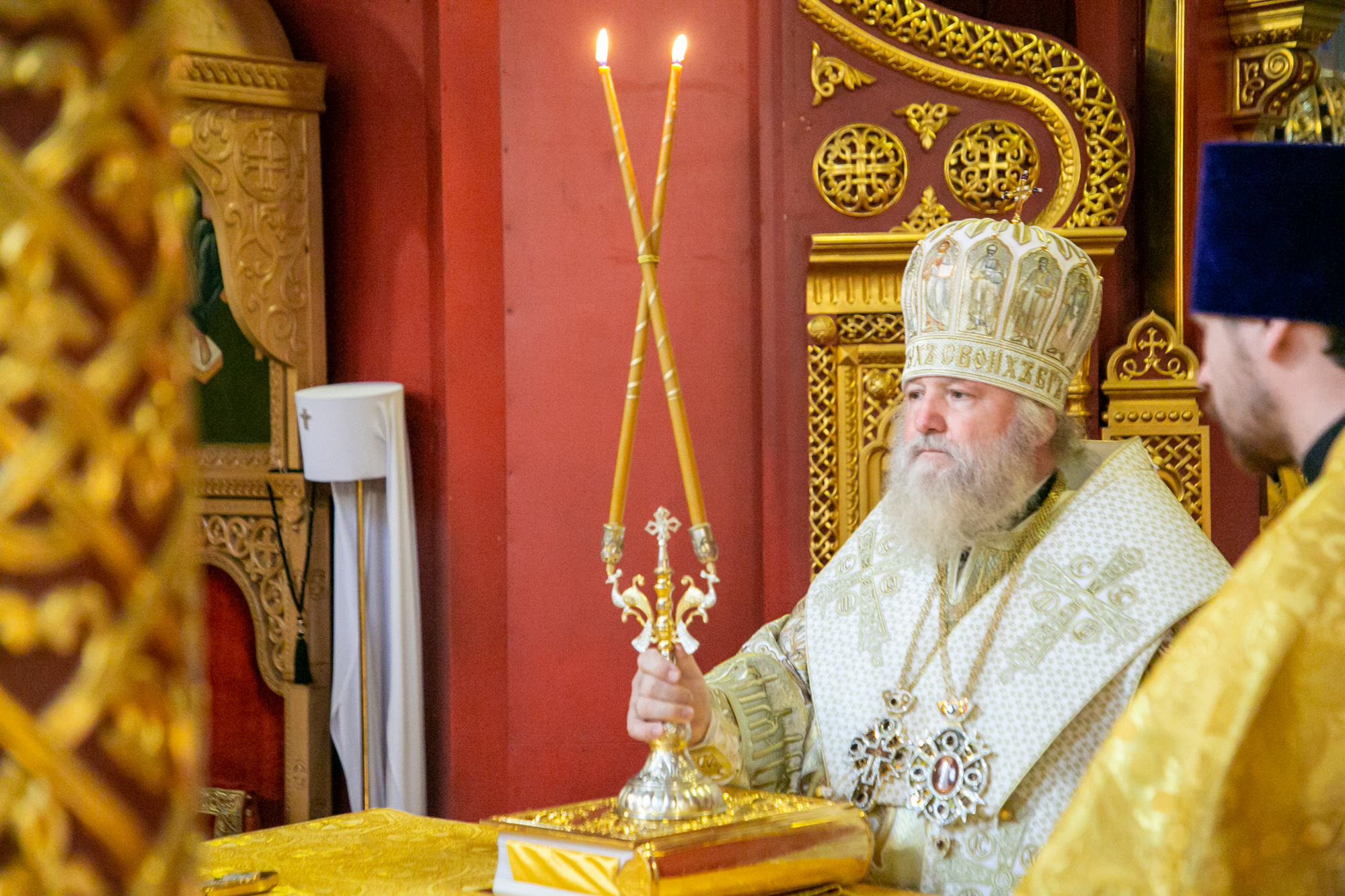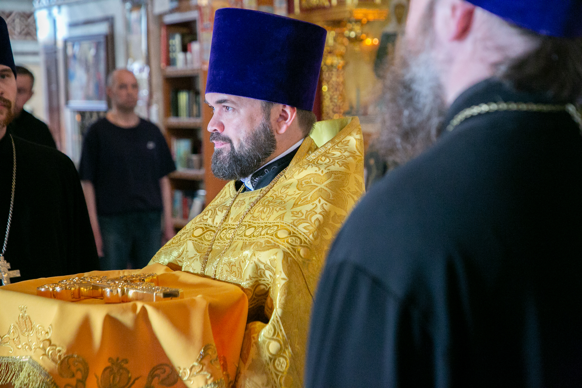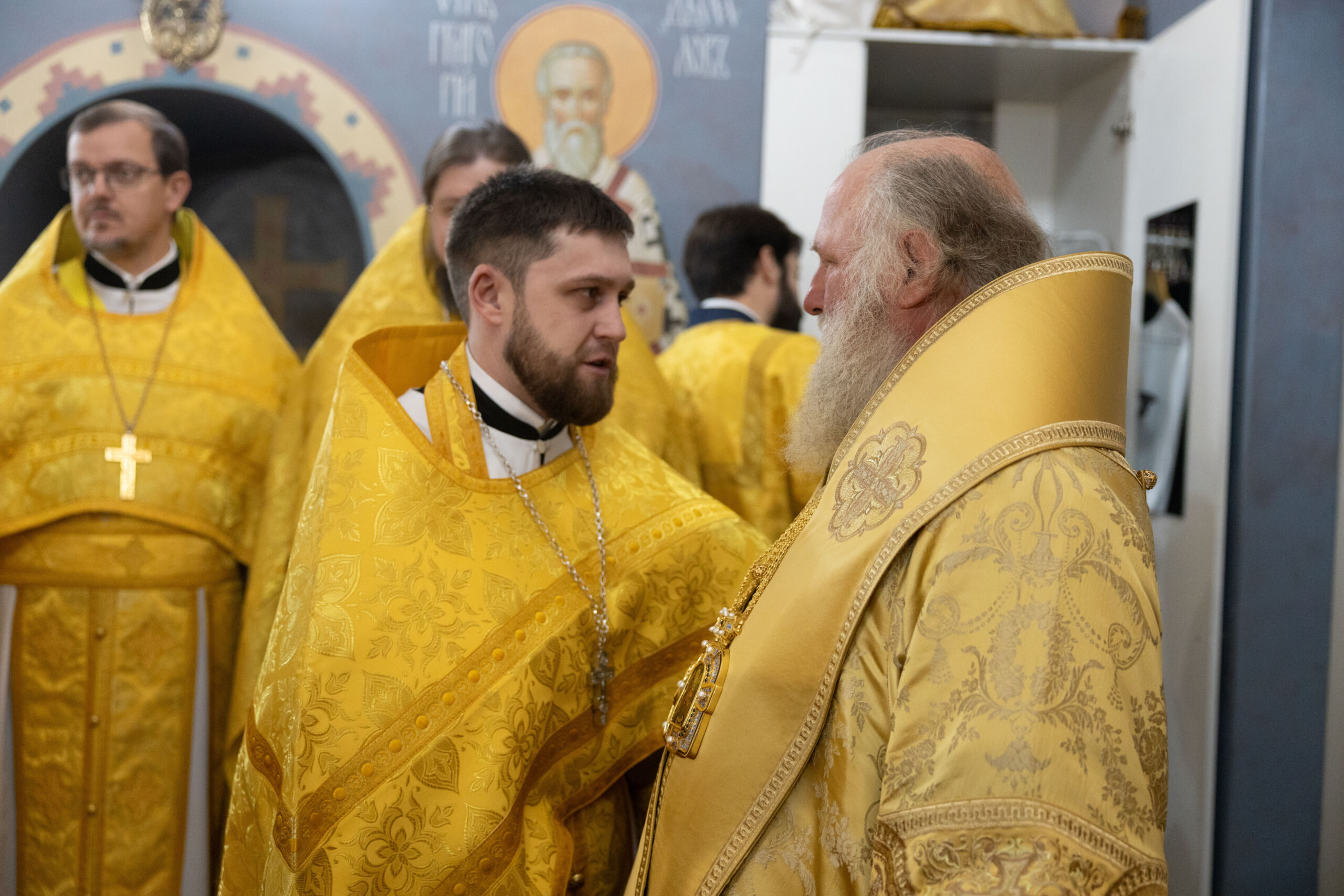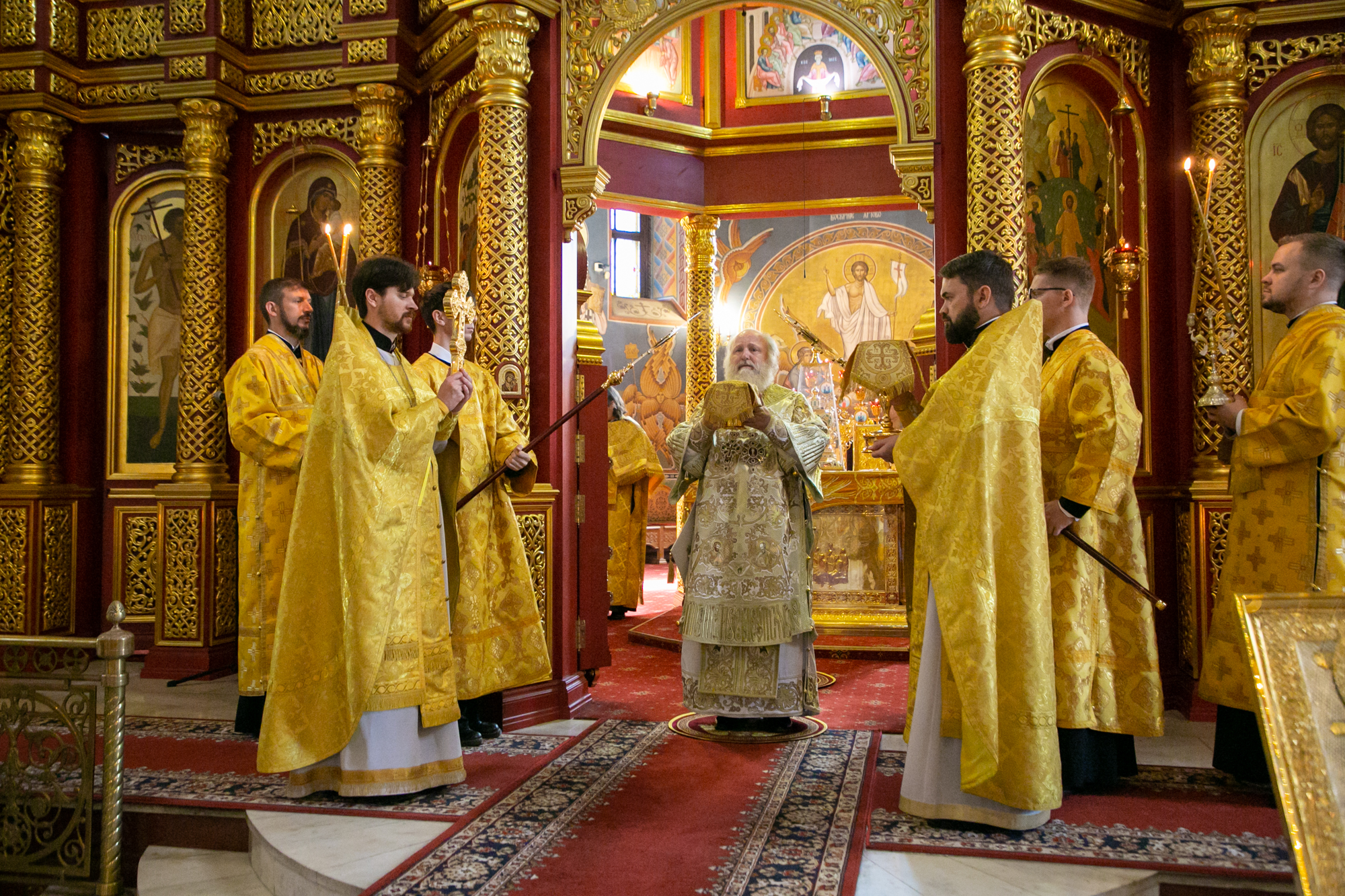 Его Высокопреосвященству сослужили: секретарь Ханты-Мансийской епархии игумен Антоний (Кирпичев), секретарь Югорской епархии иерей Николай Щерба, настоятель храм в честь Рождества Пресвятой Богородицы г. Урай протоиерей Иоанн Юрцун, настоятель храма иерей Леонид Бартков, духовенство города Ханты-Мансийска. Диаконский чин возглавил диакон Даниил Матвеев.