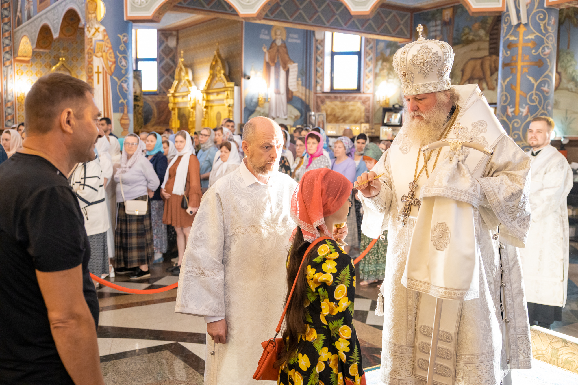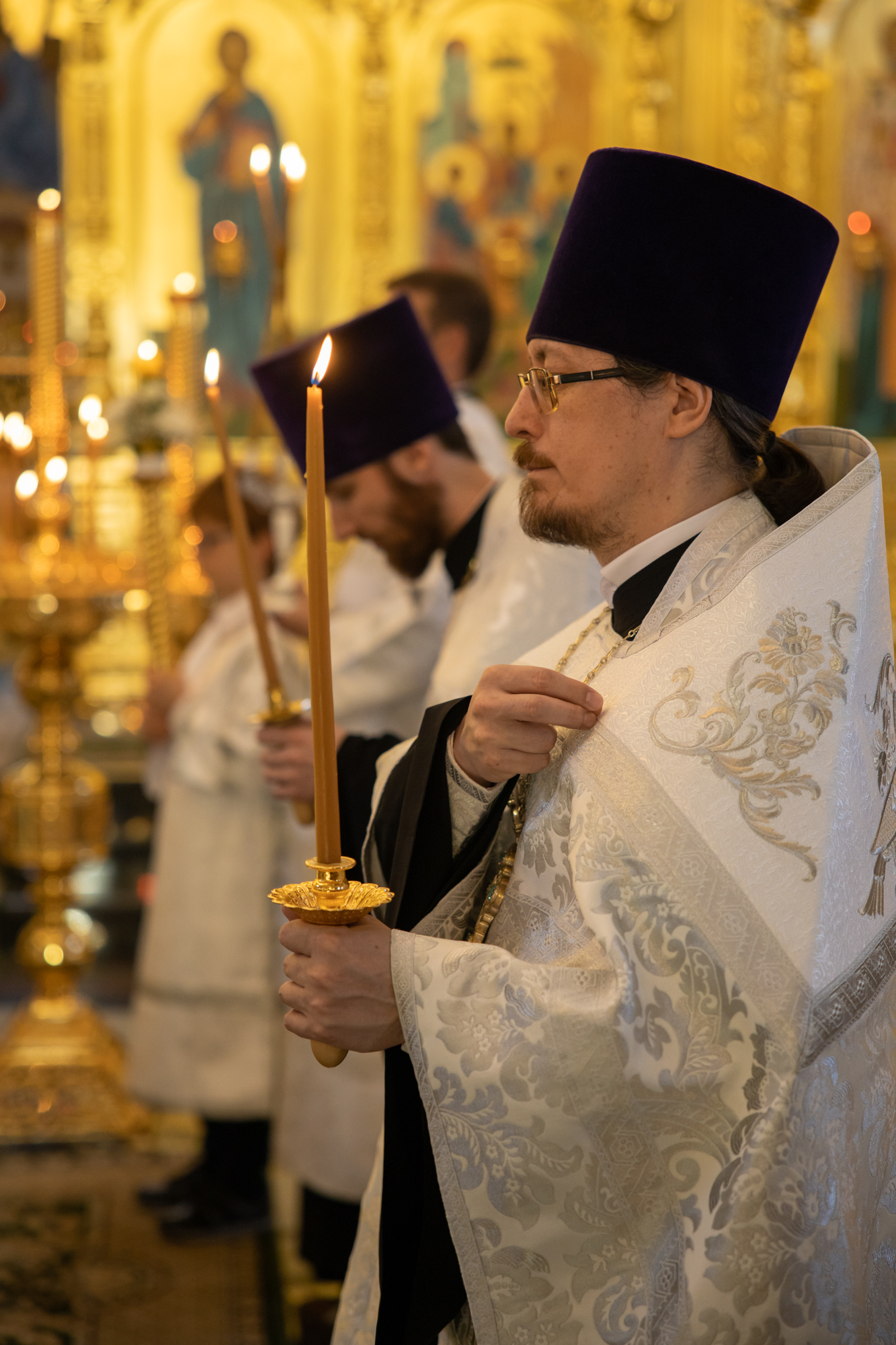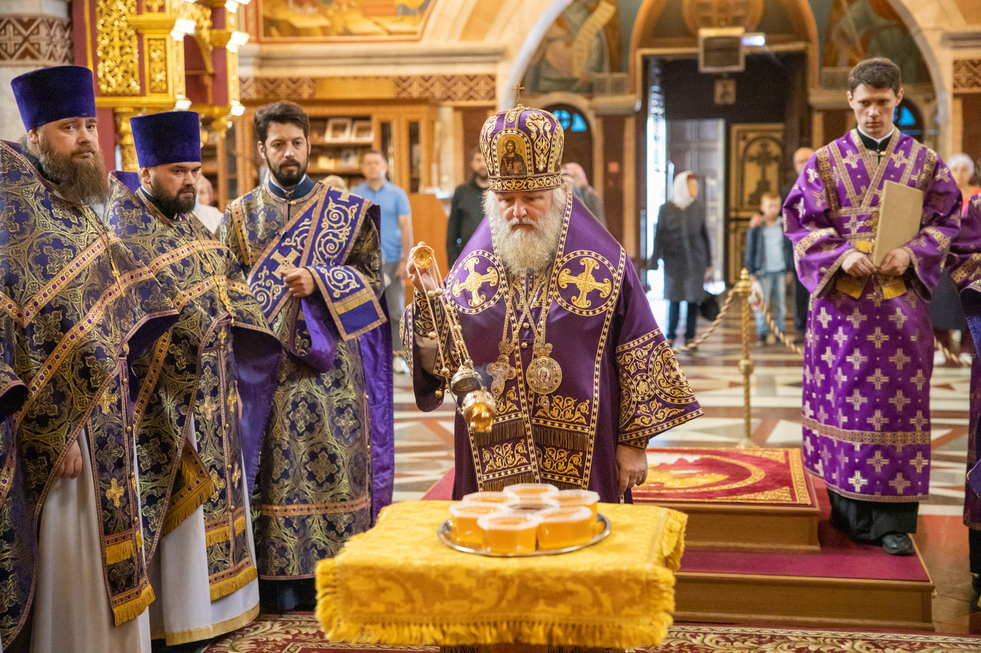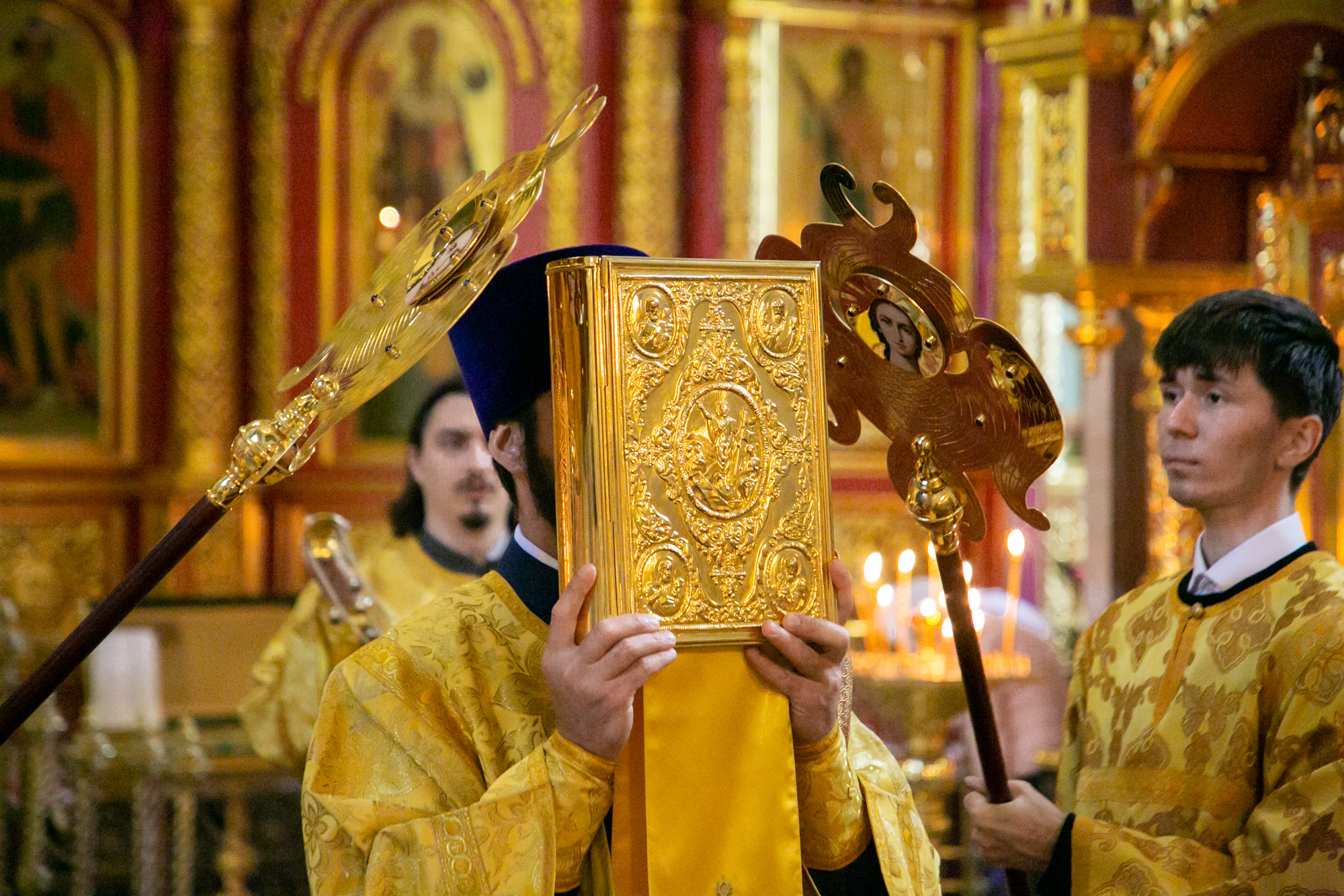 Его Высокопреосвященству сослужили: секретарь Ханты-Мансийской епархии игумен Антоний (Кирпичев), секретарь Югорской епархии иерей Николай Щерба, настоятель храм в честь Рождества Пресвятой Богородицы г. Урай протоиерей Иоанн Юрцун, настоятель храма иерей Леонид Бартков, духовенство города Ханты-Мансийска. Диаконский чин возглавил диакон Даниил Матвеев.