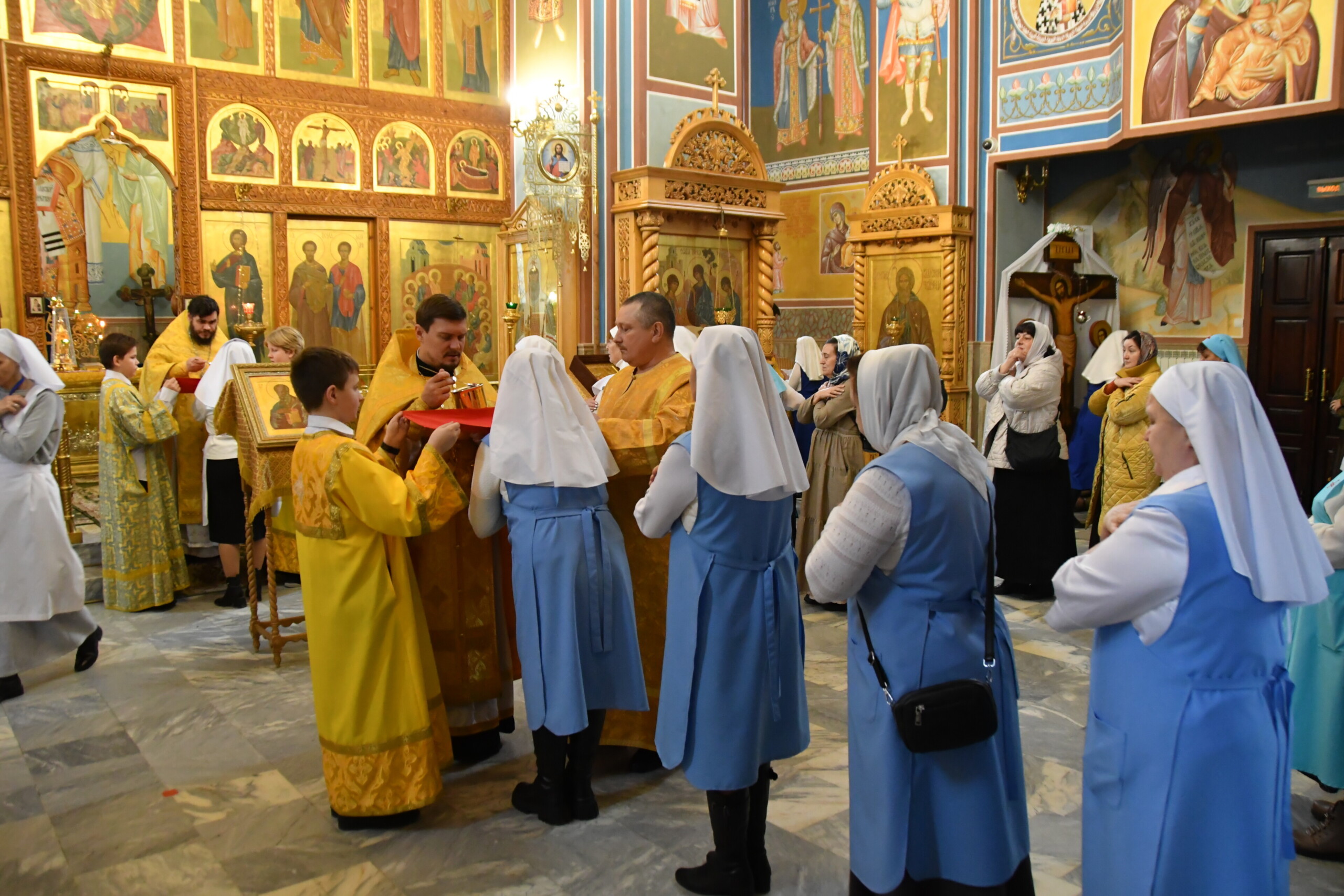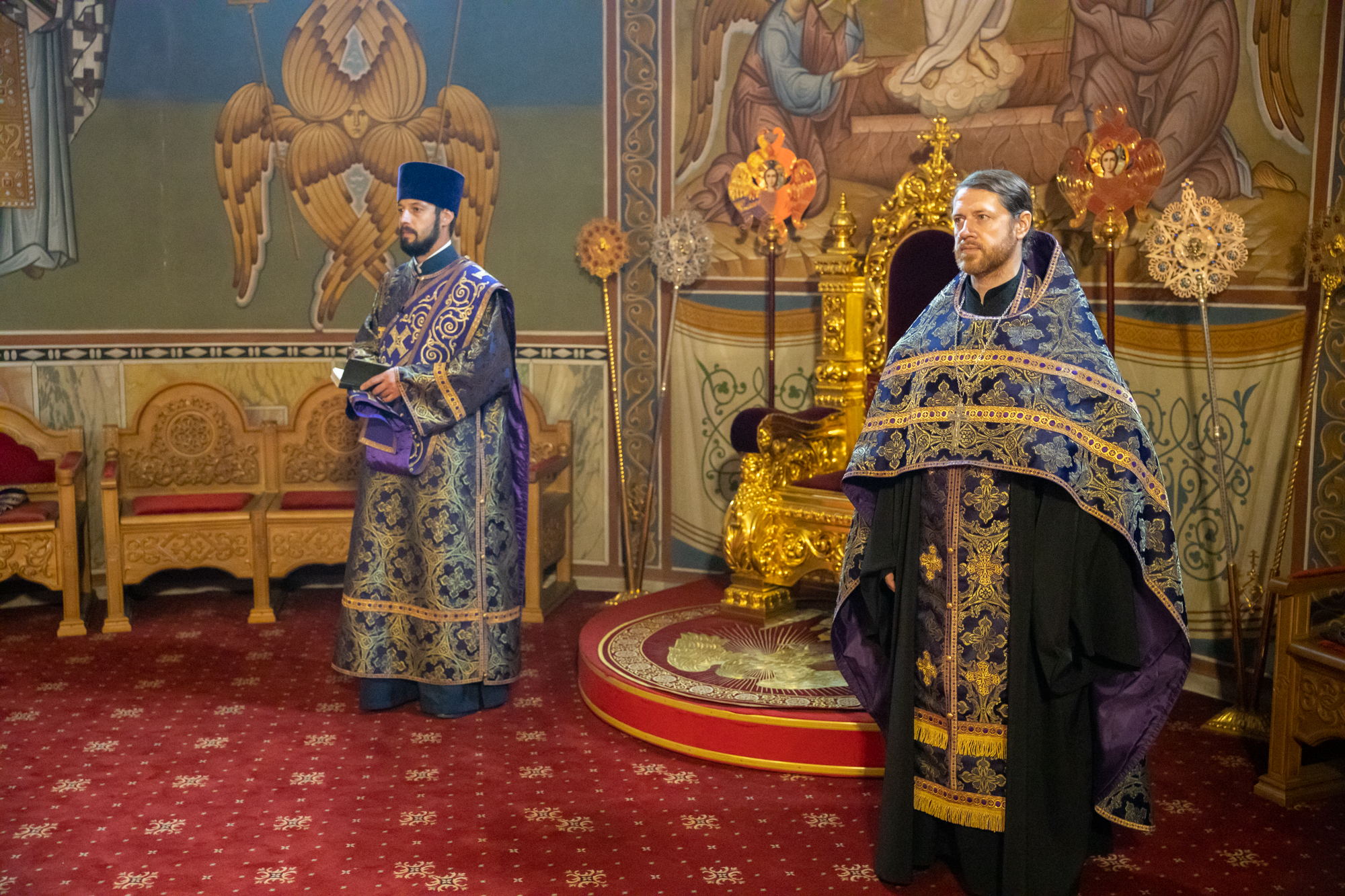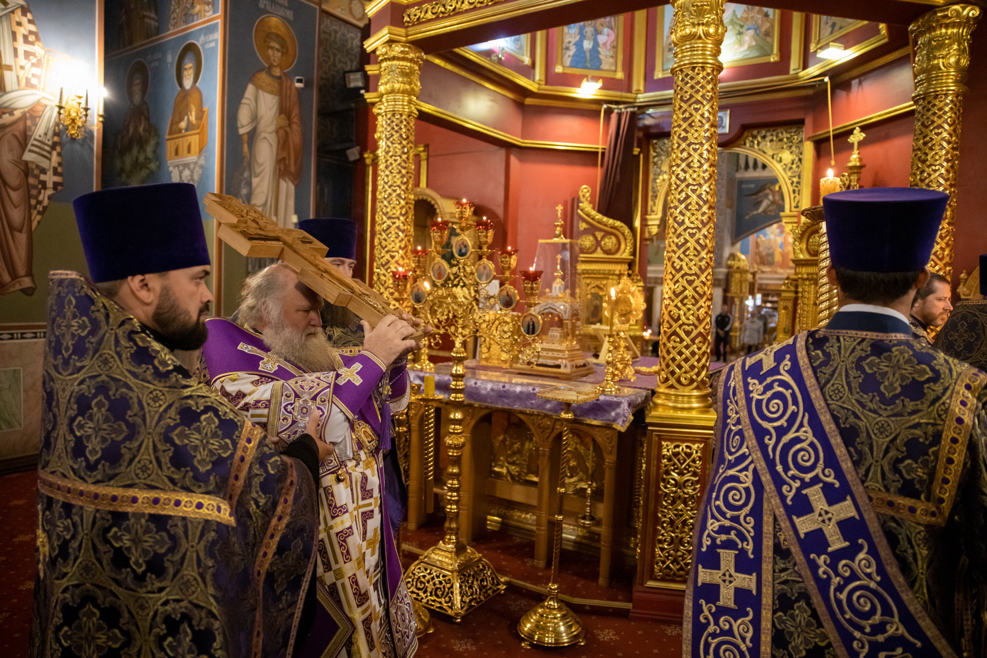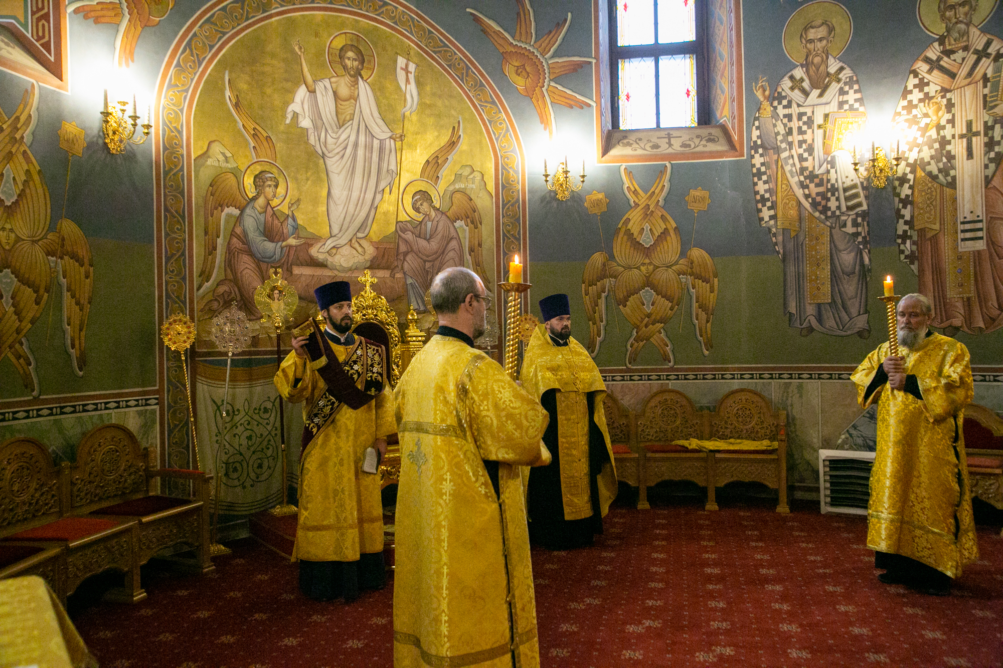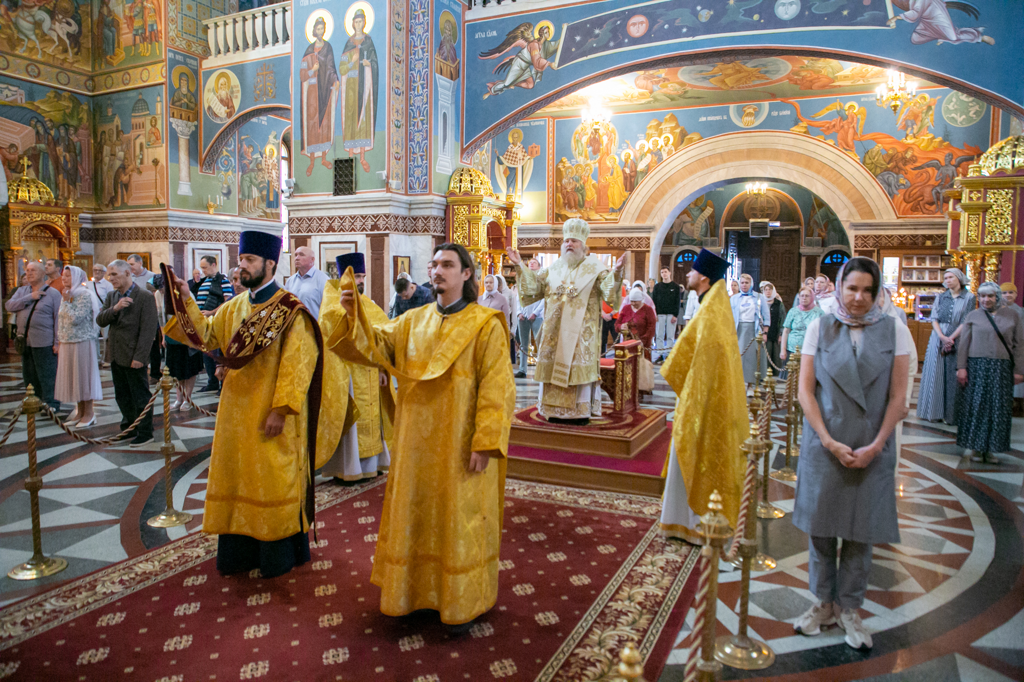 Его Высокопреосвященству сослужили: секретарь Ханты-Мансийской епархии игумен Антоний (Кирпичев), секретарь Югорской епархии иерей Николай Щерба, настоятель храм в честь Рождества Пресвятой Богородицы г. Урай протоиерей Иоанн Юрцун, настоятель храма иерей Леонид Бартков, духовенство города Ханты-Мансийска. Диаконский чин возглавил диакон Даниил Матвеев.