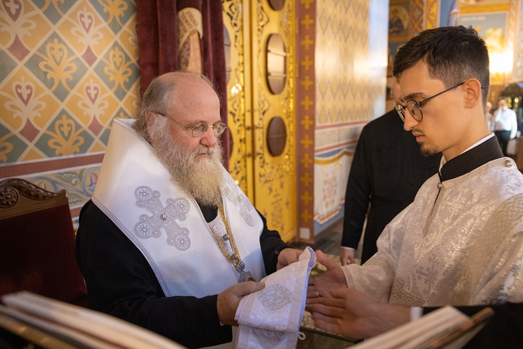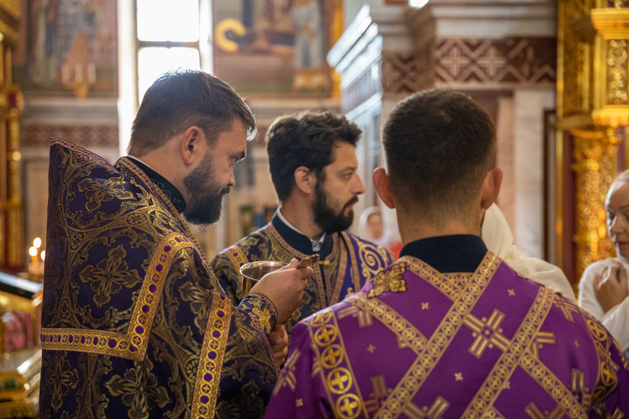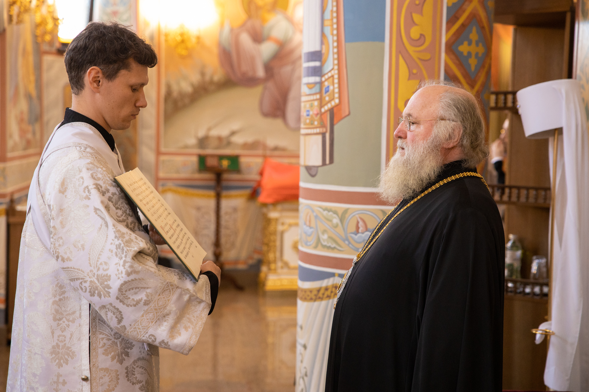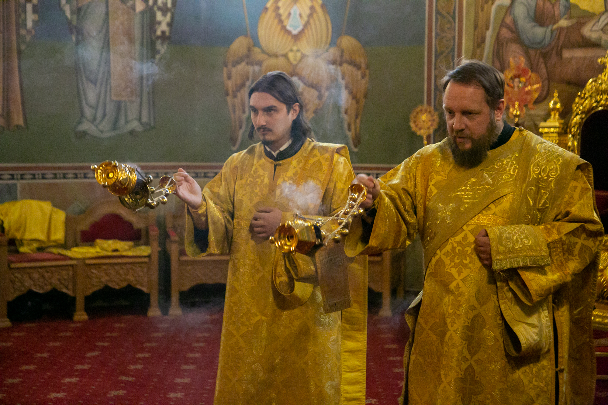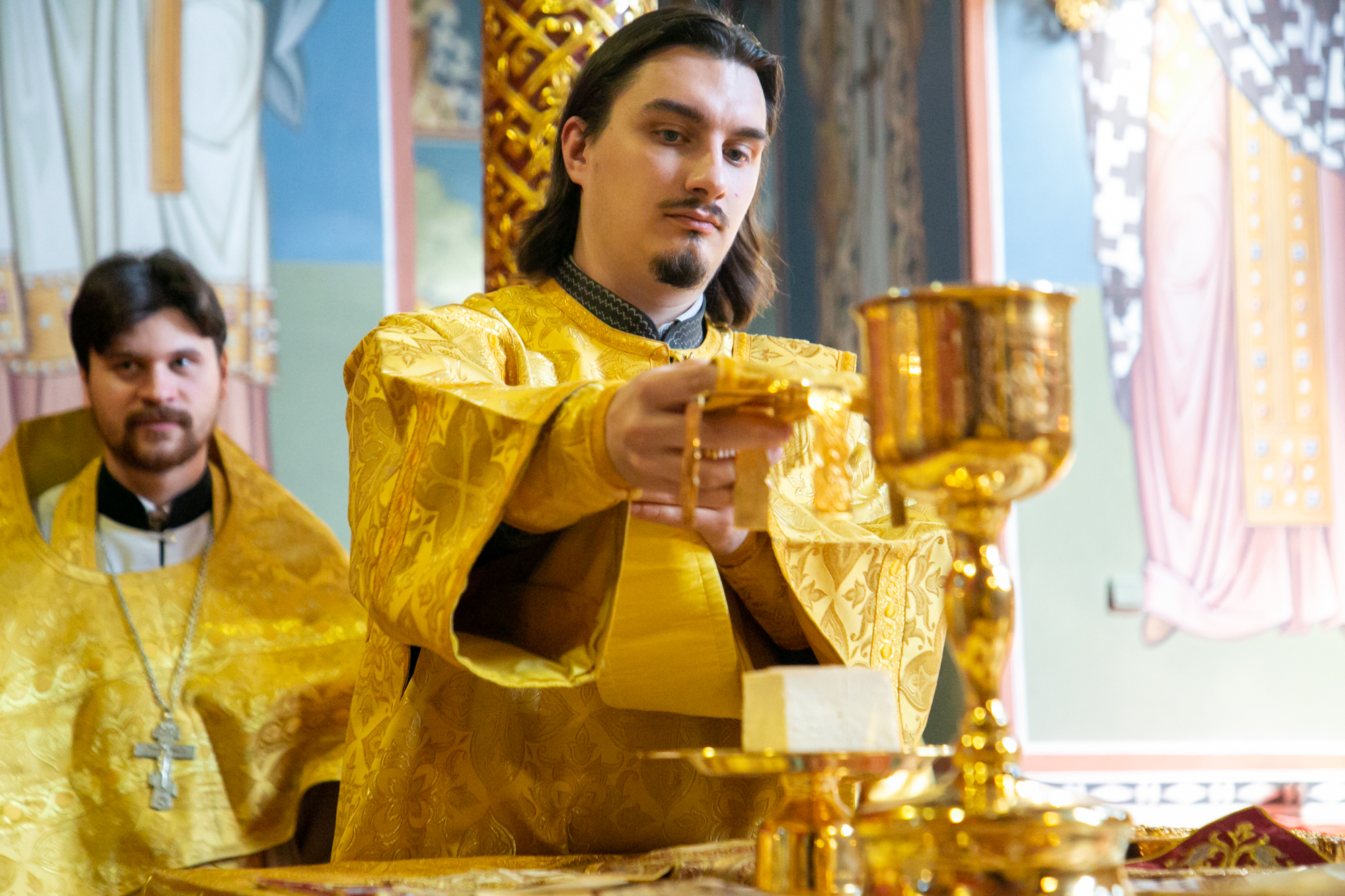 Его Высокопреосвященству сослужили: секретарь Ханты-Мансийской епархии игумен Антоний (Кирпичев), секретарь Югорской епархии иерей Николай Щерба, настоятель храм в честь Рождества Пресвятой Богородицы г. Урай протоиерей Иоанн Юрцун, настоятель храма иерей Леонид Бартков, духовенство города Ханты-Мансийска. Диаконский чин возглавил диакон Даниил Матвеев.