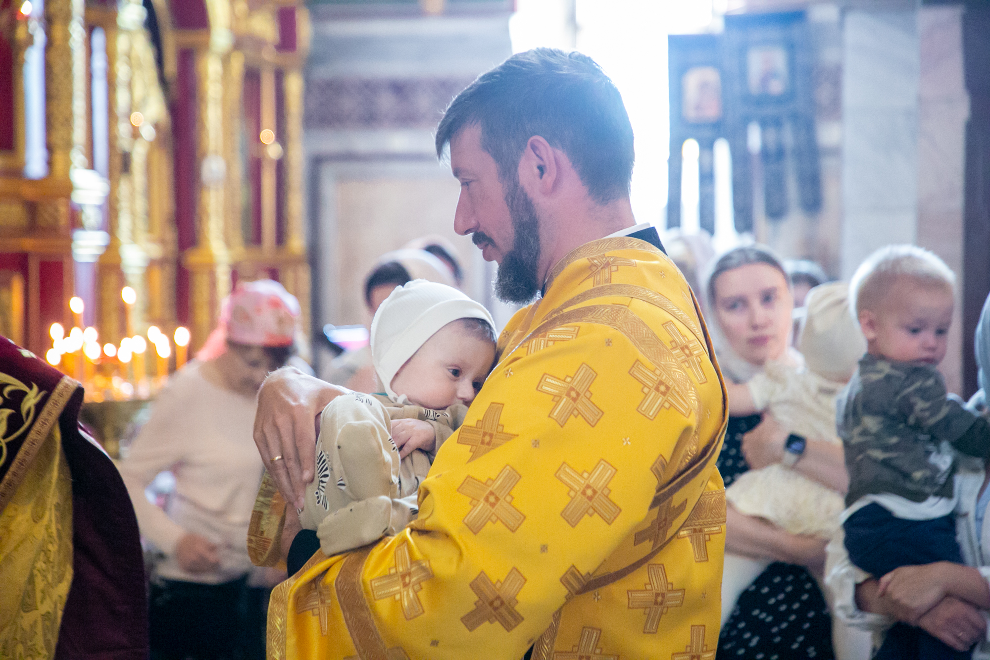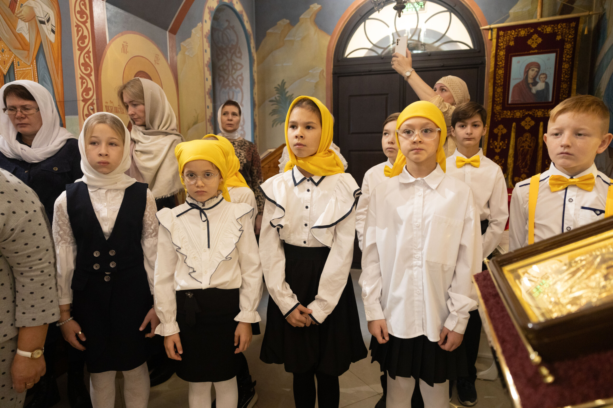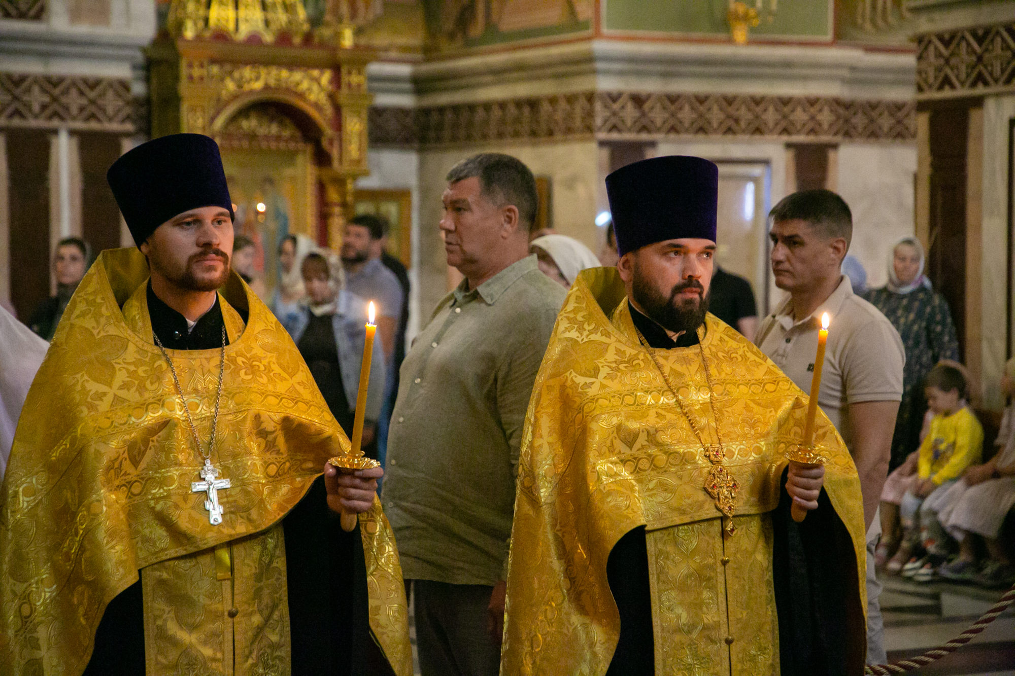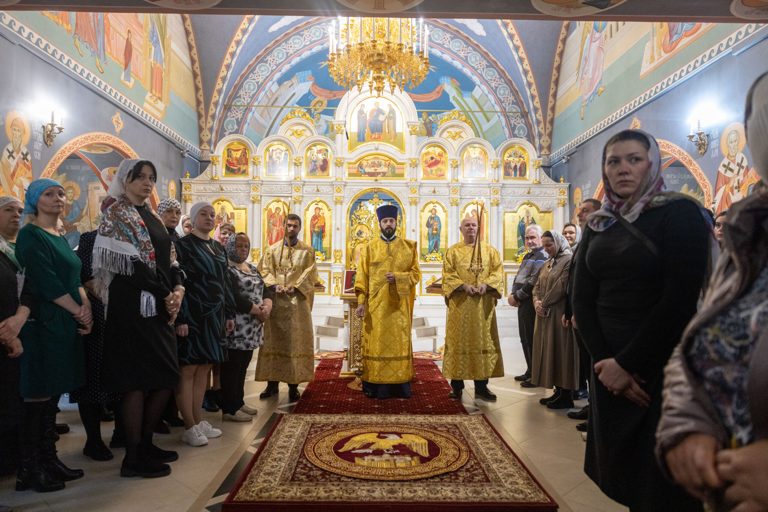 На мирной и сугубой ектениях были вознесены молитвы о Российском воинстве и о мире.