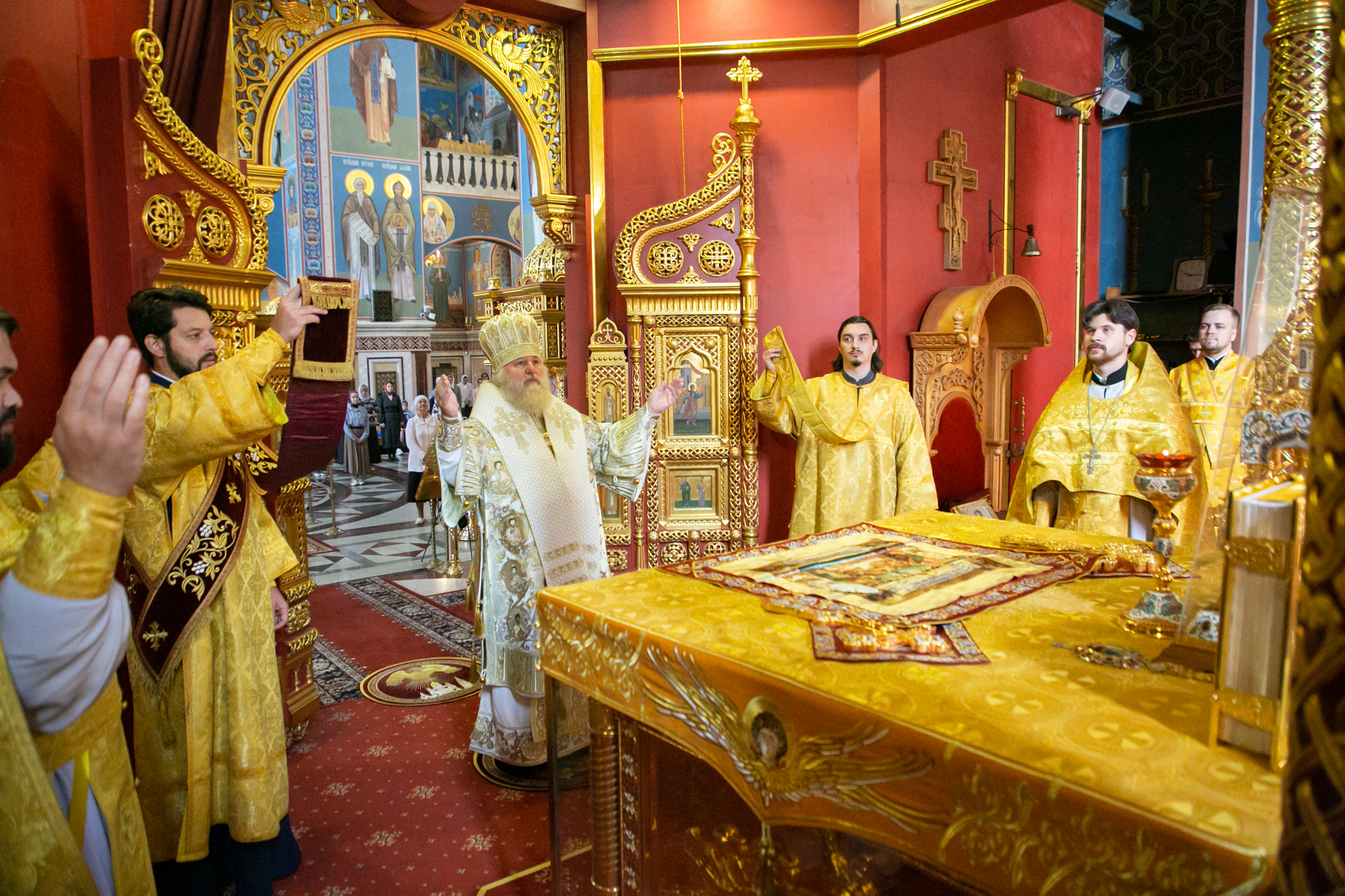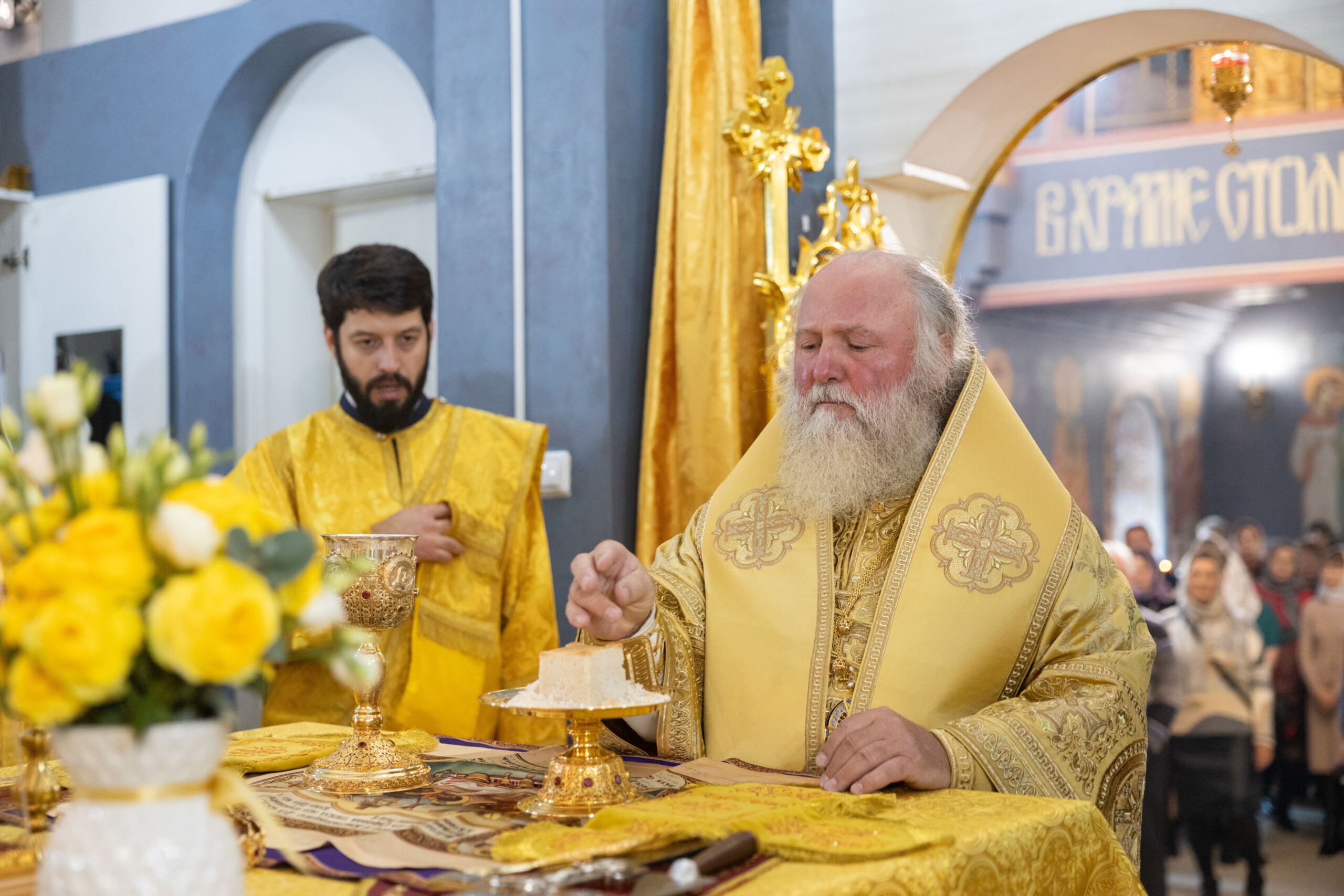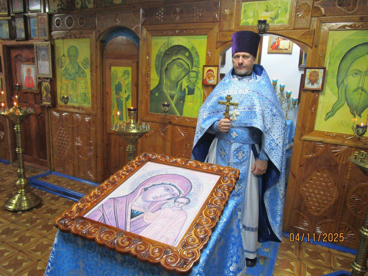 «Дорогие отцы, братья и сестры, позвольте от сердца души поблагодарить всех за общие молитвы и поздравить с престольным днём! Сегодня мы отмечаем память иконы Божьей Матери «Знамение». Храму, который посвящен Царице Небесной, исполнилось 30 лет со дня образования. Я всех сердечно поздравляю с этим юбилеем, с праздником Царицы Небесной. Хотел в знак нашего сегодняшнего богослужения, подарить Евангелие для этого храма на молитвенную память!»