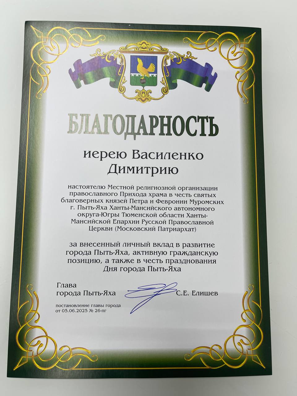 Поздравление Святейшего Патриарха Кирилла с 95-летием образования Ханты-Мансийского автономного округа — Югры