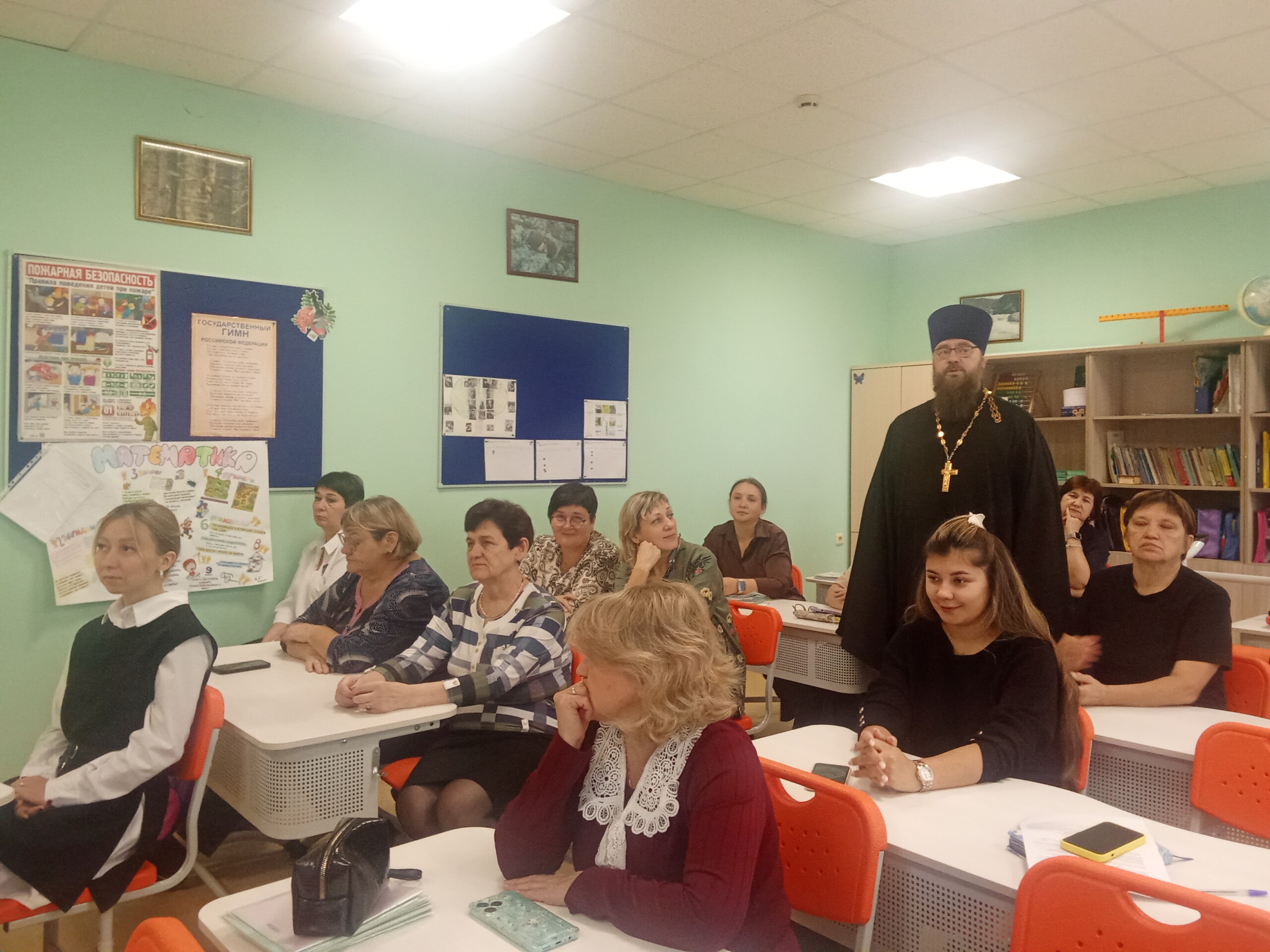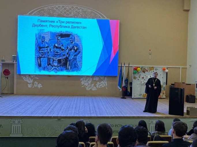 Во время урока священник рассказал об истории празднования Дня Героев Отечества, который до 1917 года назывался Днем Георгиевских кавалеров, остановился на повествовании о героях России на протяжении всей ее истории, особо остановился на подвиге соотечественников в годы Великой Отечественной войны, а также на современных героях., среди которых есть и священнослужители.