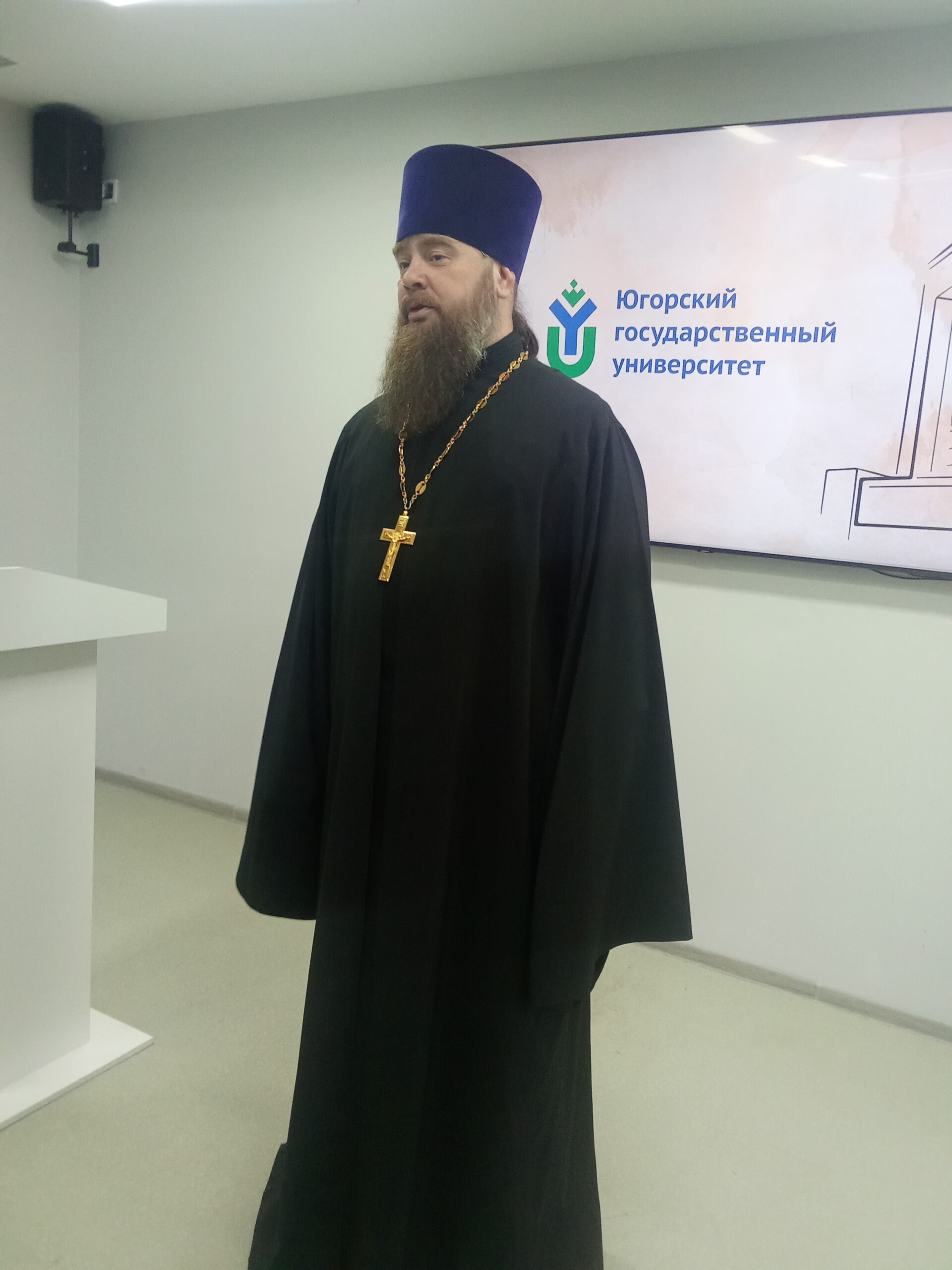 «Многоуважаемый Руслан Николаевич, дорогие отцы, братья и сестры, мы собрались сегодня в святом этом храме, чтобы поблагодарить Господа Бога за все Его благодеяния нашей земле. Сегодня мы отмечаем день образования нашего автономного округа, день рождения Югры.