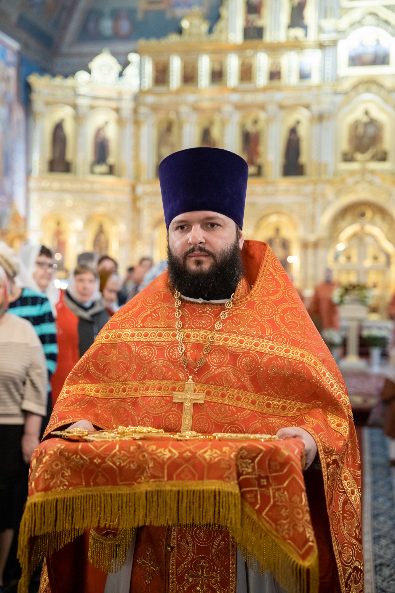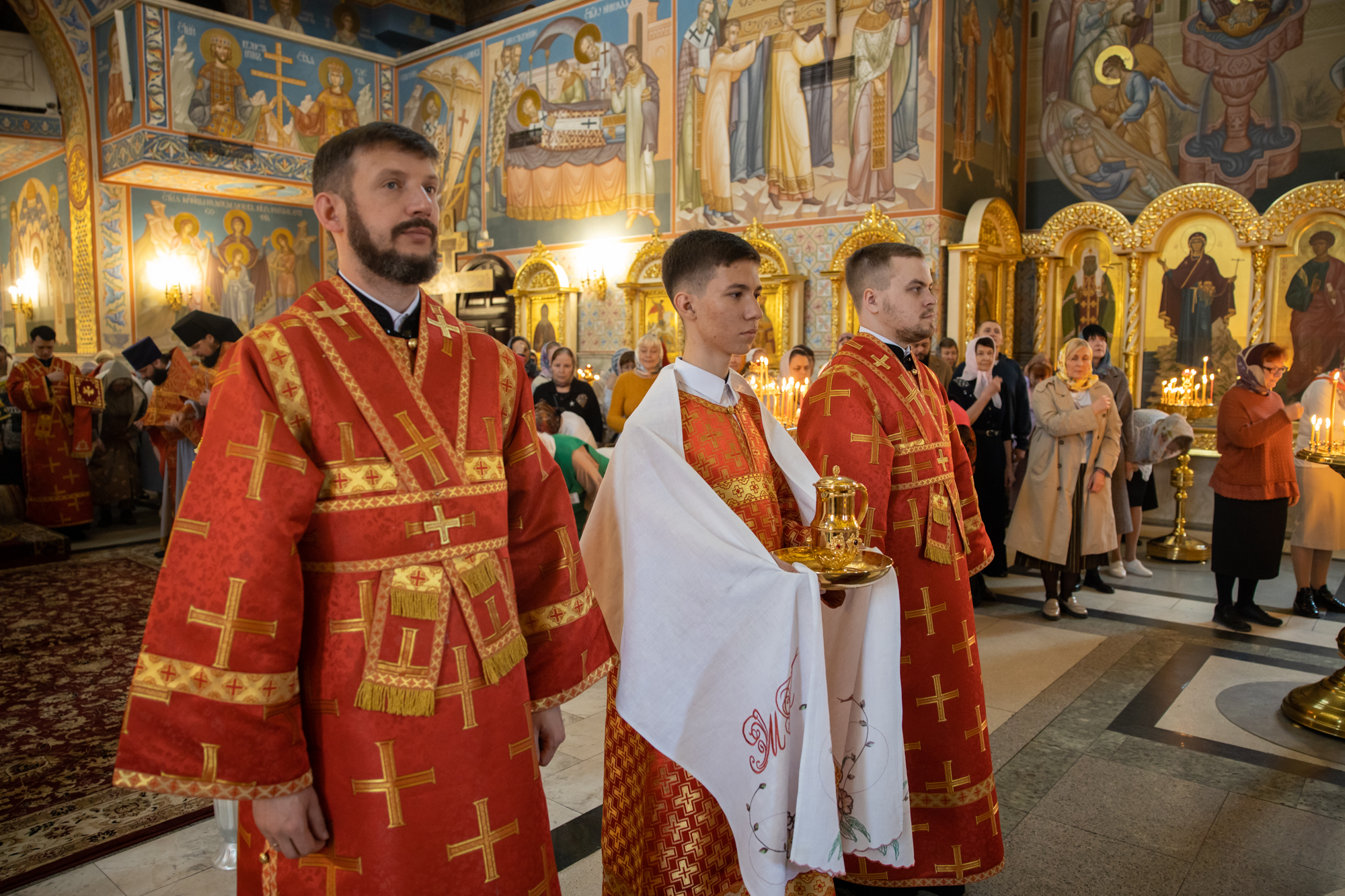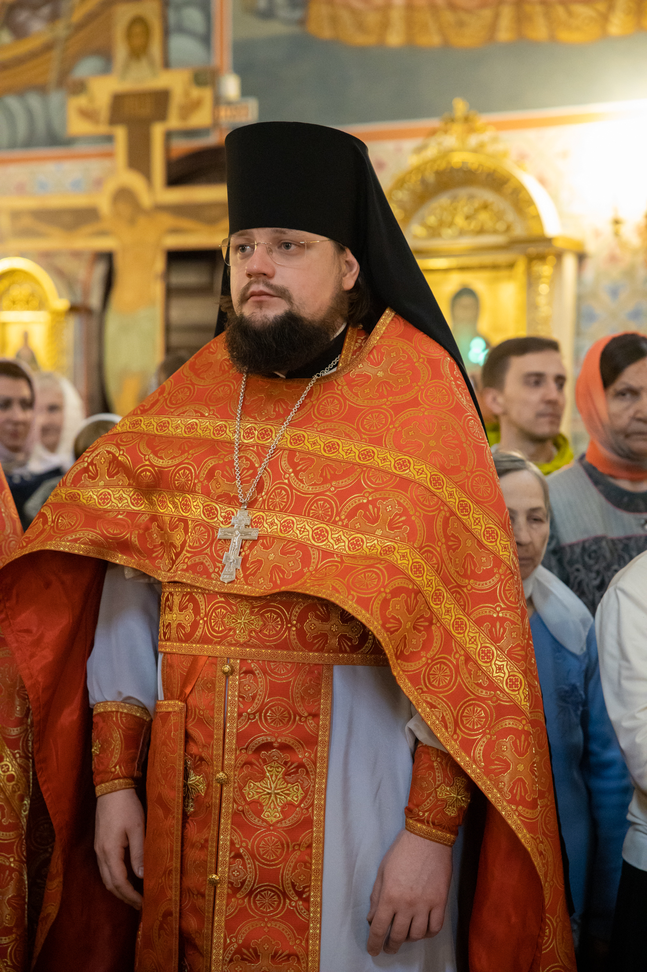 Его Высокопреосвященству сослужили: секретарь Ханты-Мансийской епархии игумен Антоний (Кирпичев), секретарь Югорской епархии иерей Николай Щерба, настоятель храм в честь Рождества Пресвятой Богородицы г. Урай протоиерей Иоанн Юрцун, настоятель храма иерей Леонид Бартков, духовенство города Ханты-Мансийска. Диаконский чин возглавил диакон Даниил Матвеев.