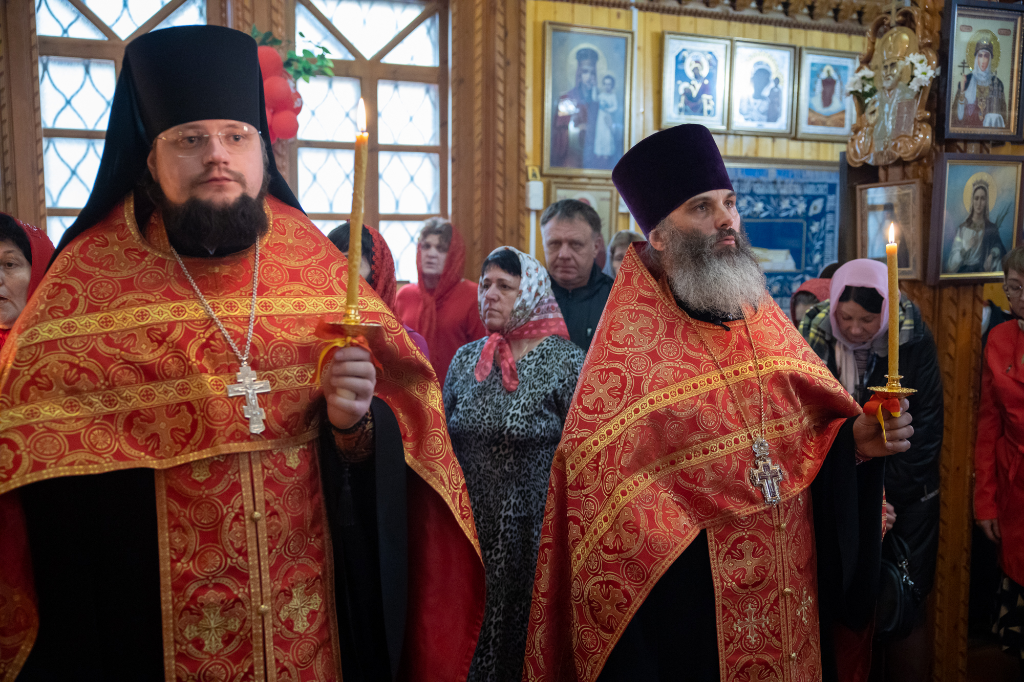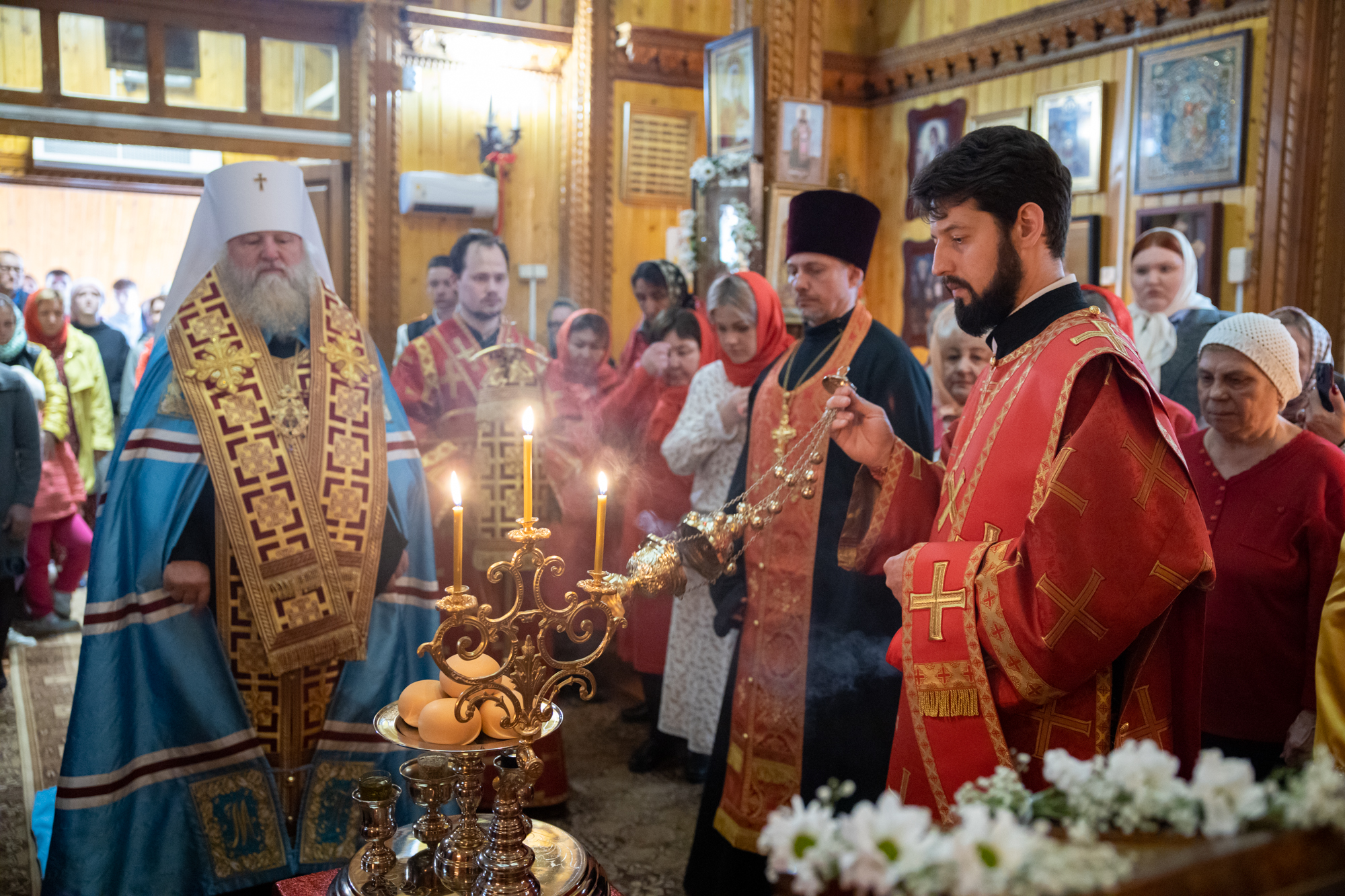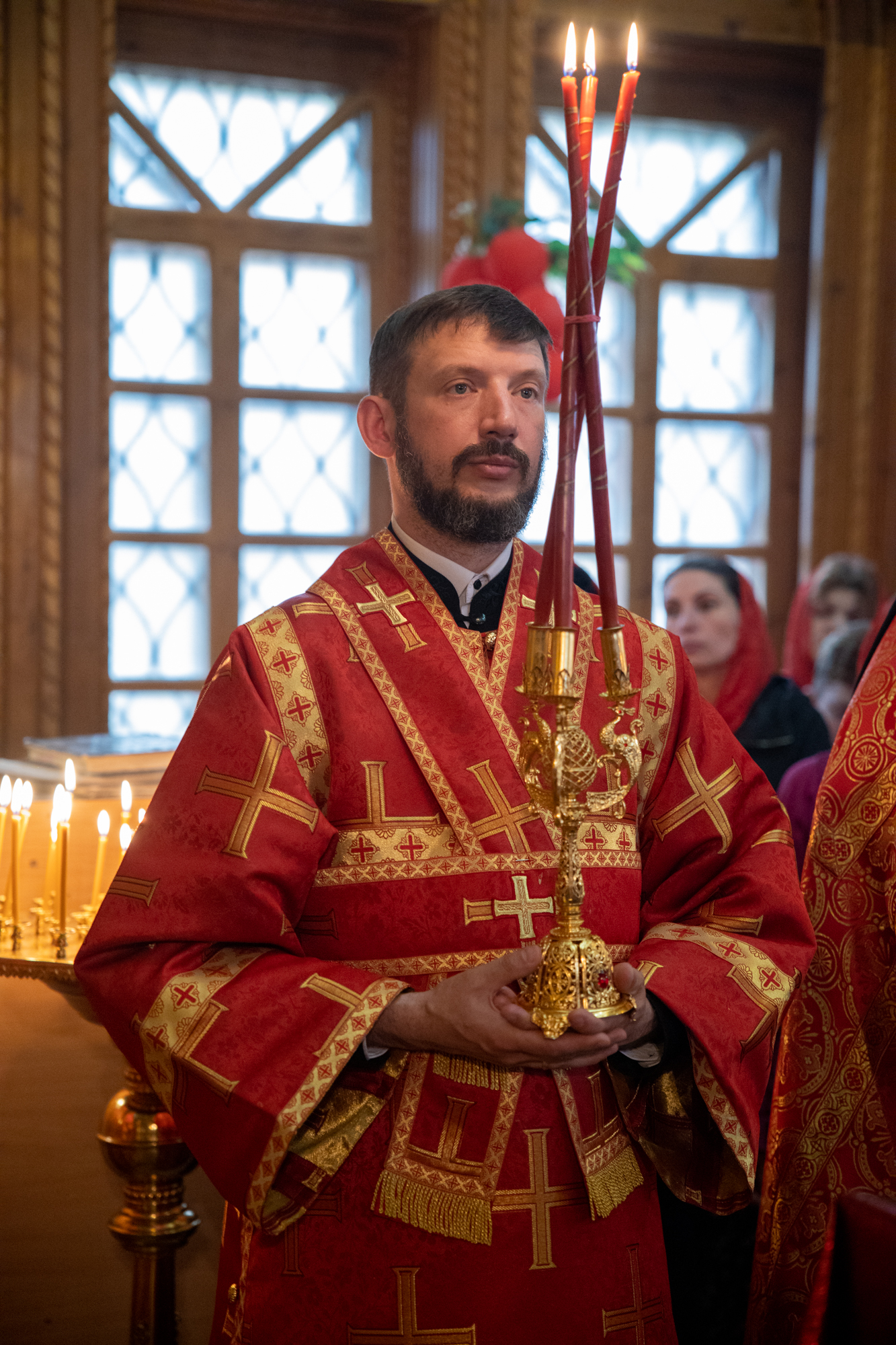Его Высокопреосвященству сослужили: секретарь Ханты-Мансийской епархии игумен Антоний (Кирпичев), секретарь Югорской епархии иерей Николай Щерба, настоятель храм в честь Рождества Пресвятой Богородицы г. Урай протоиерей Иоанн Юрцун, настоятель храма иерей Леонид Бартков, духовенство города Ханты-Мансийска. Диаконский чин возглавил диакон Даниил Матвеев.