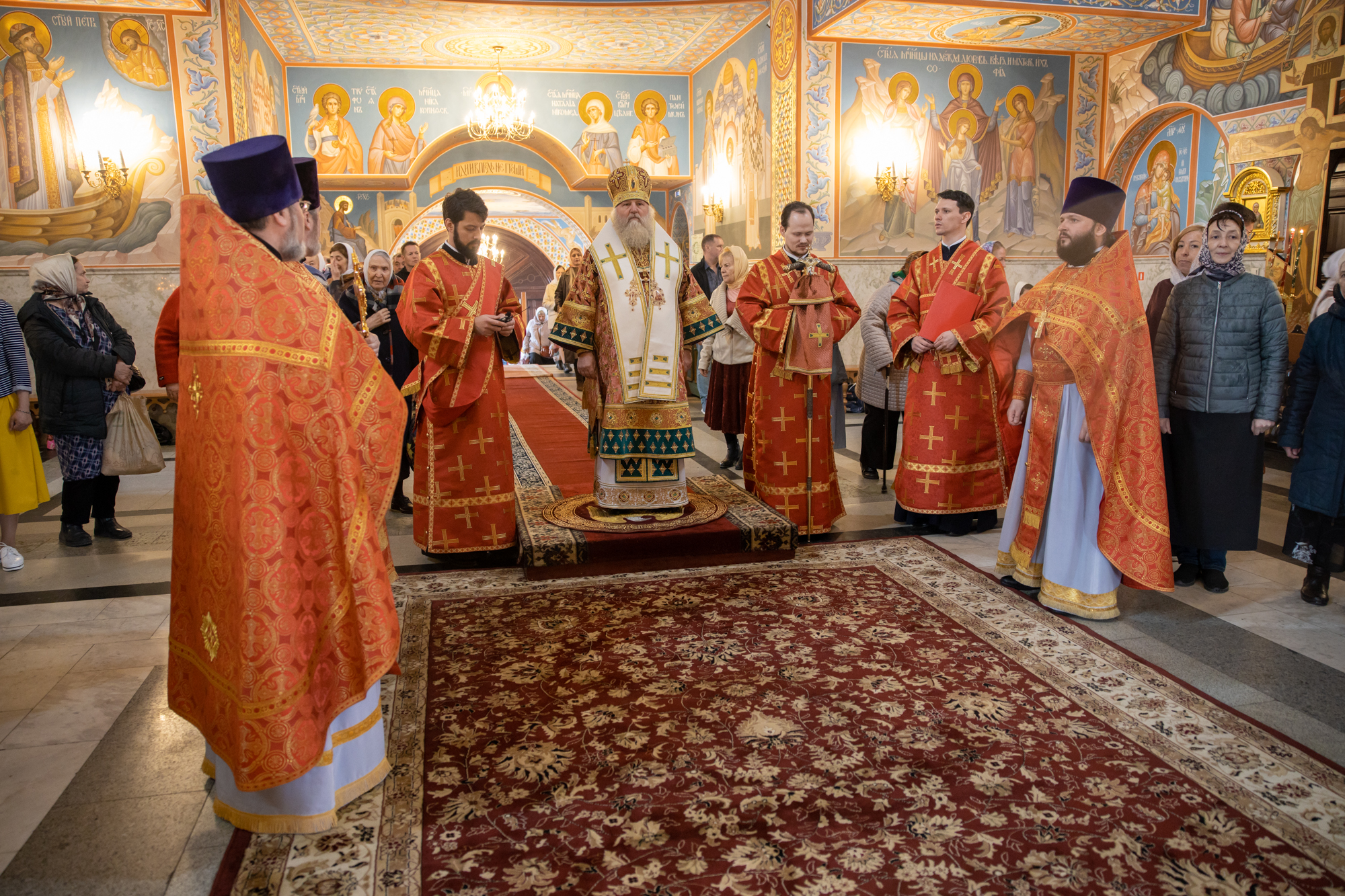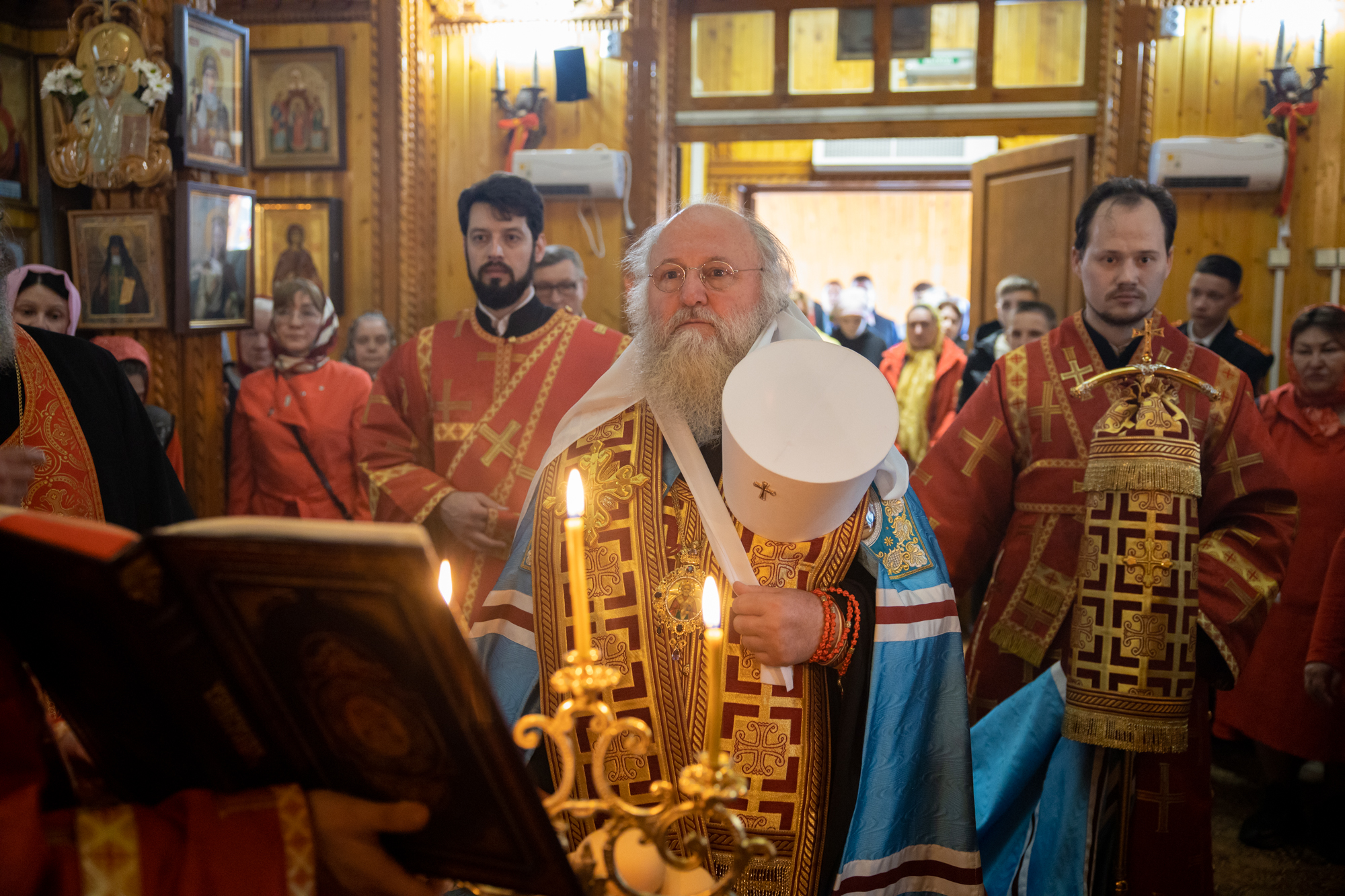 Его Высокопреосвященству сослужили: секретарь Ханты-Мансийской епархии игумен Антоний (Кирпичев), ключарь собора иерей Александр Петюр, диакон Даниил Матвеев.