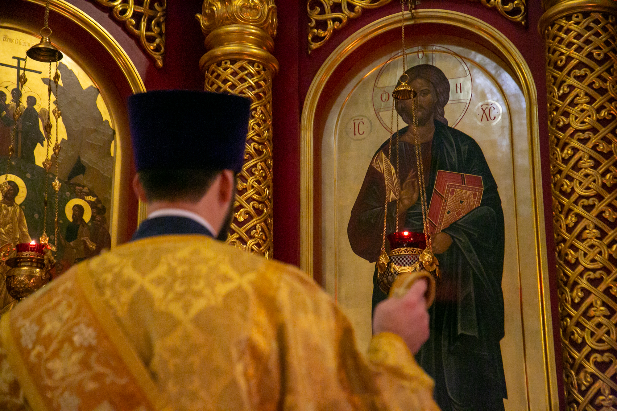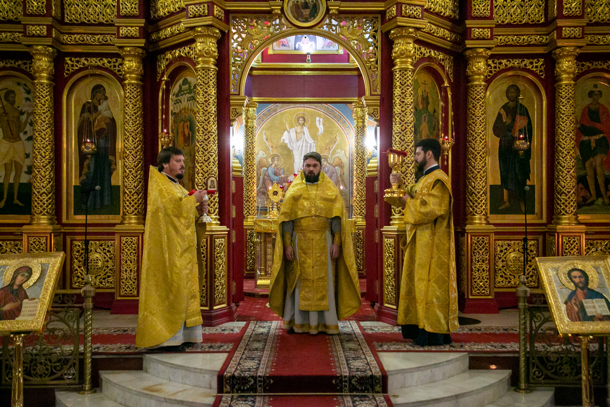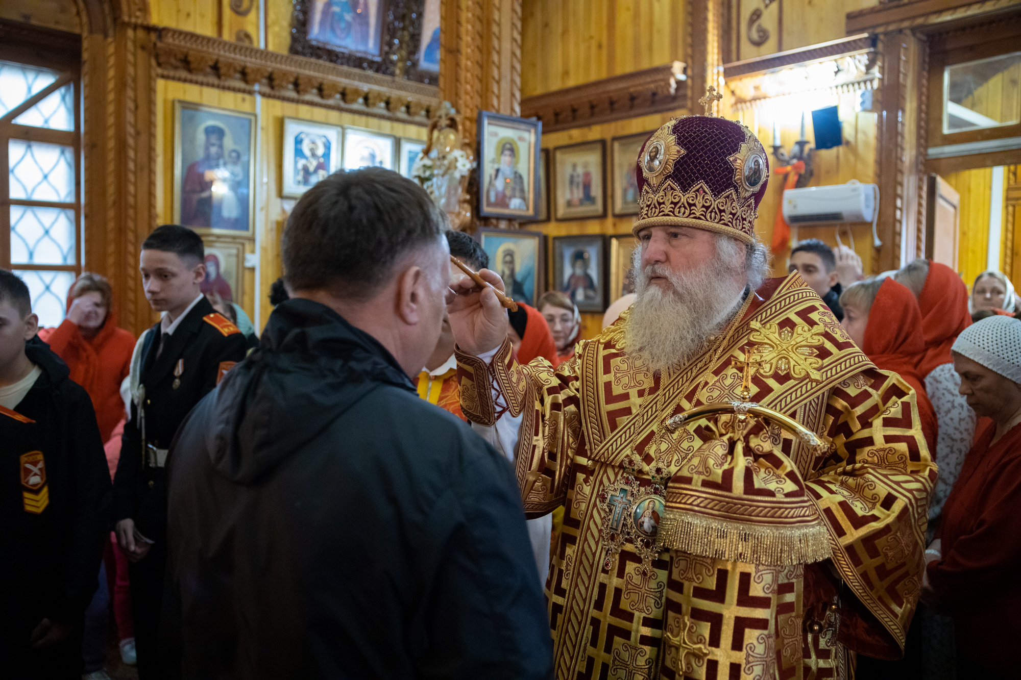 На мирной и сугубой ектениях были вознесены молитвы о Российском воинстве и о мире.