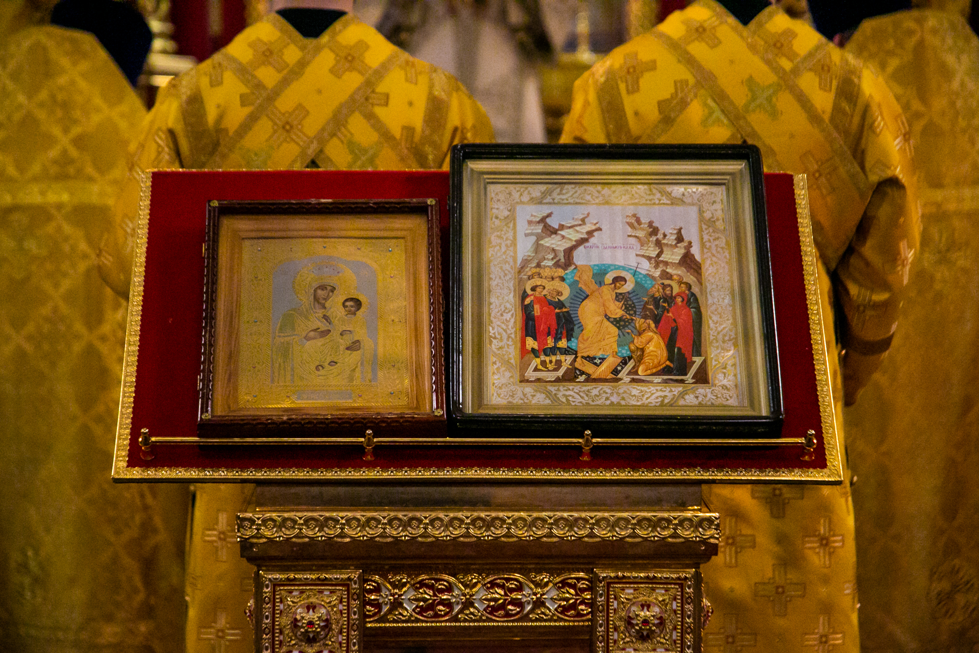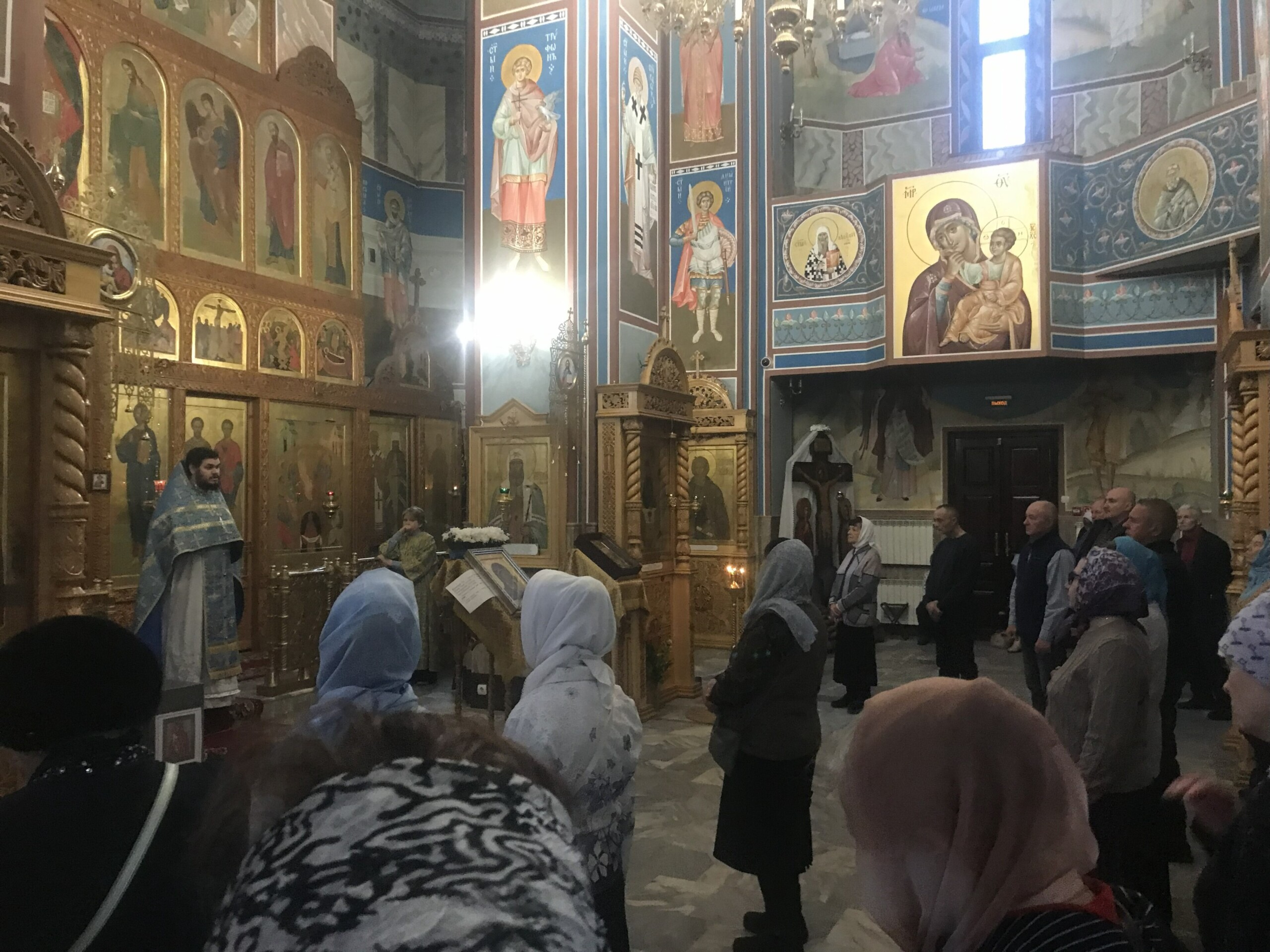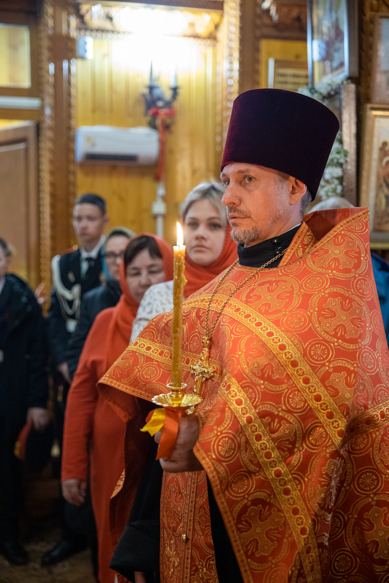 На мирной и сугубой ектениях были вознесены молитвы о Российском воинстве и о мире.