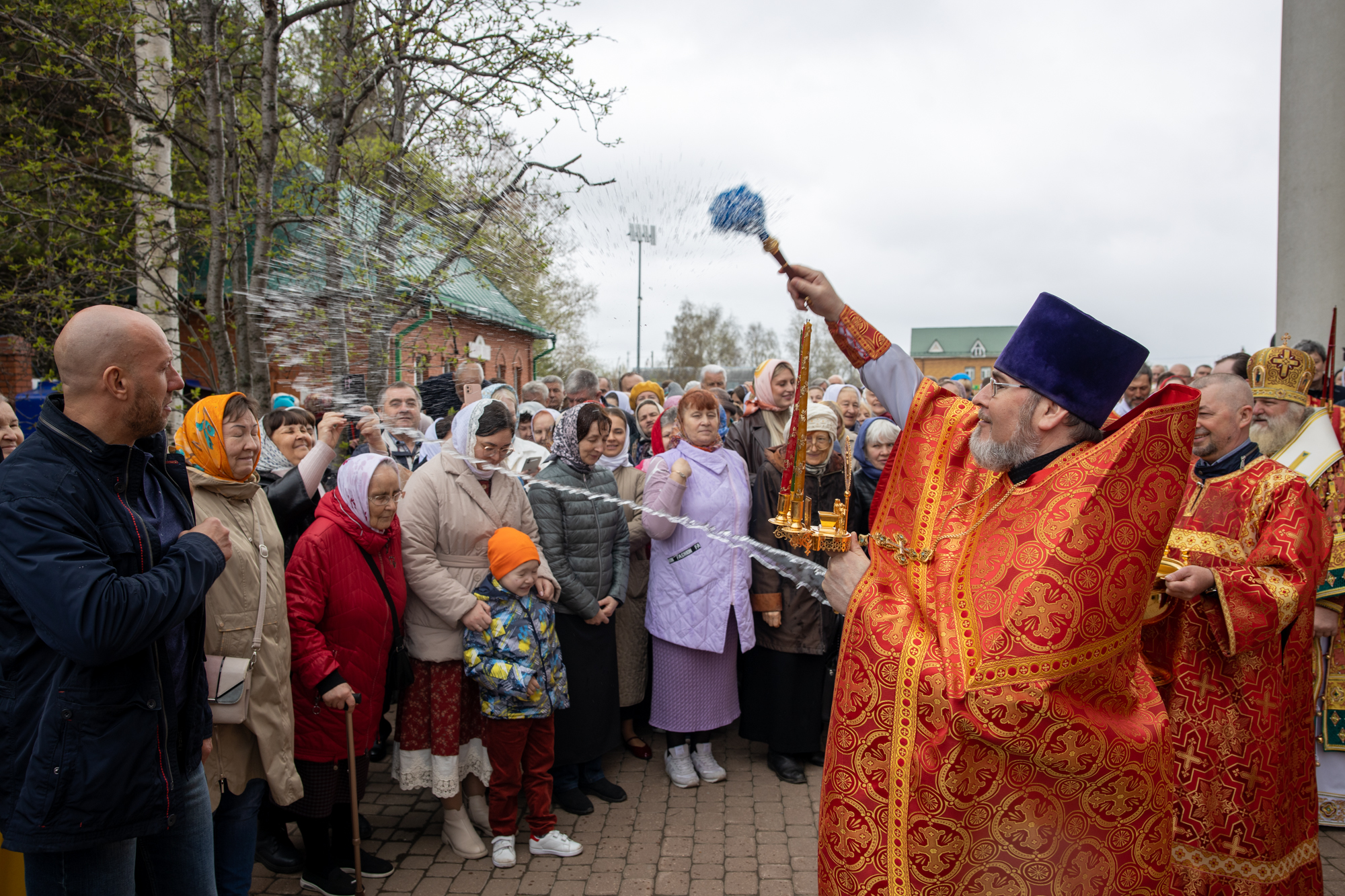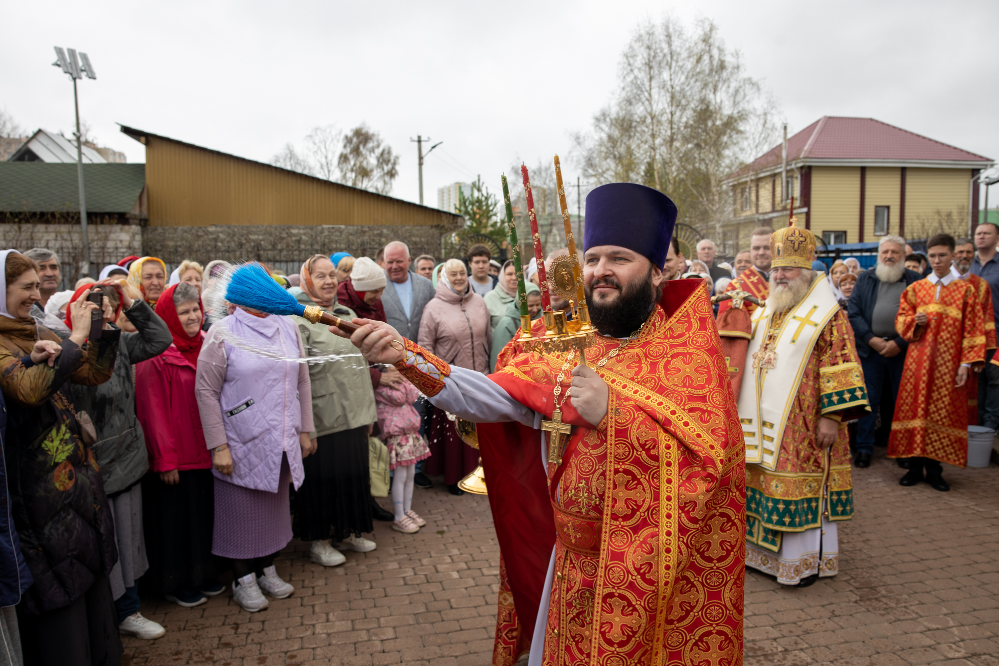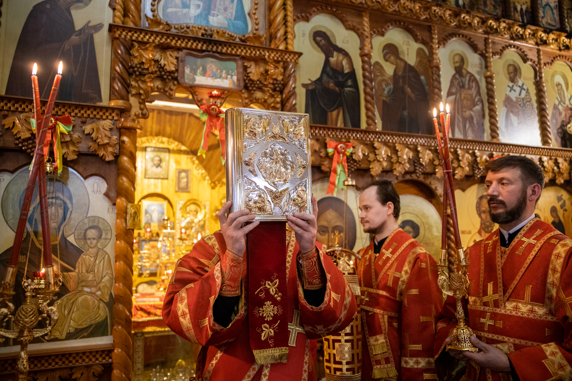 «Дорогие отцы, братья и сестры, позвольте от сердца души поблагодарить всех за общие молитвы и поздравить с престольным днём! Сегодня мы отмечаем память иконы Божьей Матери «Знамение». Храму, который посвящен Царице Небесной, исполнилось 30 лет со дня образования. Я всех сердечно поздравляю с этим юбилеем, с праздником Царицы Небесной. Хотел в знак нашего сегодняшнего богослужения, подарить Евангелие для этого храма на молитвенную память!»