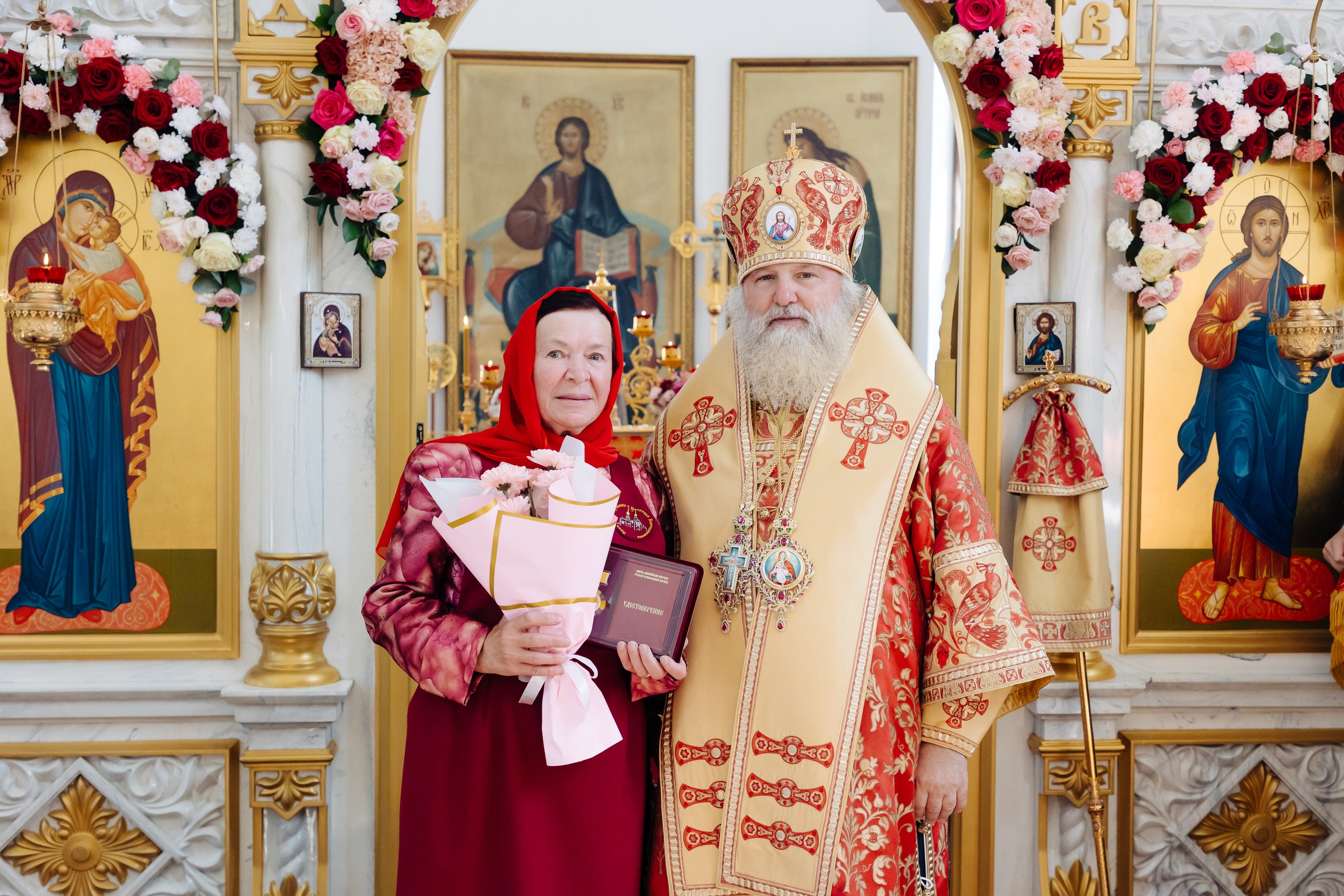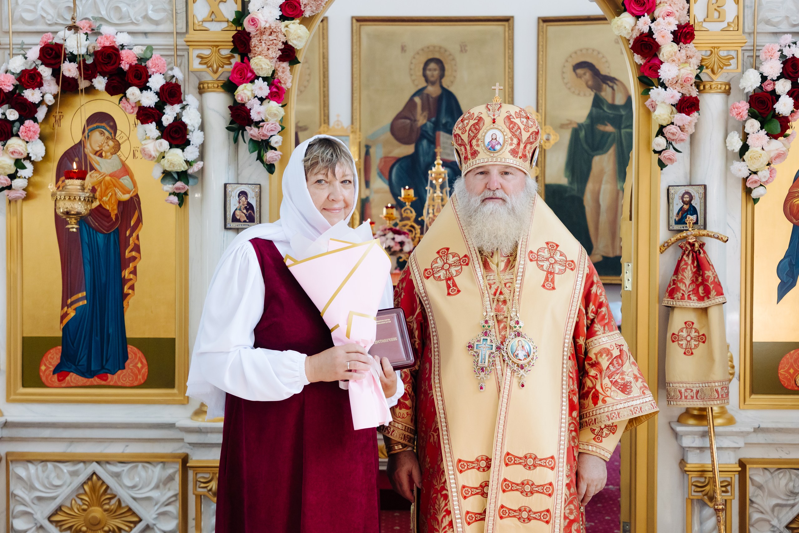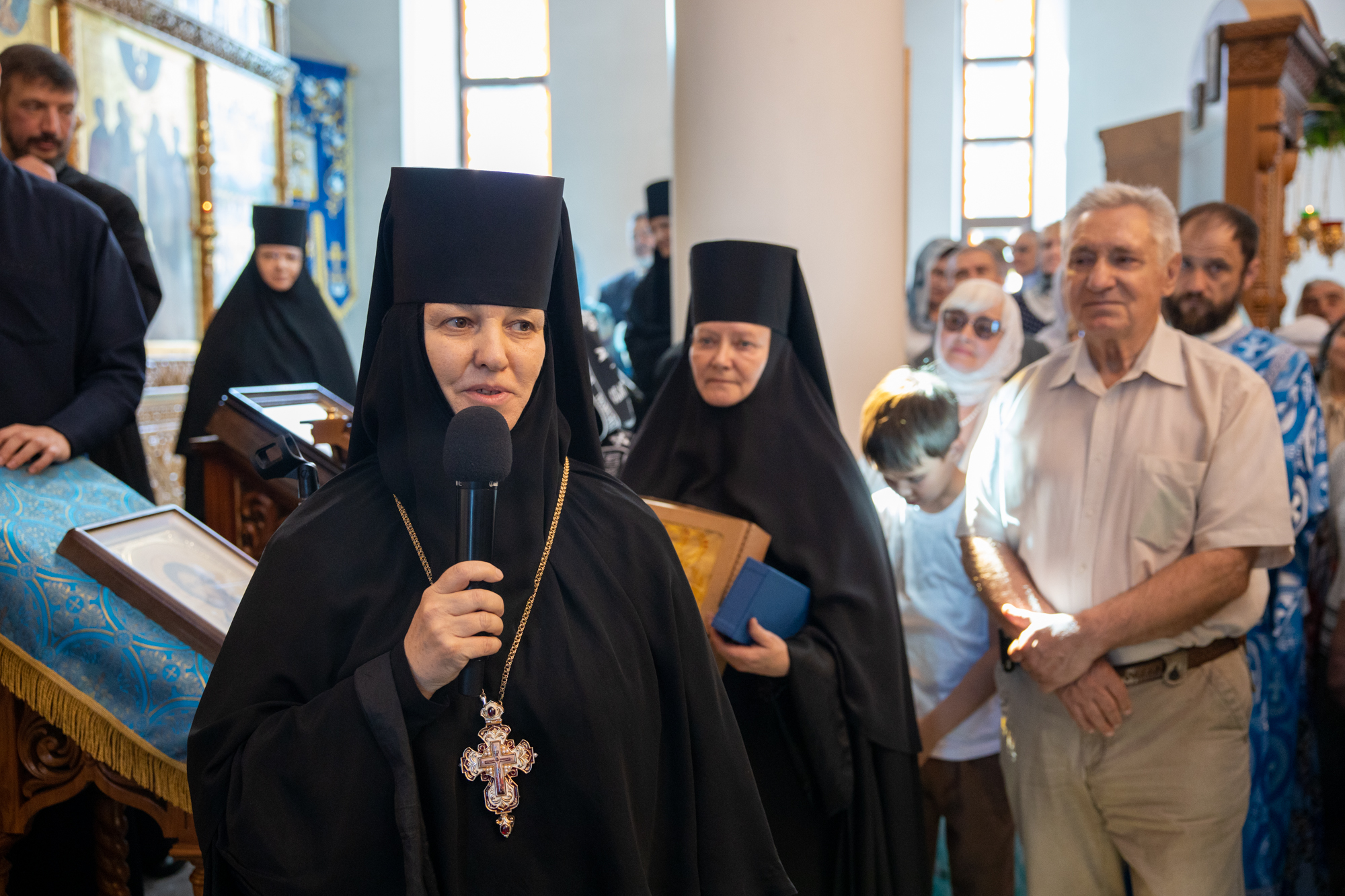 Благодарю вас, Господь, всех вас, мои дорогие, благодарю за общую молитву, поздравляю с праздником! И, конечно же, именинниц, тех, кто носит имя этой покровительницы, позвольте поздравить, пожелать крепости сил духовных, физических. и помощи небесной покровительницы, которая утвердила бы всех наших именинниц в крепкой и сильной вере и не оставляла на жизненном пути!»
