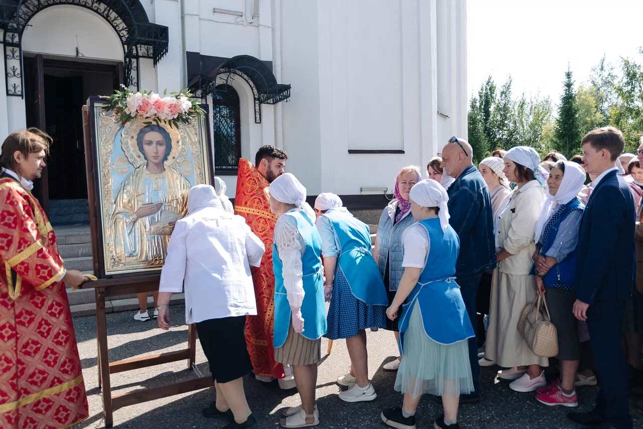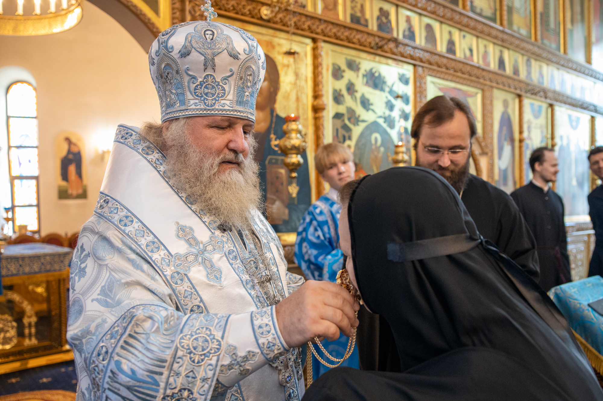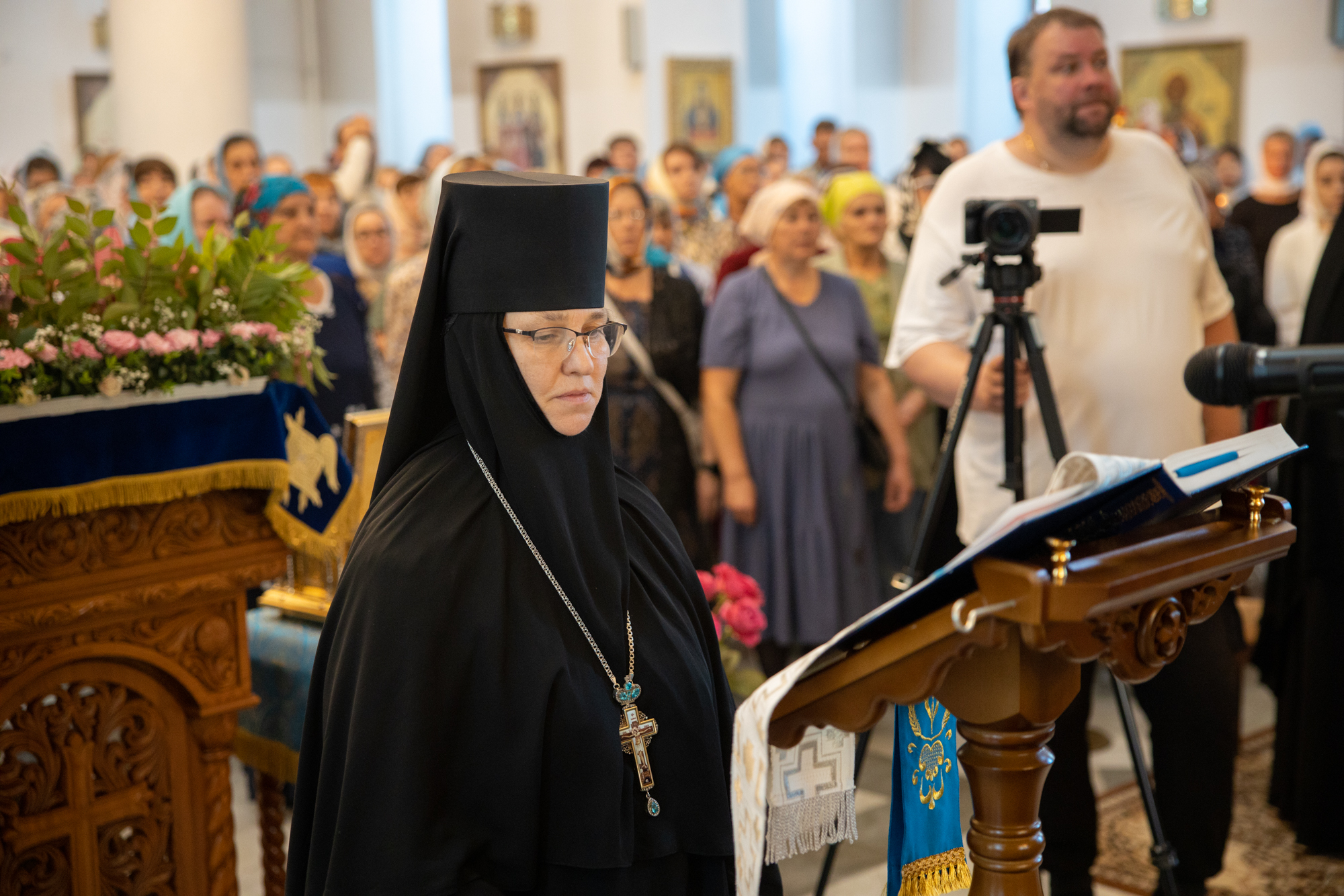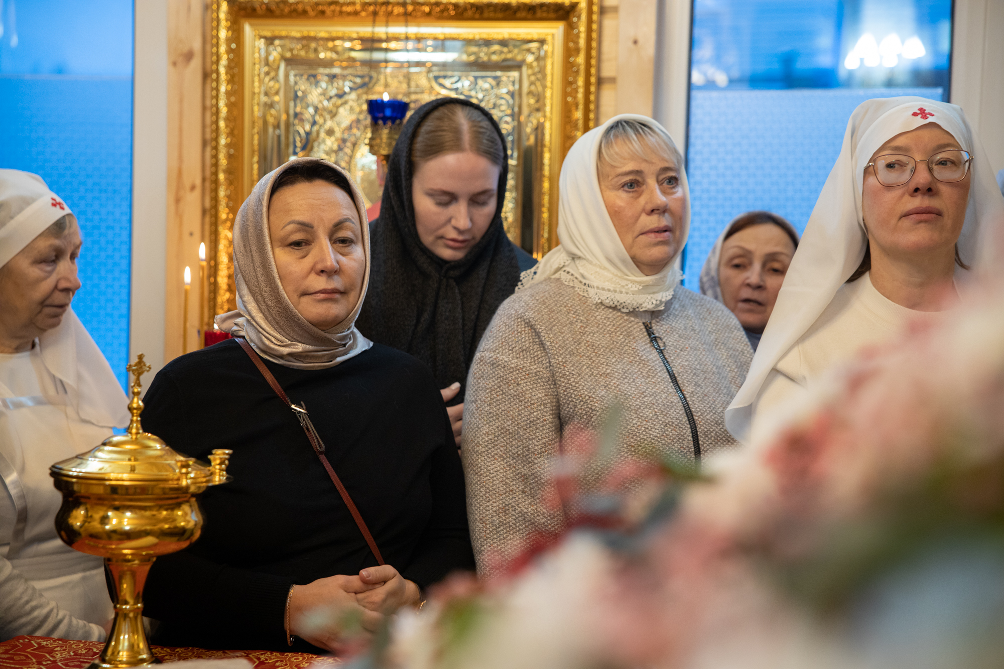 Благодарю вас, Господь, всех вас, мои дорогие, благодарю за общую молитву, поздравляю с праздником! И, конечно же, именинниц, тех, кто носит имя этой покровительницы, позвольте поздравить, пожелать крепости сил духовных, физических. и помощи небесной покровительницы, которая утвердила бы всех наших именинниц в крепкой и сильной вере и не оставляла на жизненном пути!»