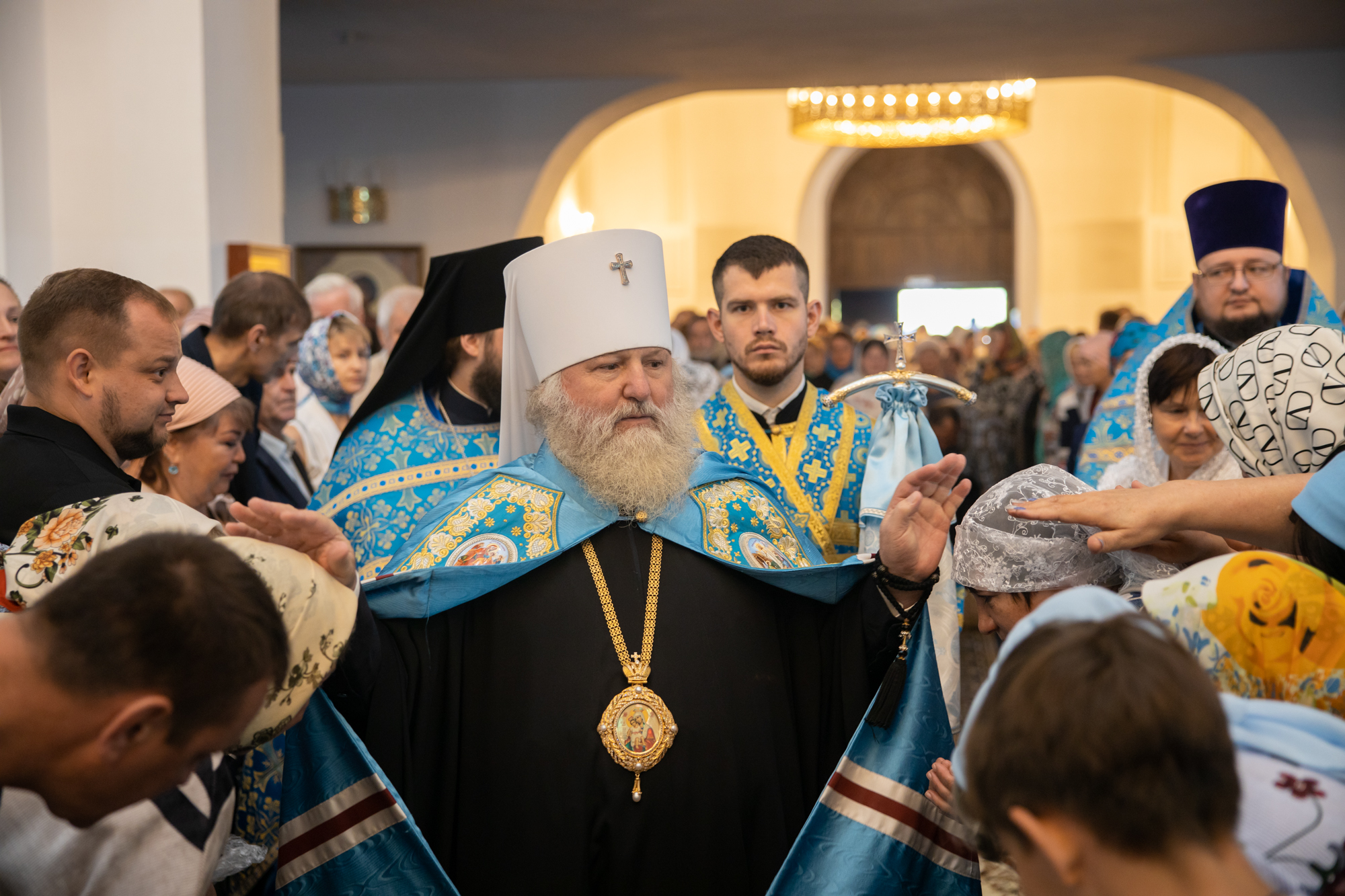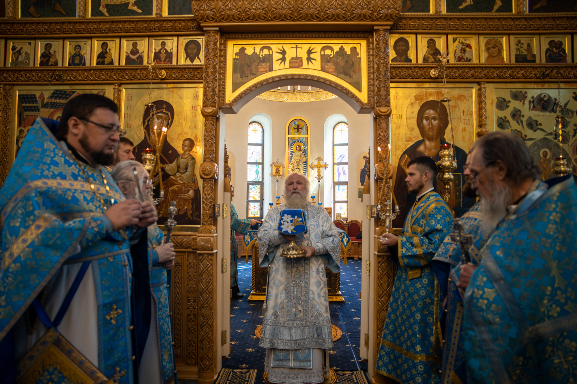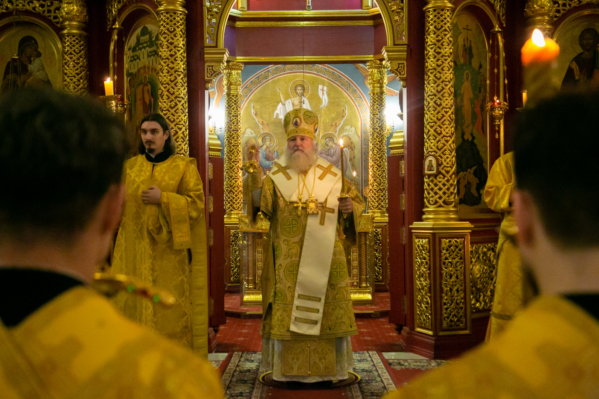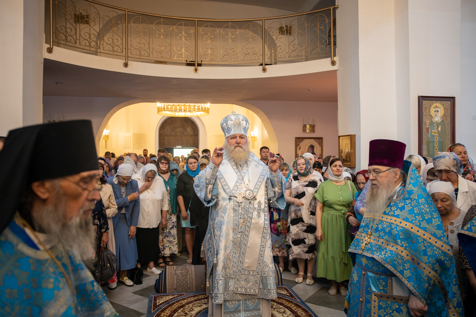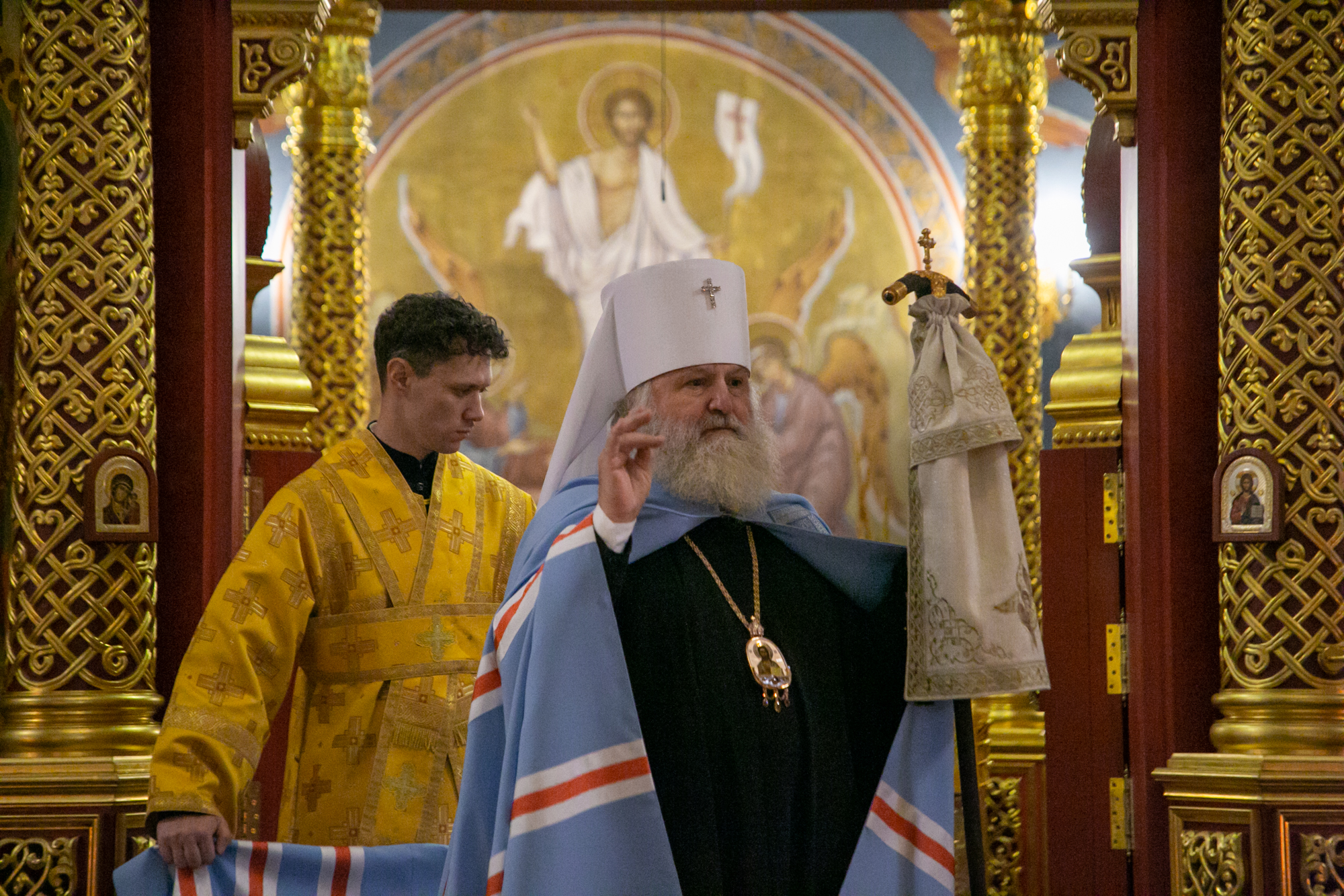 Его Высокопреосвященству сослужили: благочинный Ханты-Мансийского благочиния иерей Димитрий Губанищев, ключарь собора иерей Александр Петюр, духовенство собора.