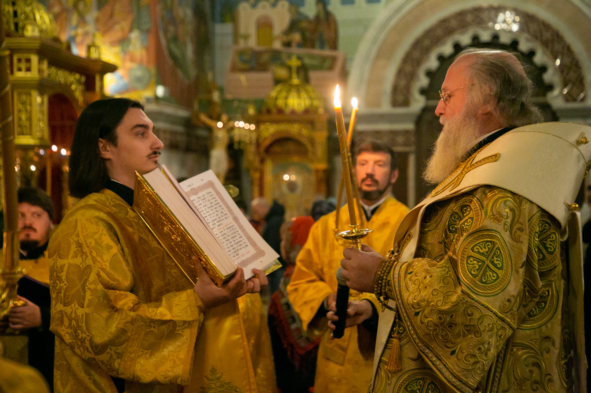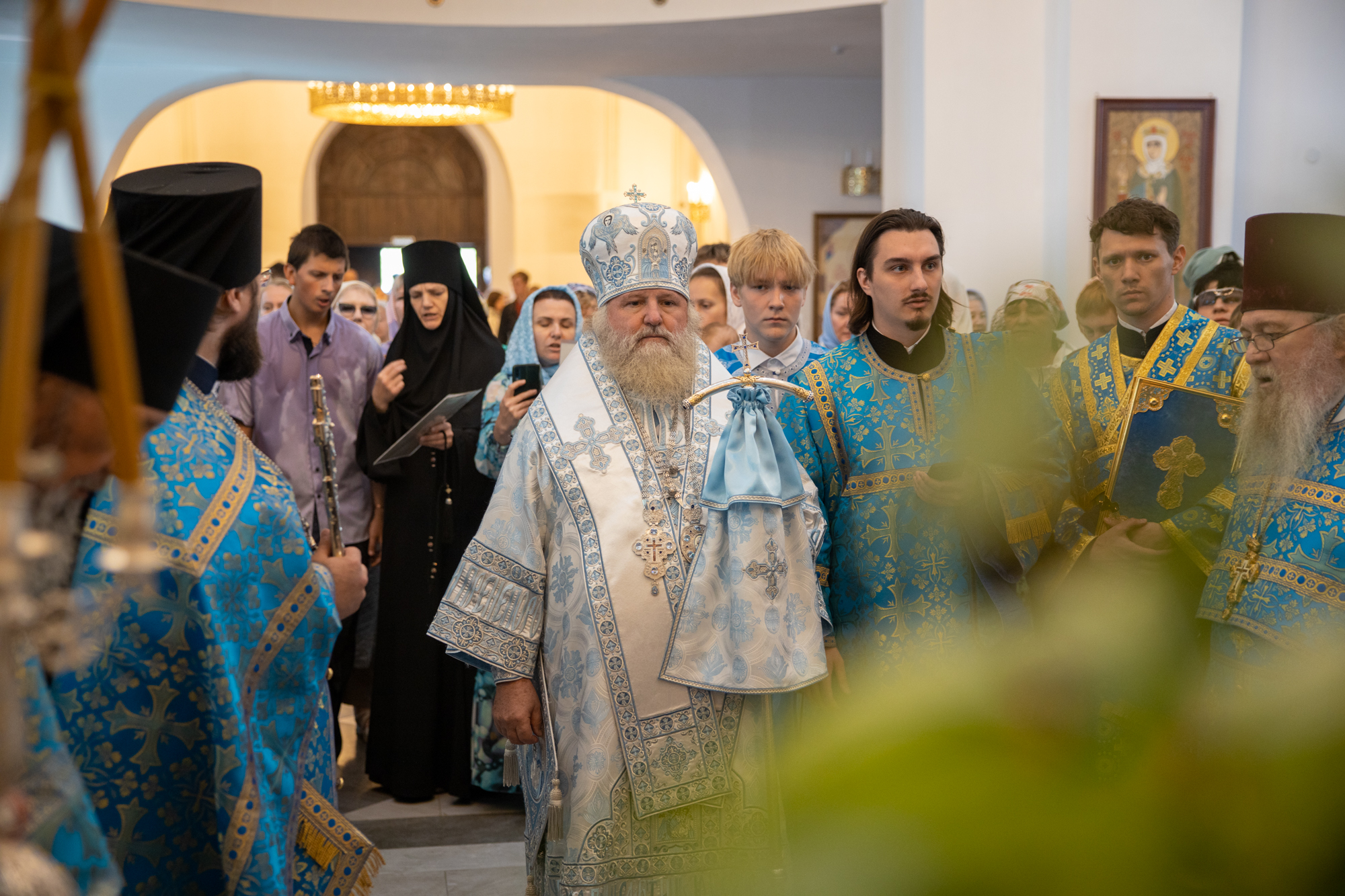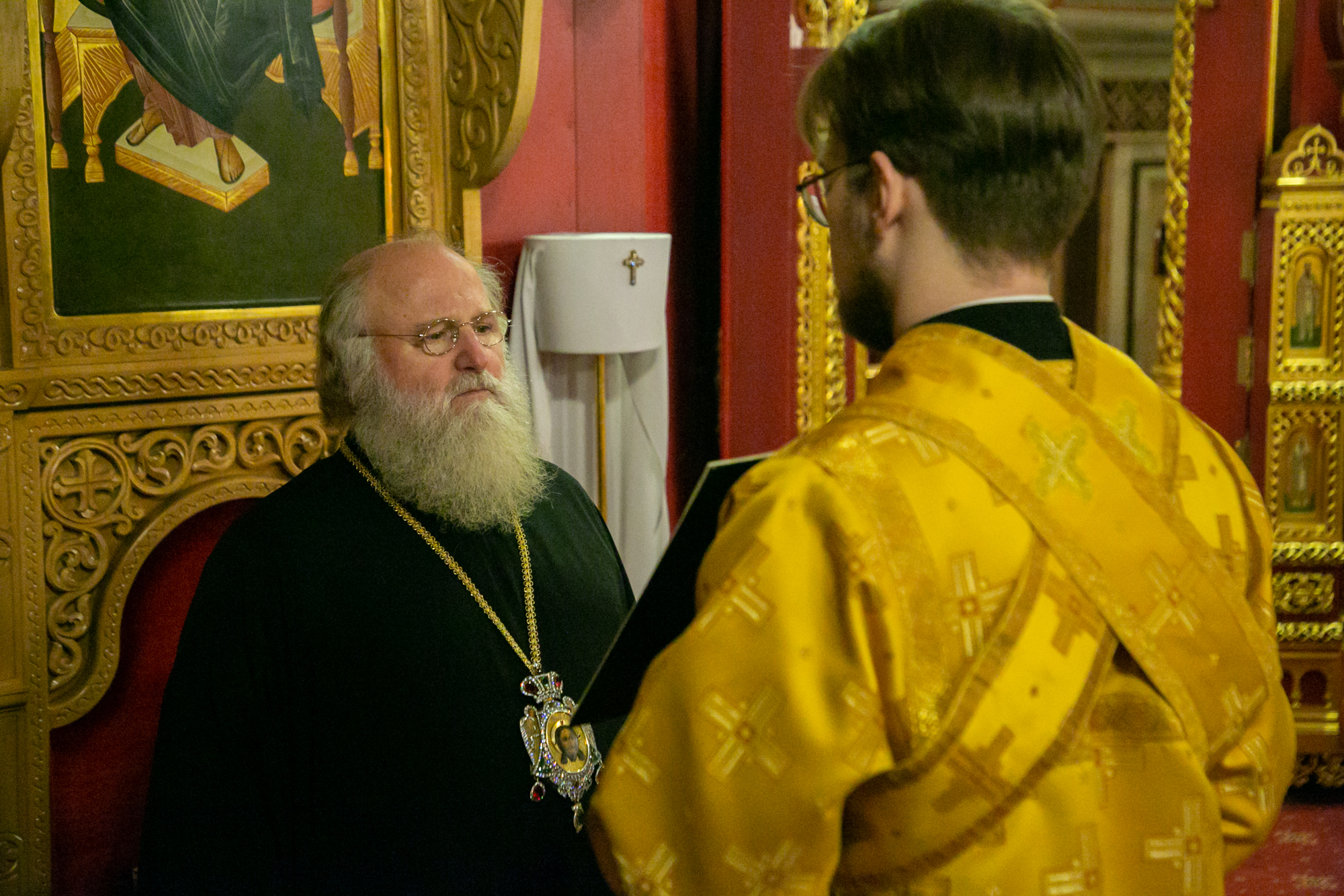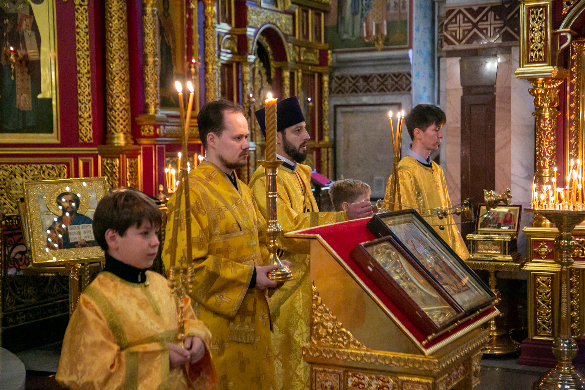 Его Высокопреосвященству сослужили: благочинный Ханты-Мансийского благочиния иерей Димитрий Губанищев, ключарь собора иерей Александр Петюр, духовенство собора.