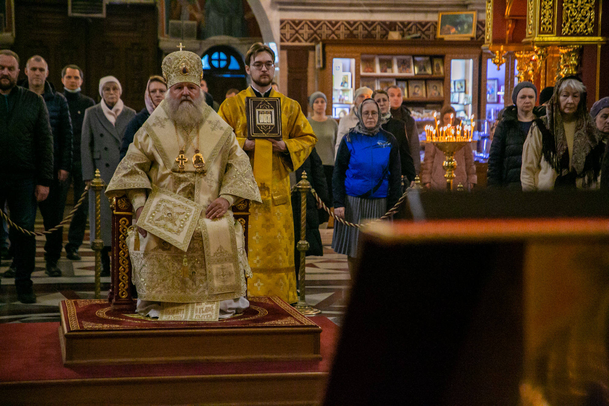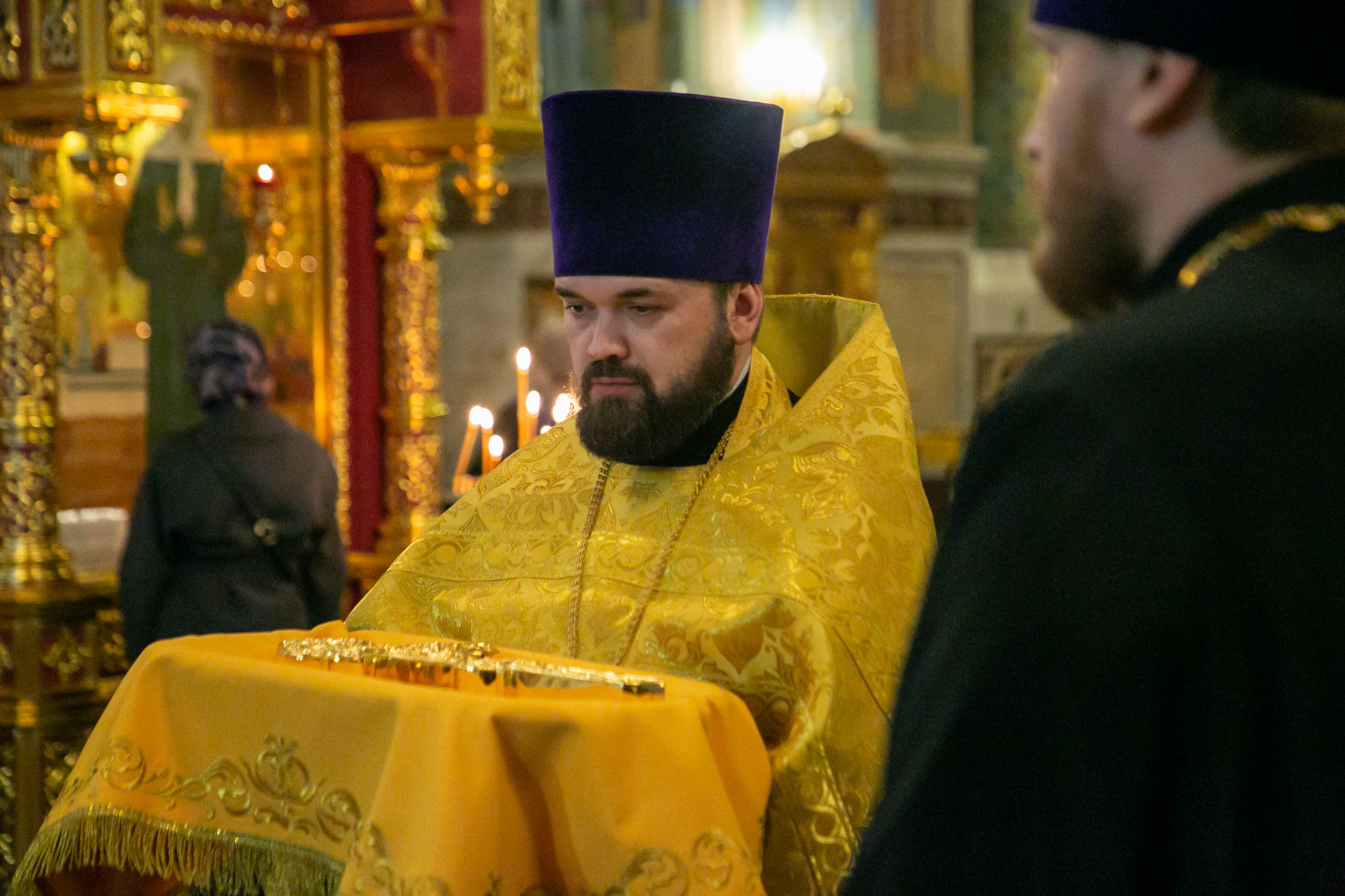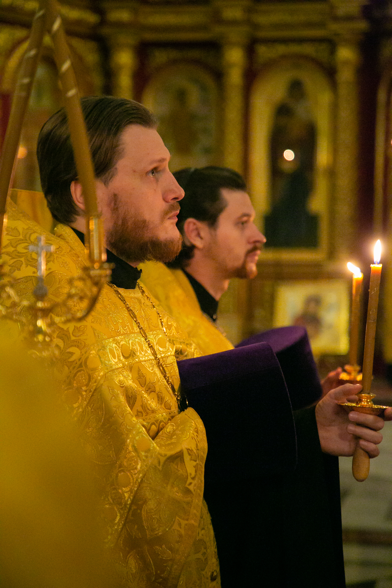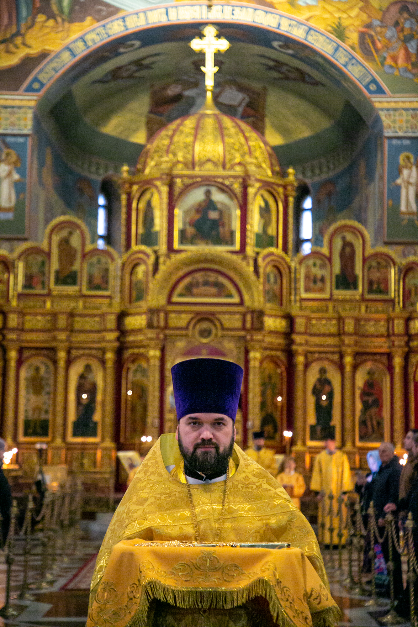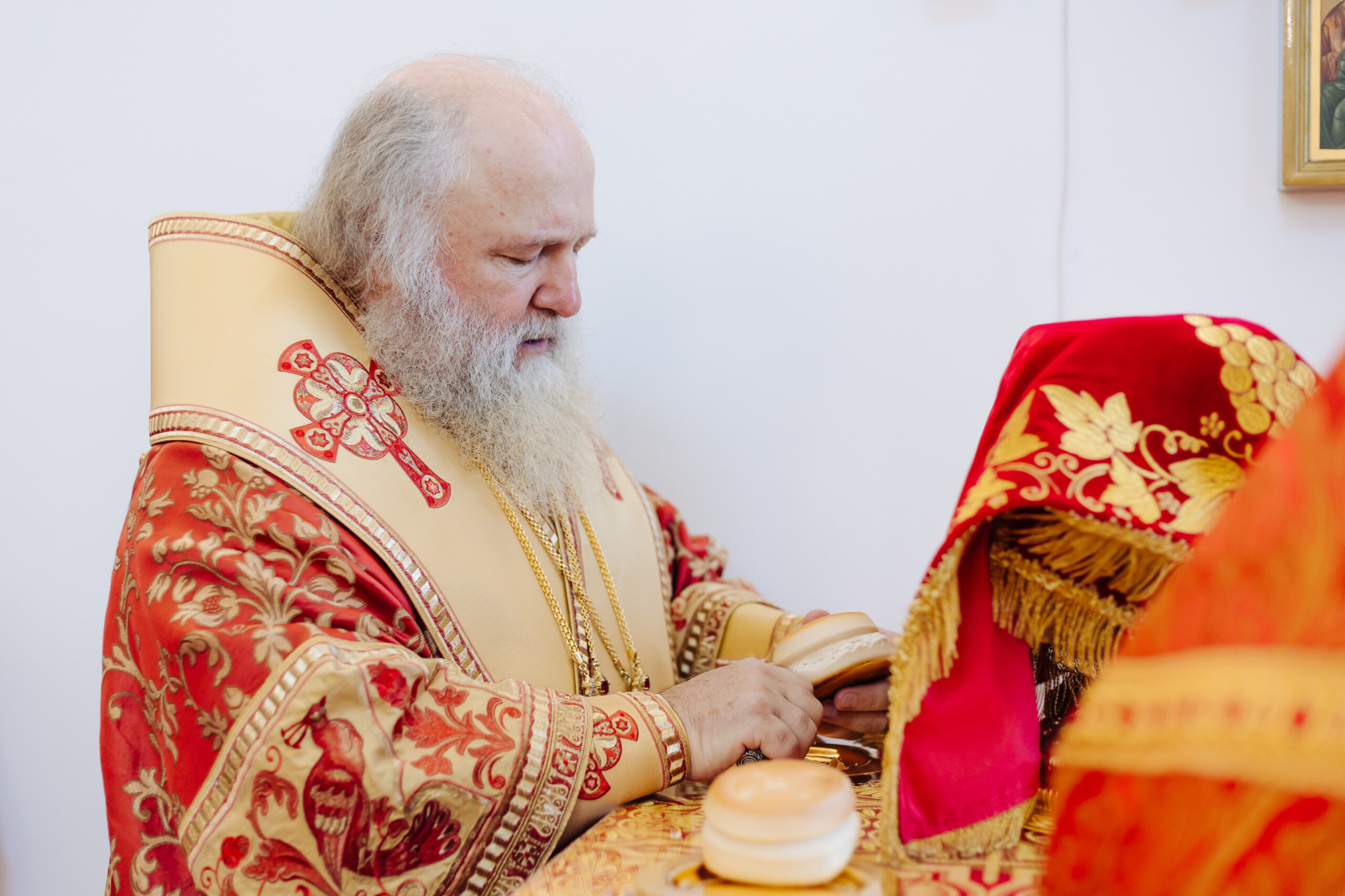 Его Высокопреосвященству сослужили: благочинный Ханты-Мансийского благочиния иерей Димитрий Губанищев, ключарь собора иерей Александр Петюр, духовенство собора.