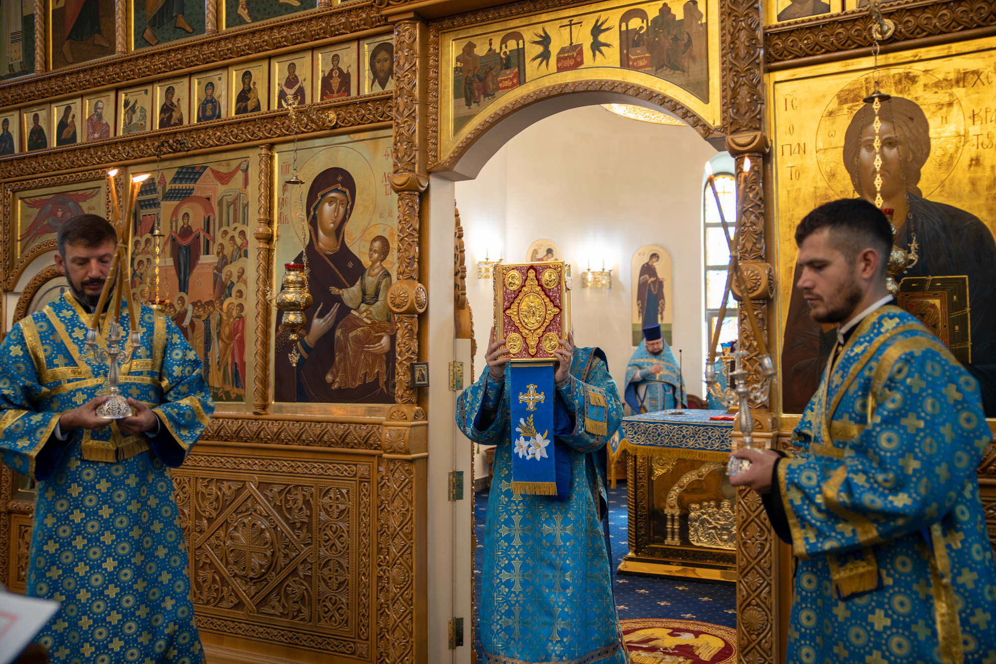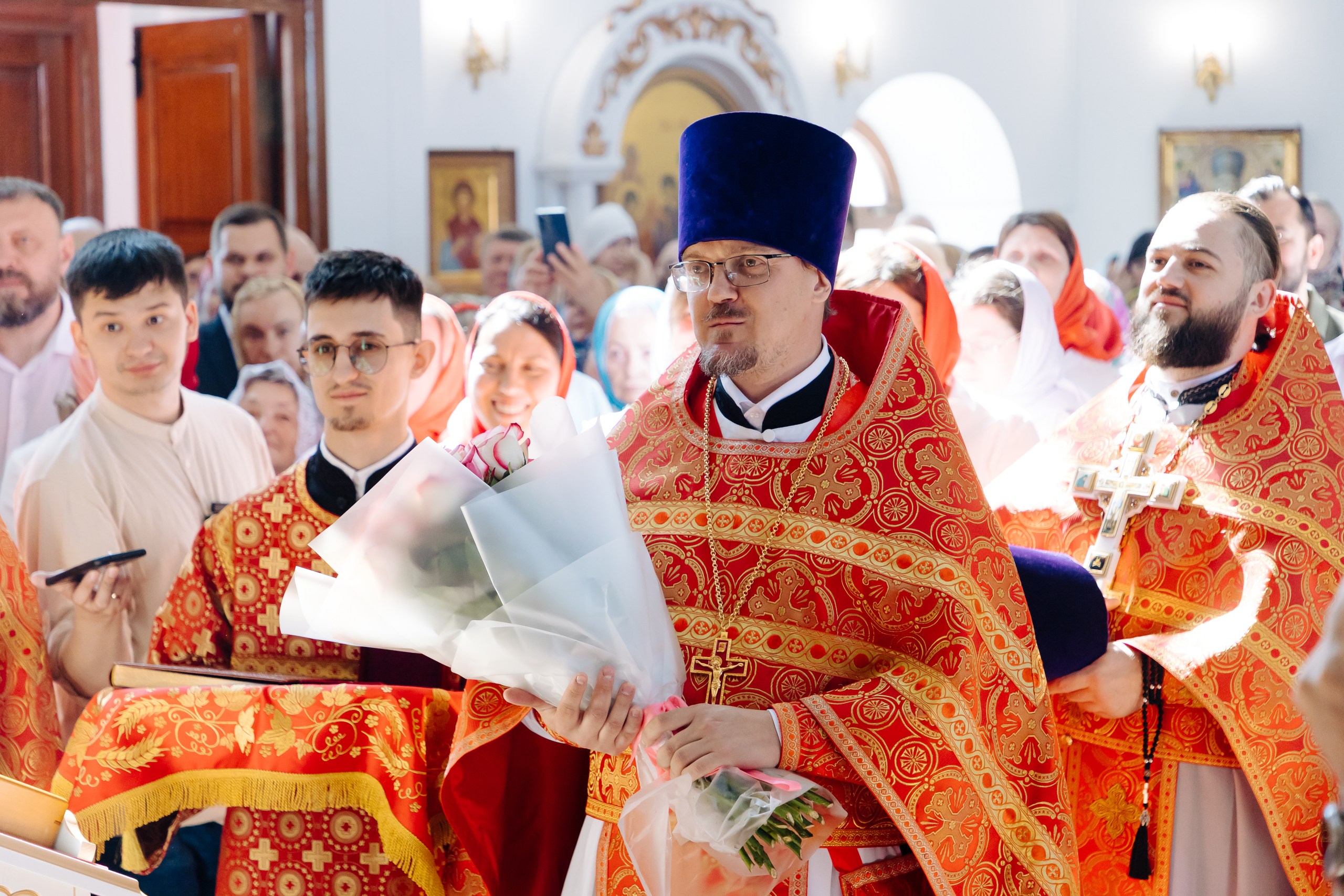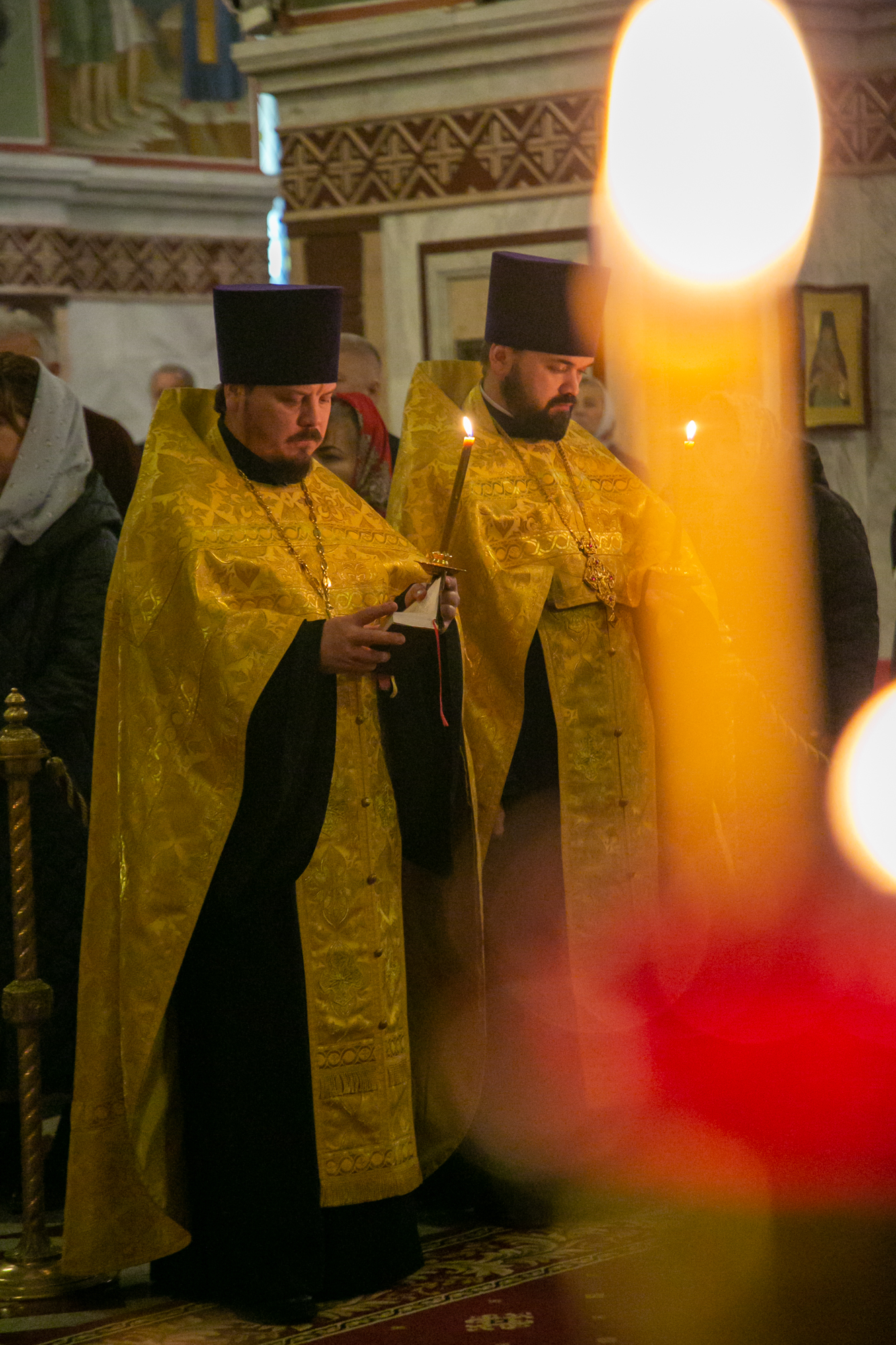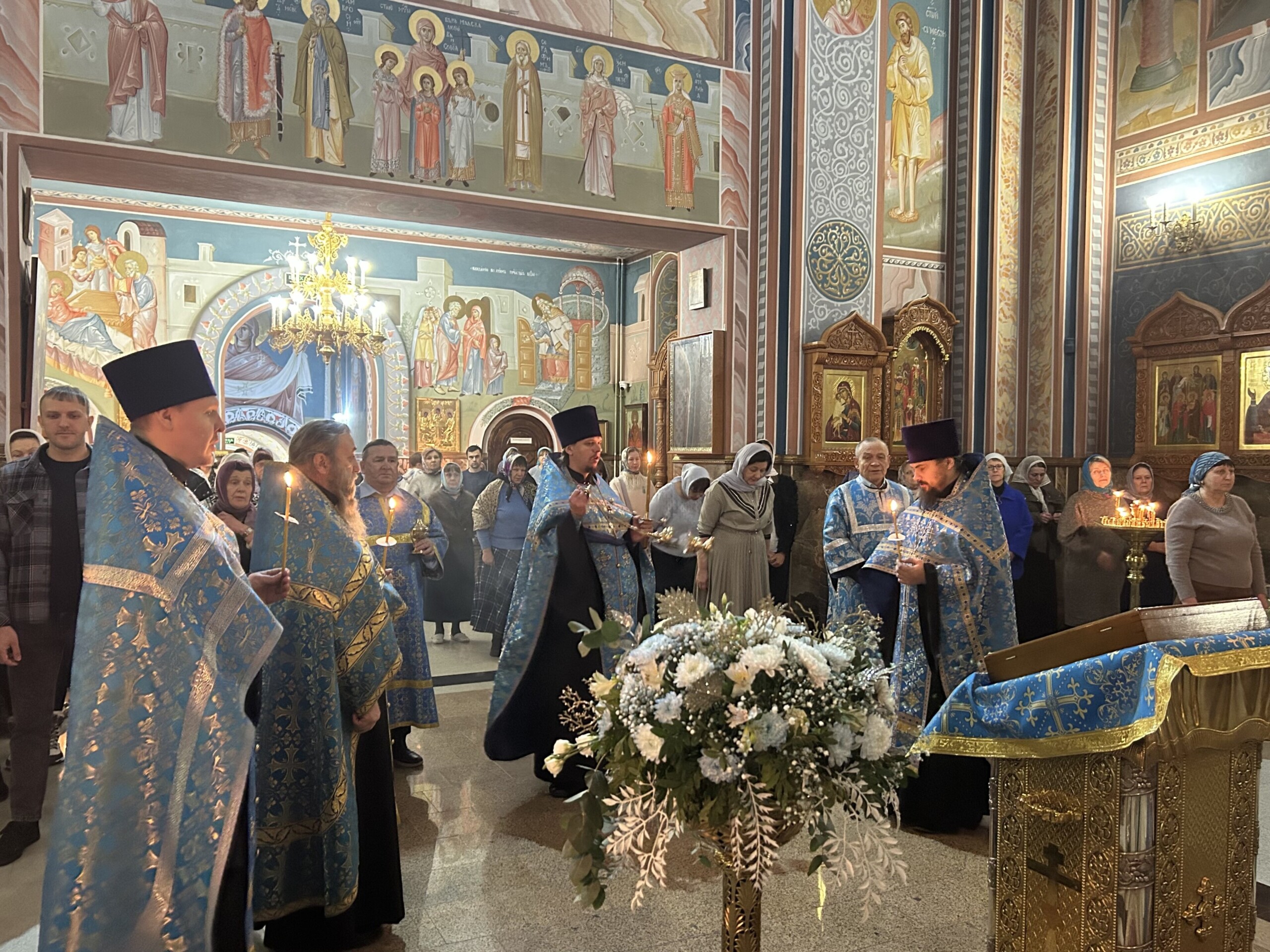 Его Высокопреосвященству сослужили: благочинный Ханты-Мансийского благочиния иерей Димитрий Губанищев, ключарь собора иерей Александр Петюр, духовенство собора.