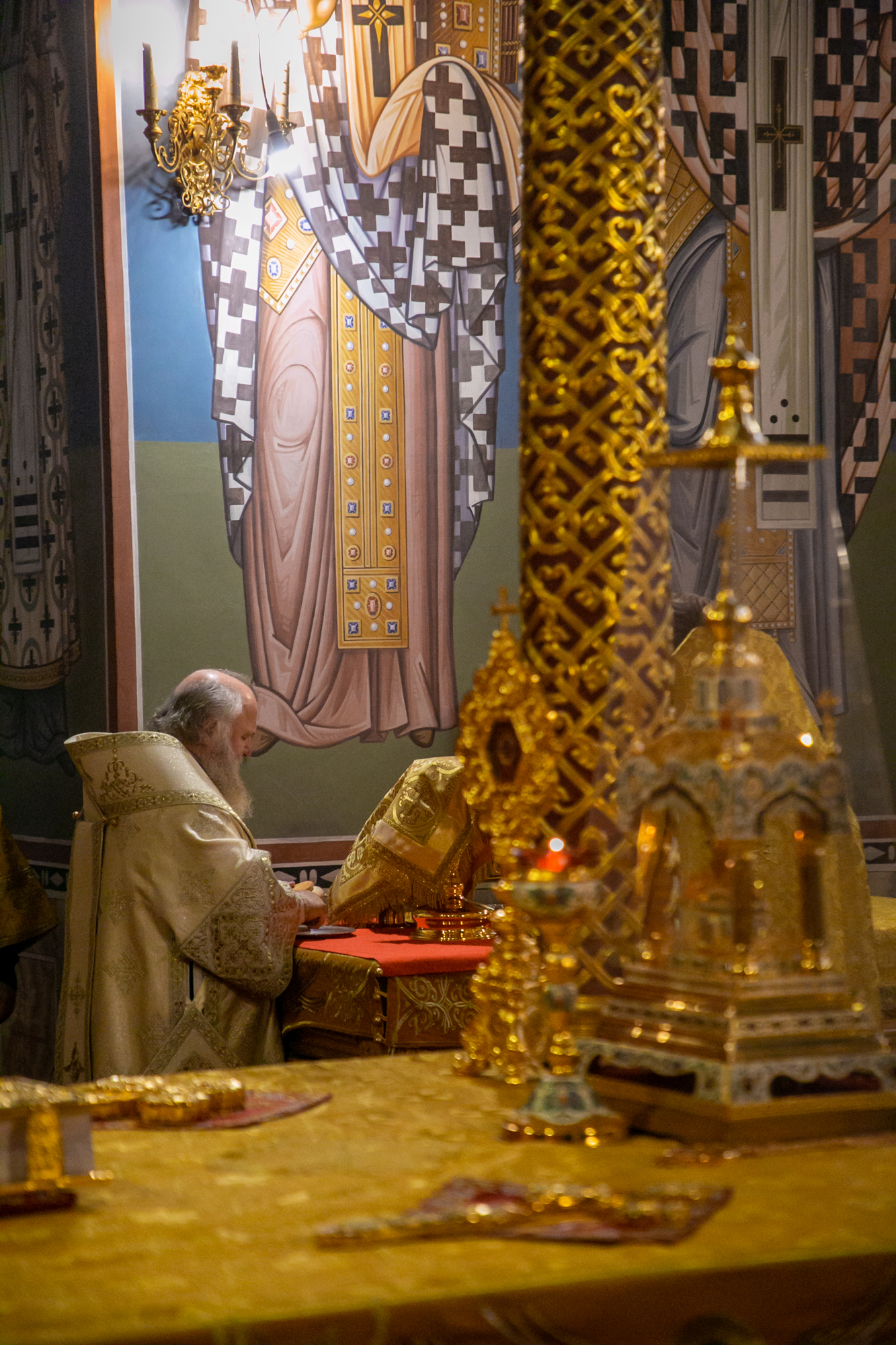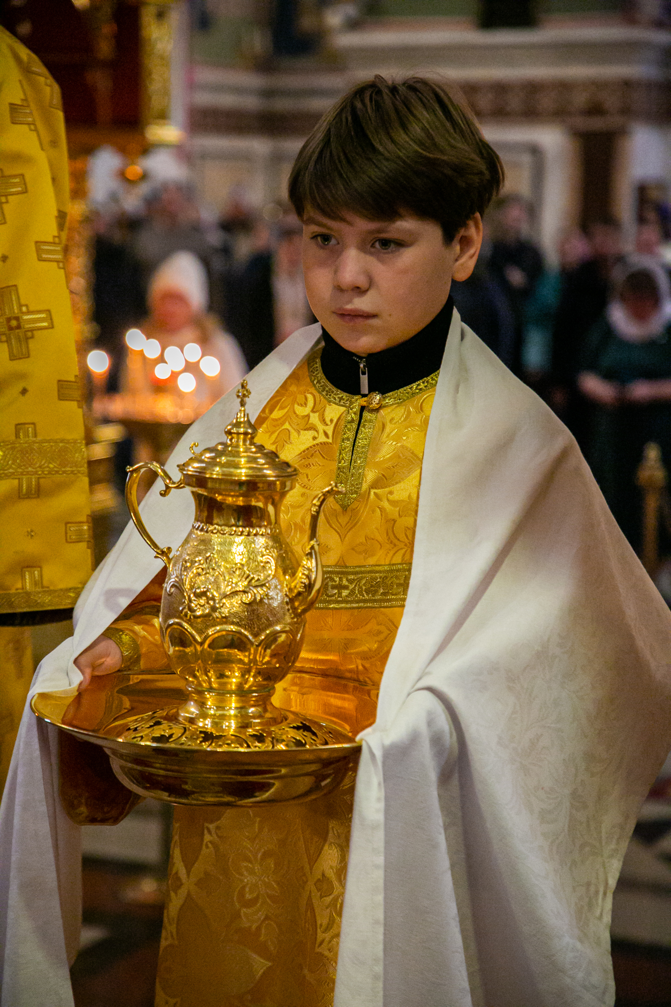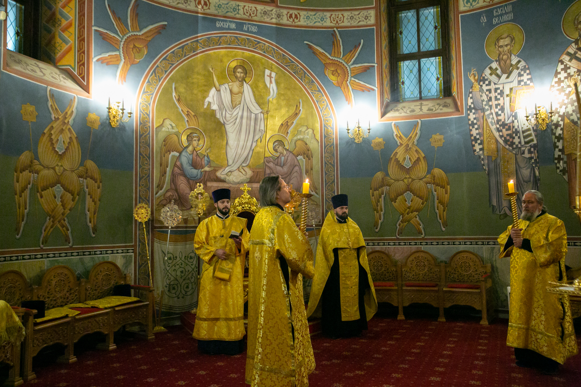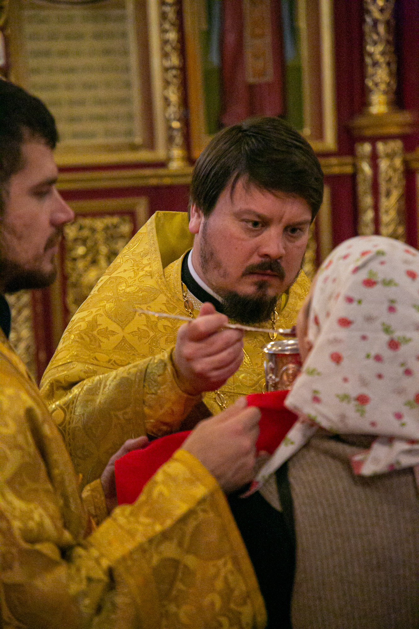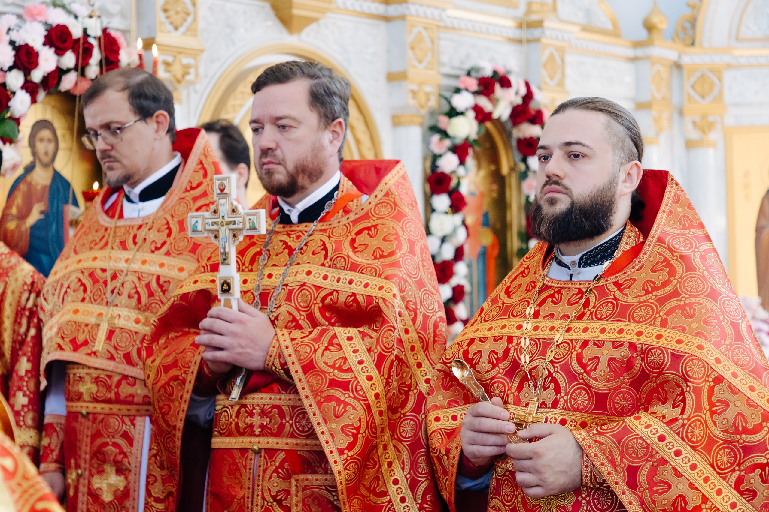 Его Высокопреосвященству сослужили: благочинный Ханты-Мансийского благочиния иерей Димитрий Губанищев, ключарь собора иерей Александр Петюр, духовенство собора.
