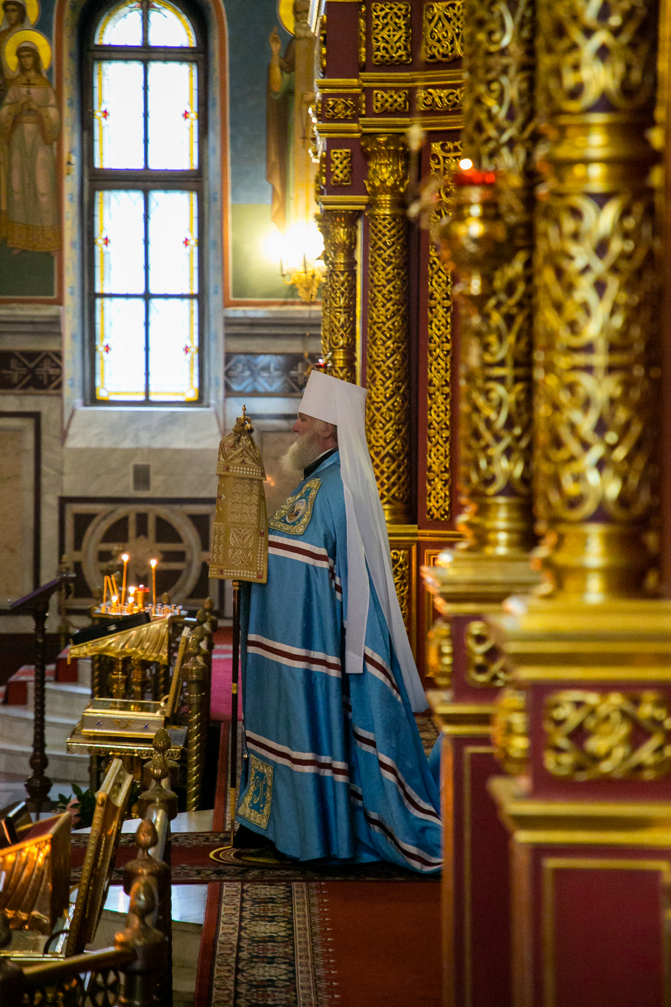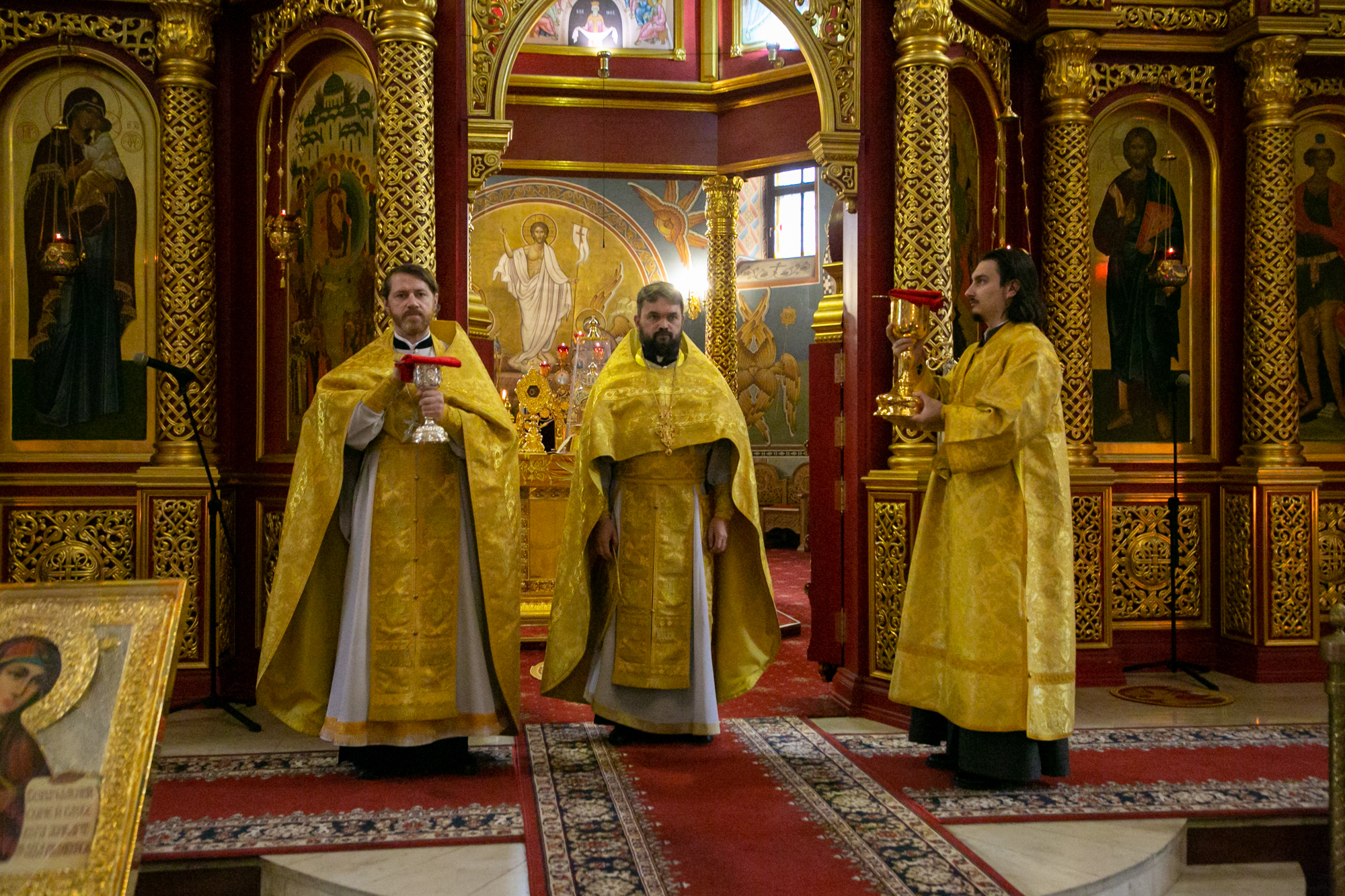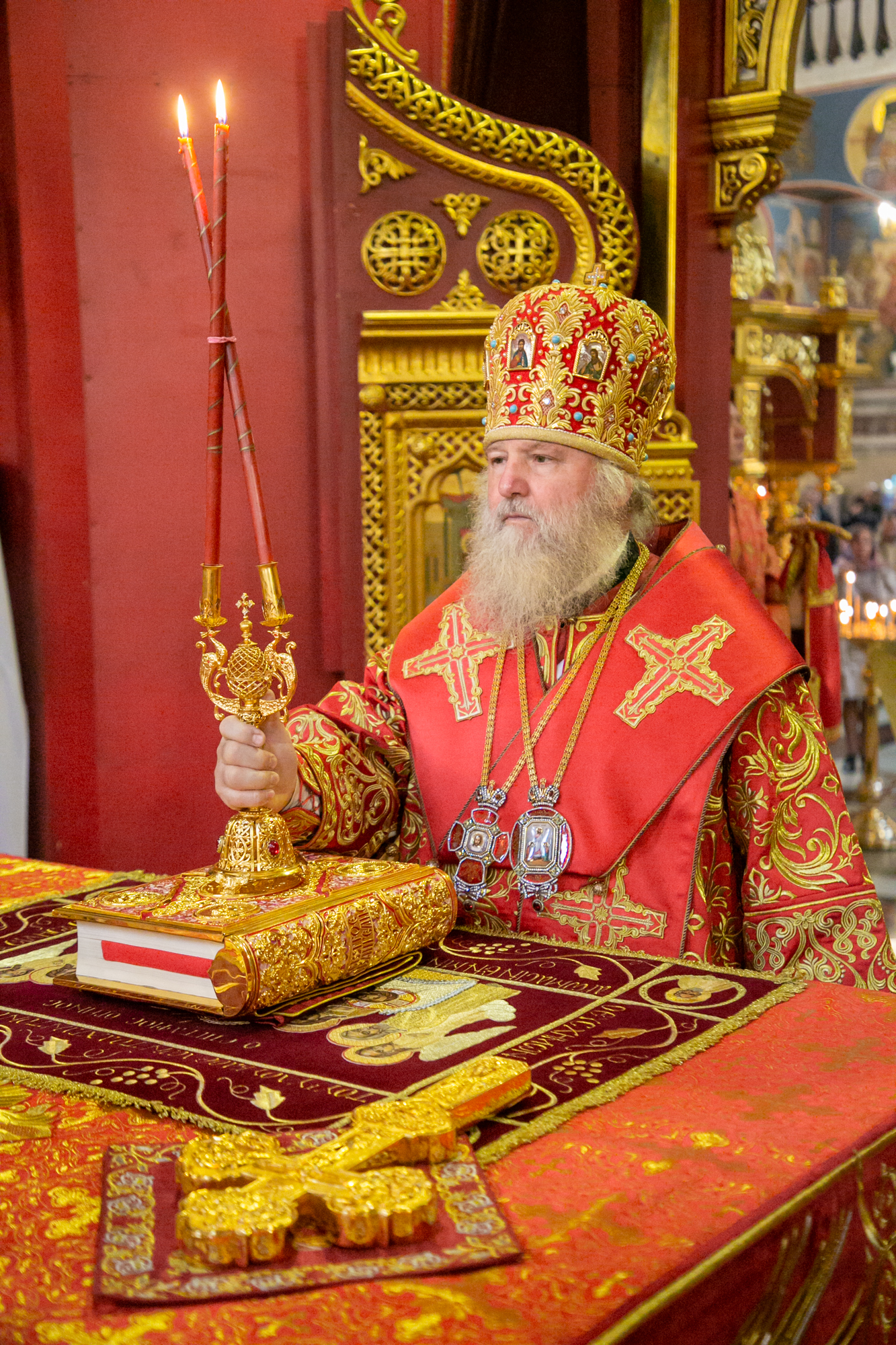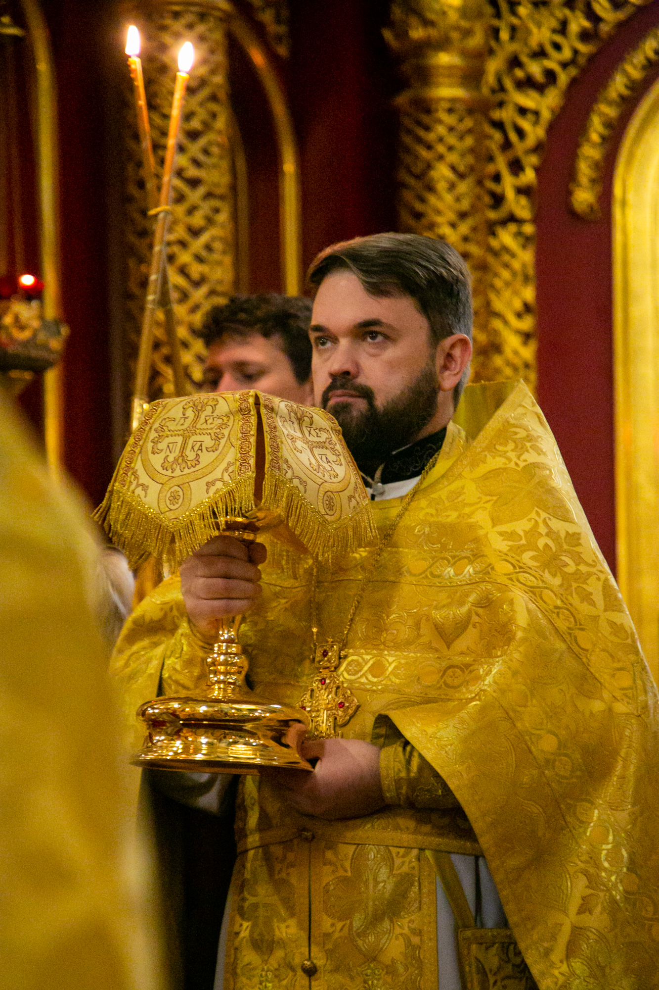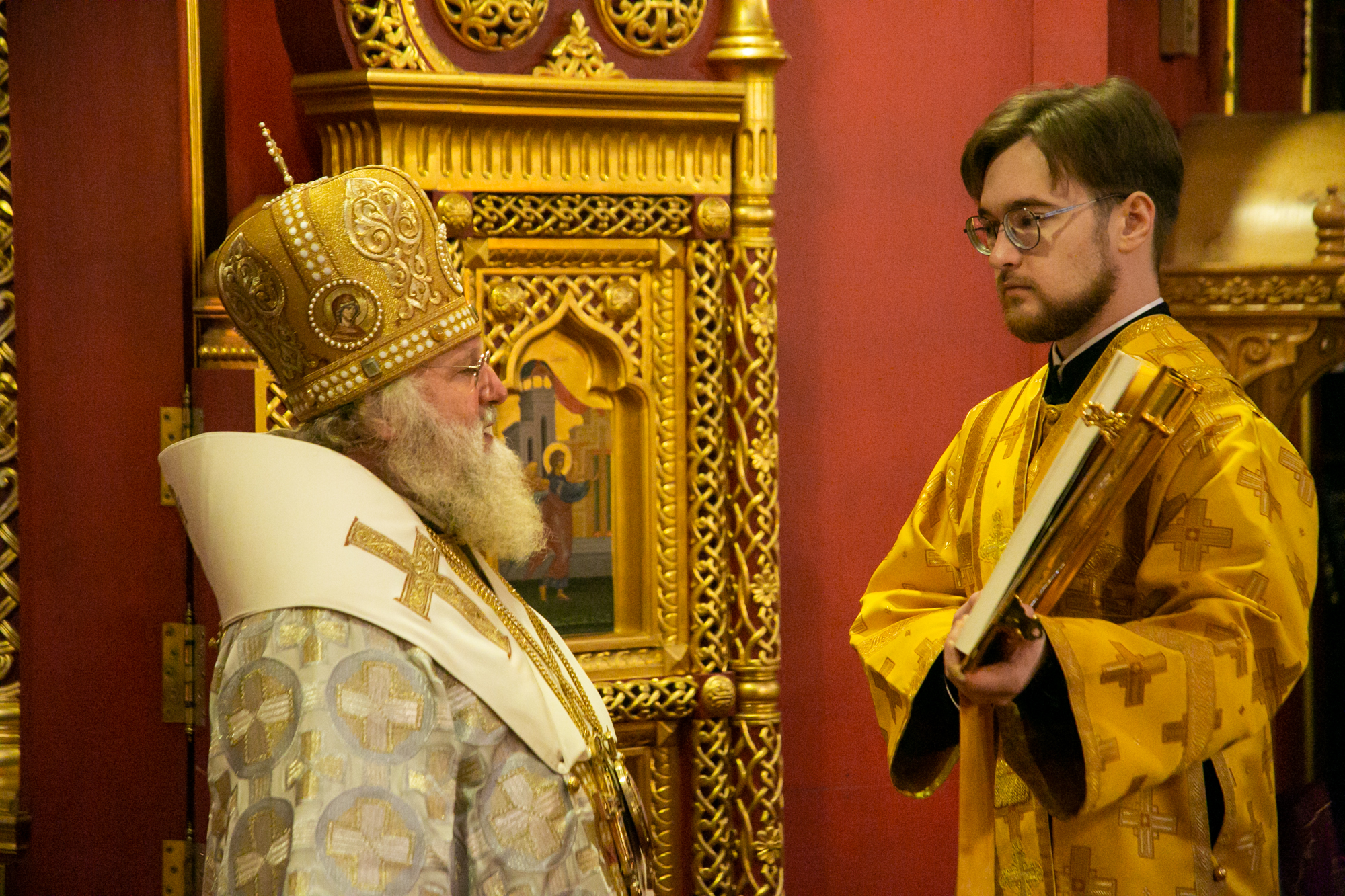 Его Высокопреосвященству сослужили: благочинный Ханты-Мансийского благочиния иерей Димитрий Губанищев, ключарь собора иерей Александр Петюр, духовенство собора.