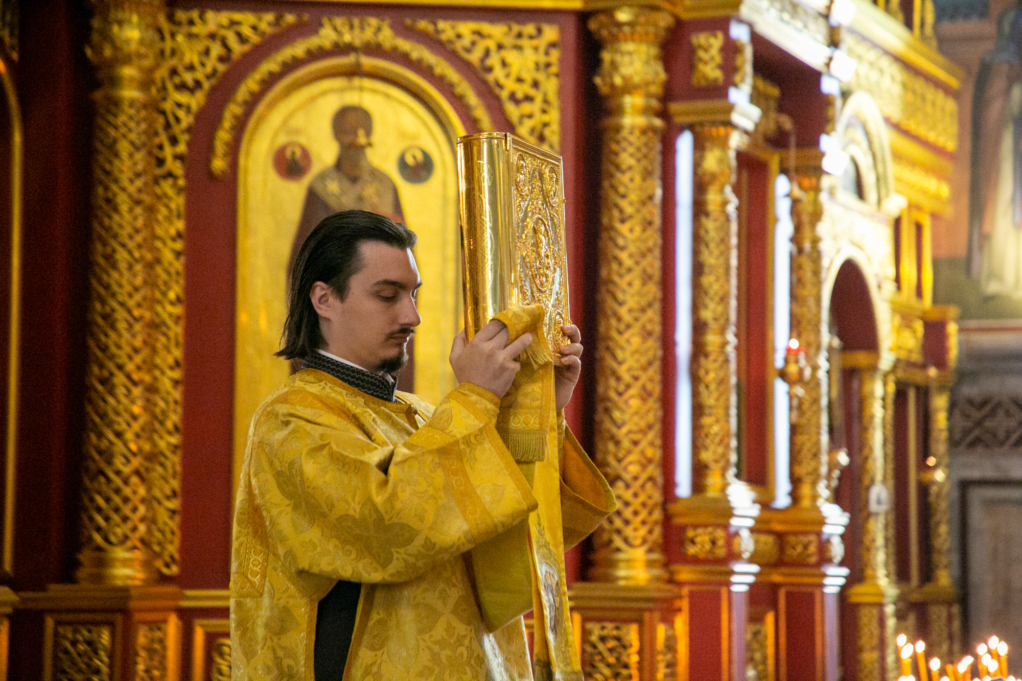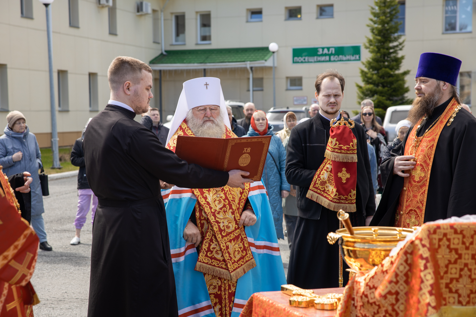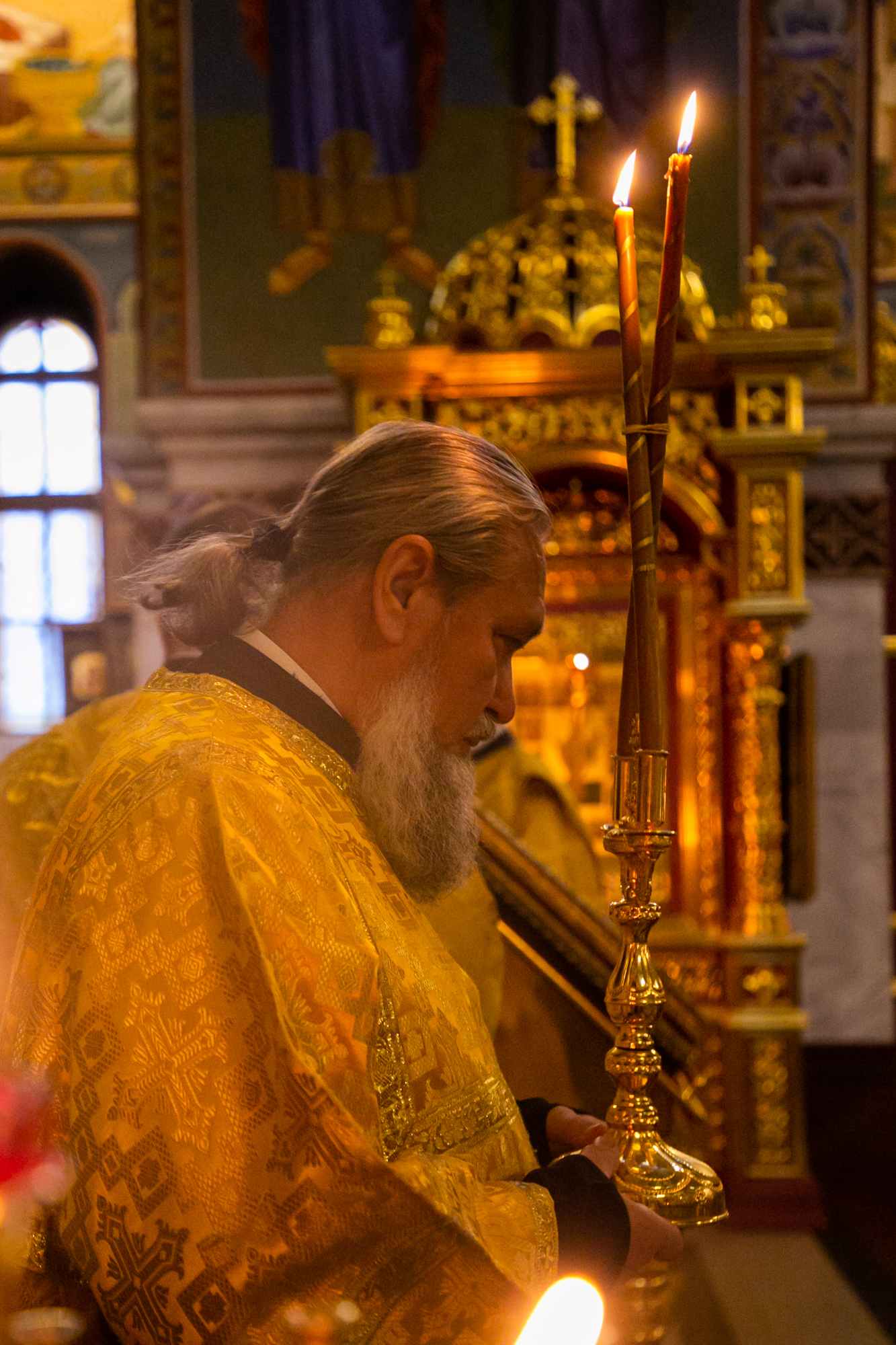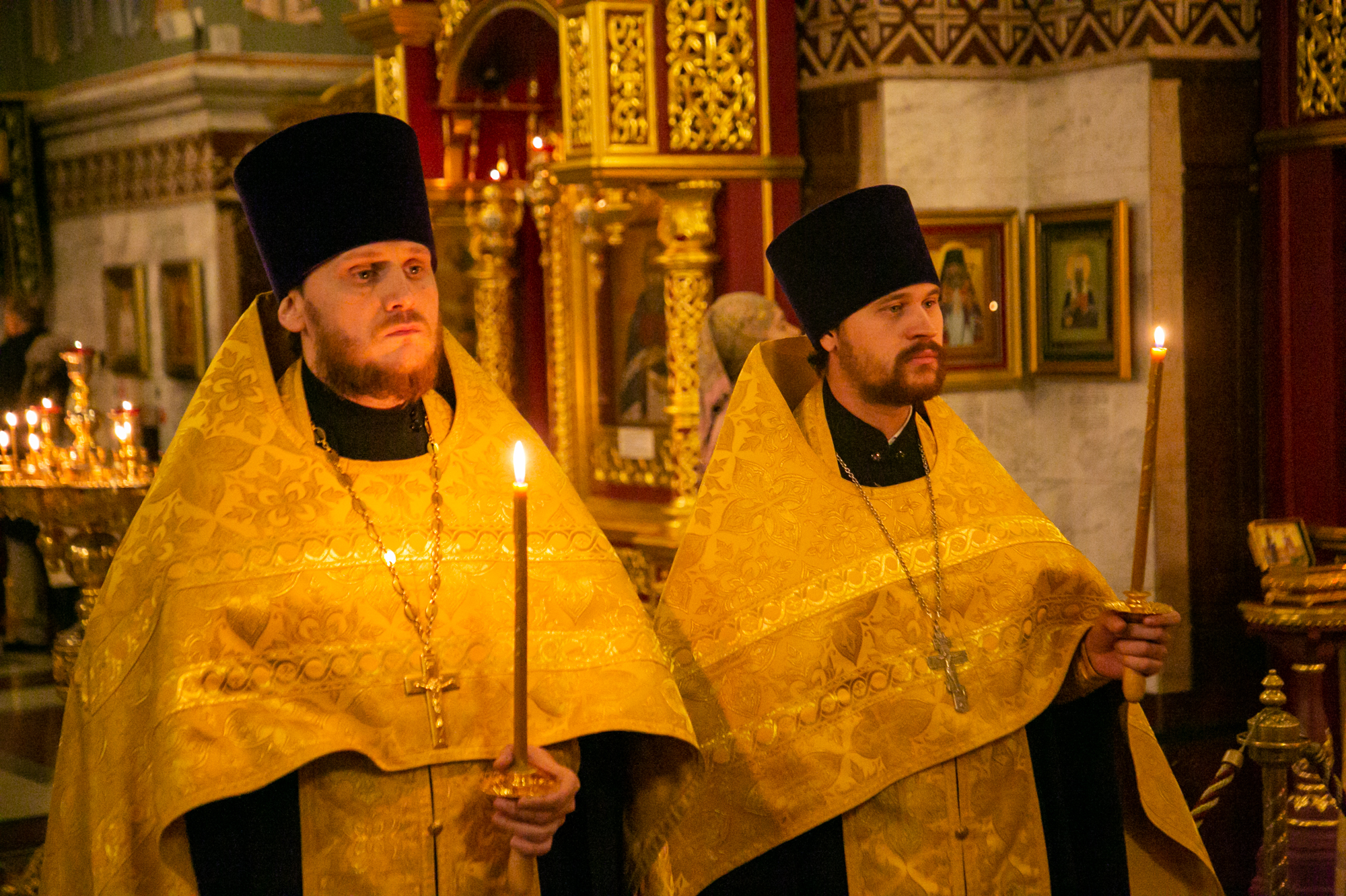 Его Высокопреосвященству сослужили: благочинный Ханты-Мансийского благочиния иерей Димитрий Губанищев, ключарь собора иерей Александр Петюр, духовенство собора.