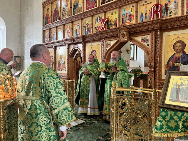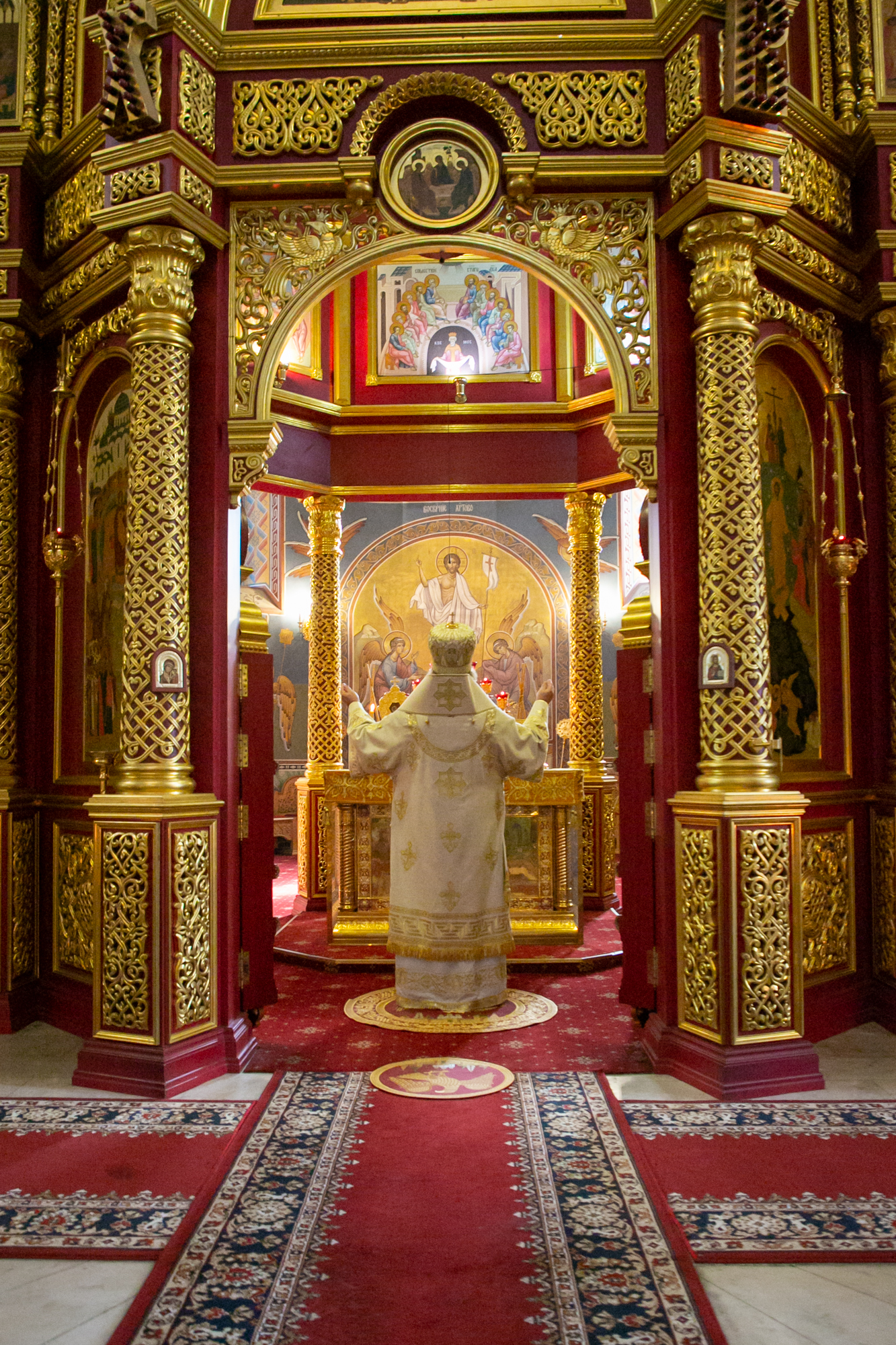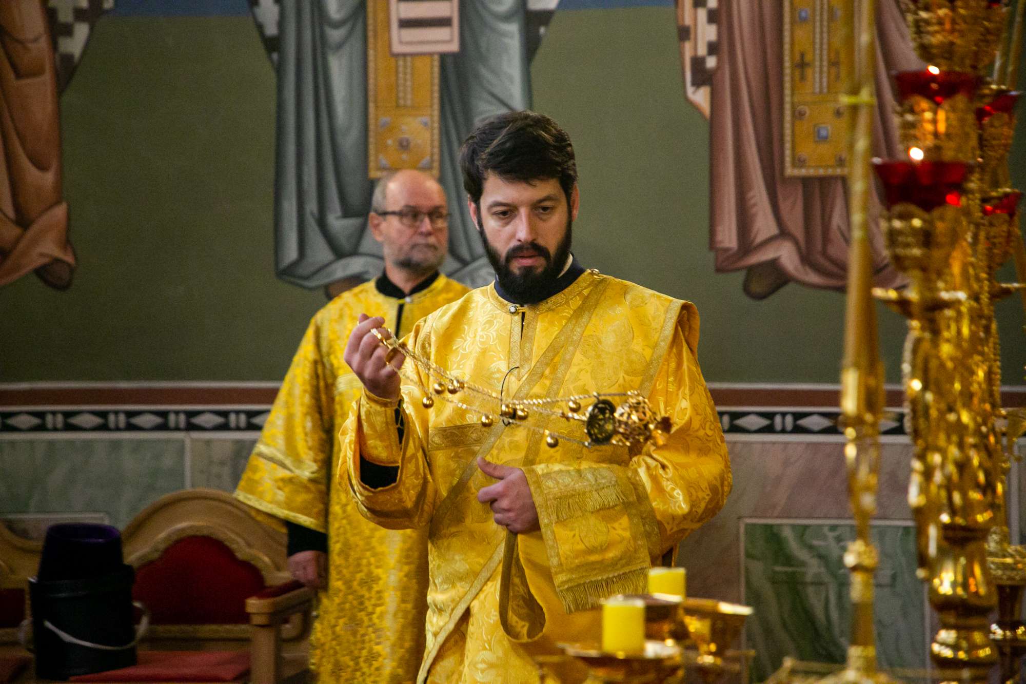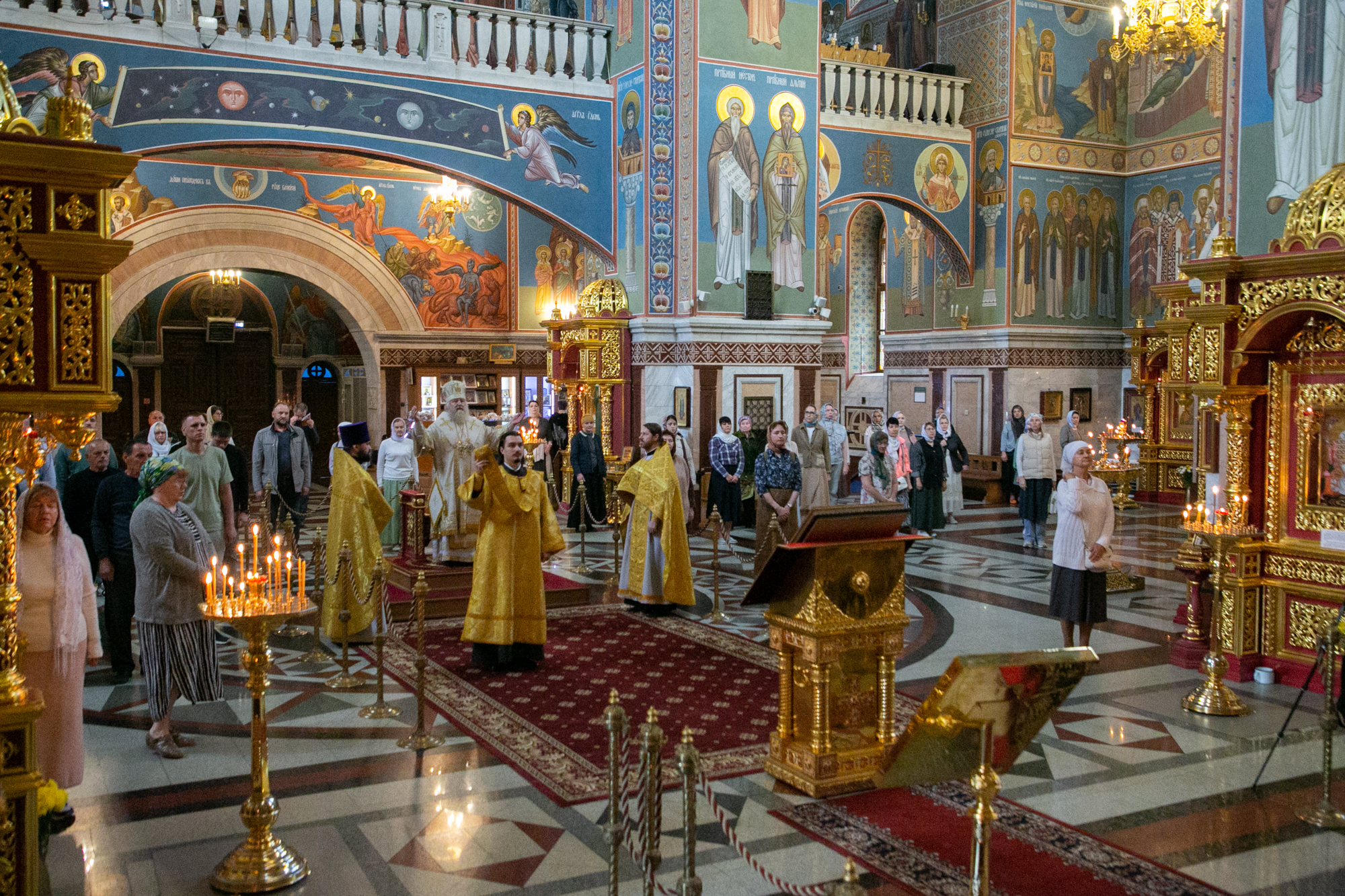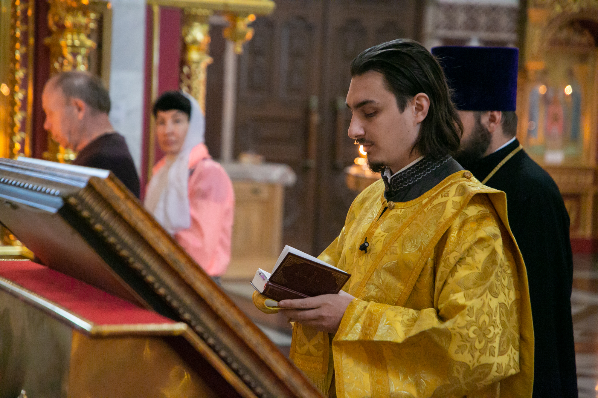 Его Высокопреосвященству сослужили: благочинный Ханты-Мансийского благочиния иерей Димитрий Губанищев, ключарь собора иерей Александр Петюр, духовенство собора.