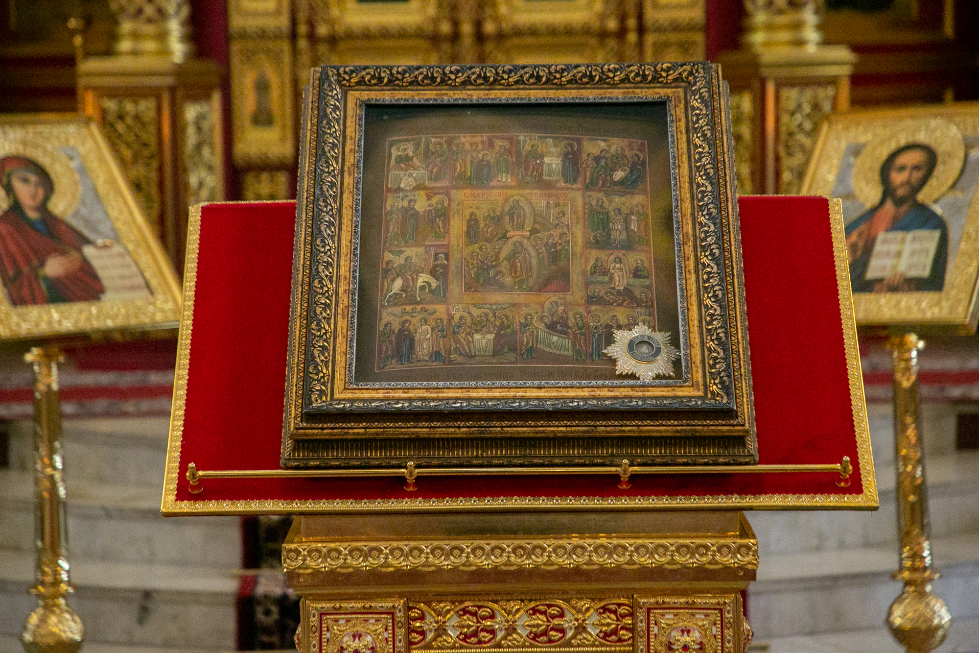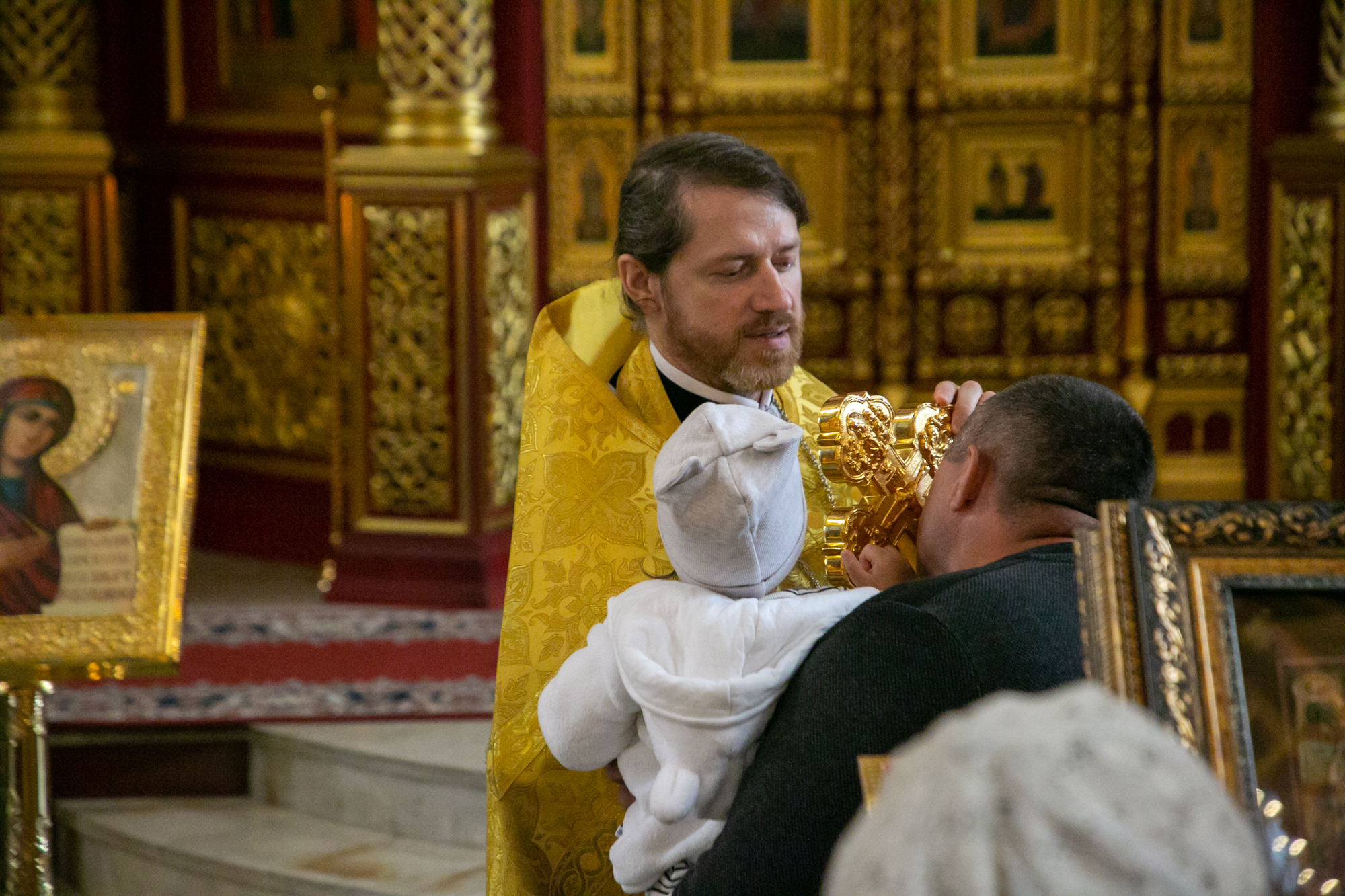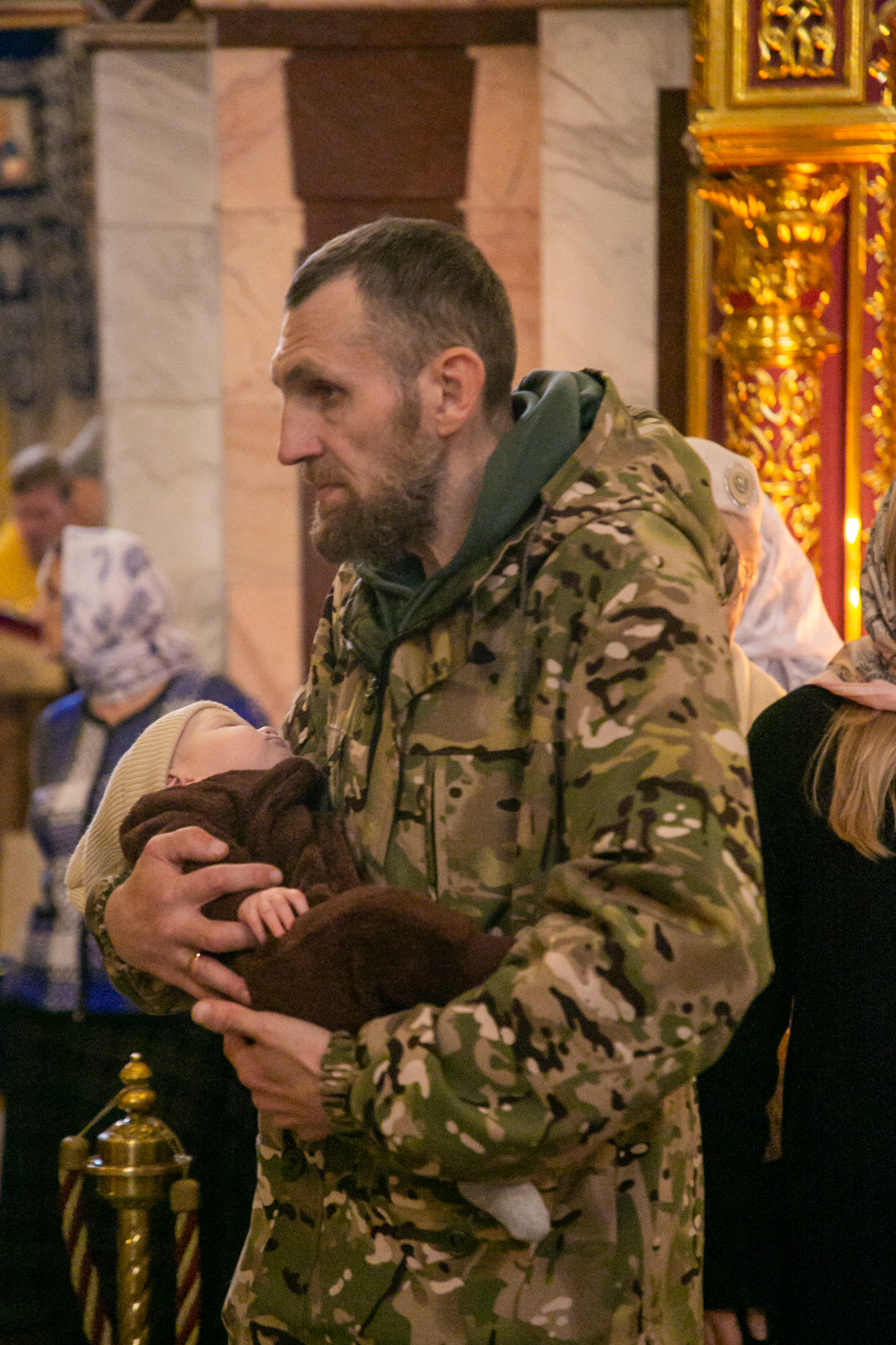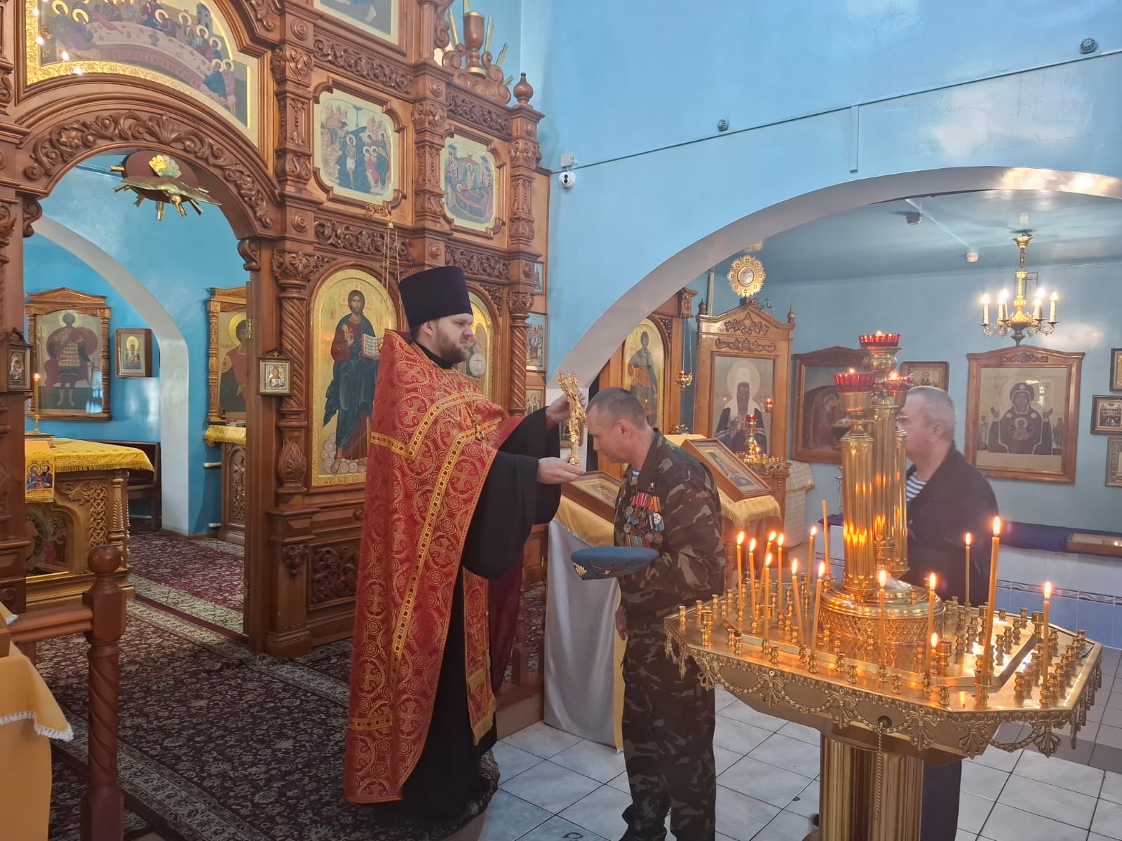На мирной и сугубой ектениях были вознесены молитвы о Российском воинстве и о мире.