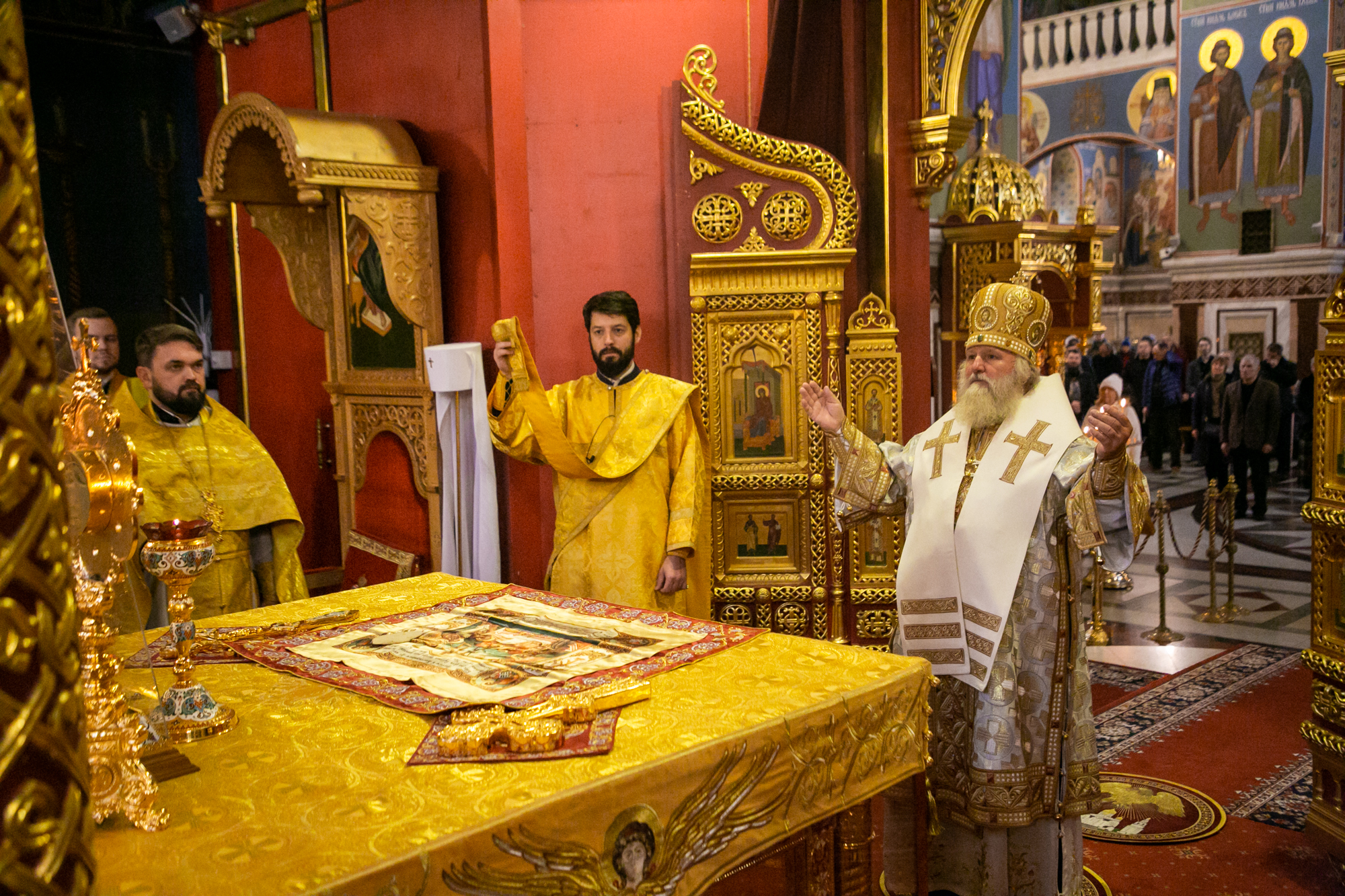 В канун праздника Введения во храм Пресвятой Богородицы митрополит Павел совершил всенощное бдение в Воскресенском кафедральном соборе г. Ханты-Мансийска