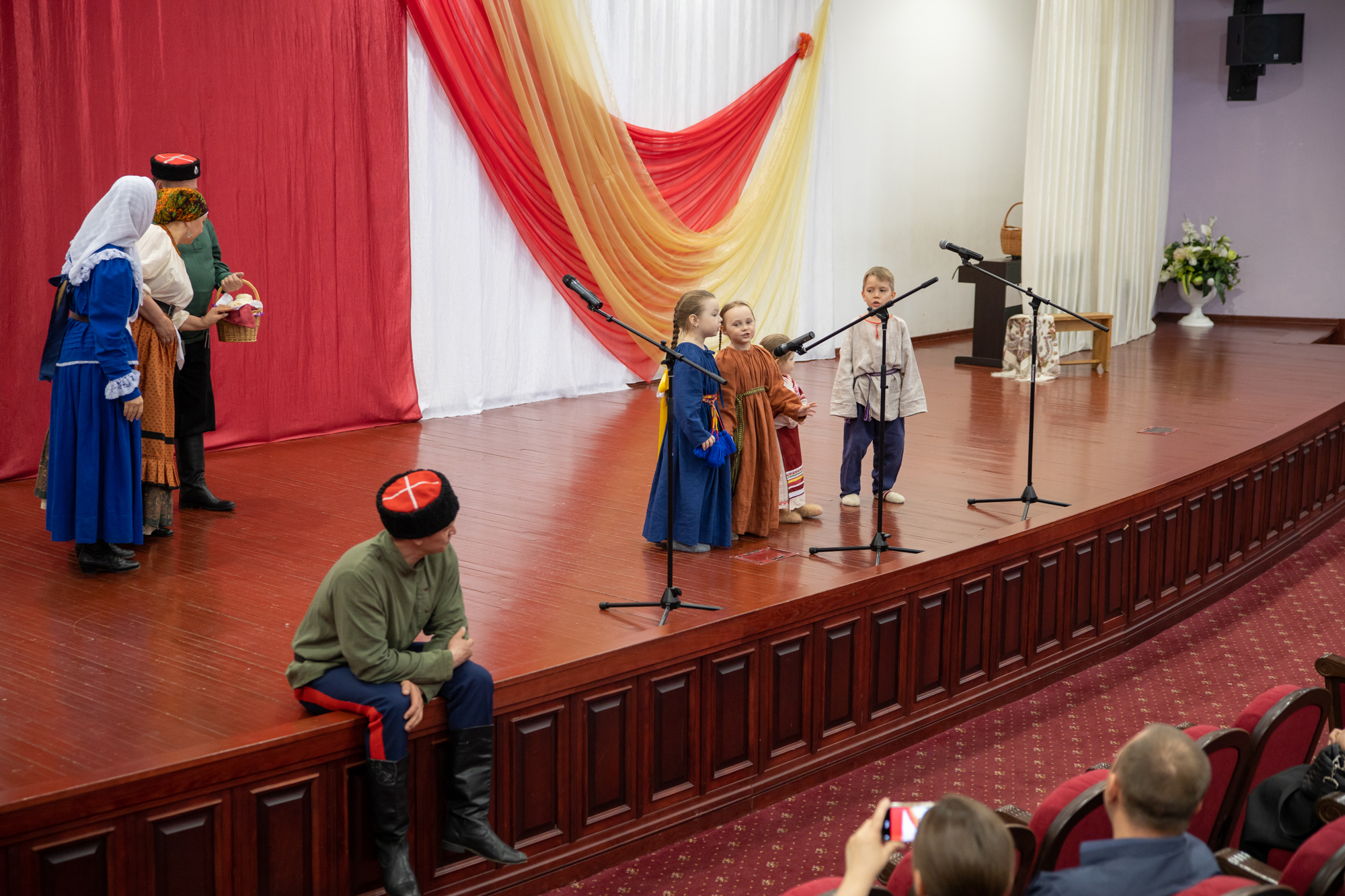 Воспитанники воскресной школы храма Архистратига Михаила поздравили гостей с праздником почитали душевные стихи и спели песню о добре.