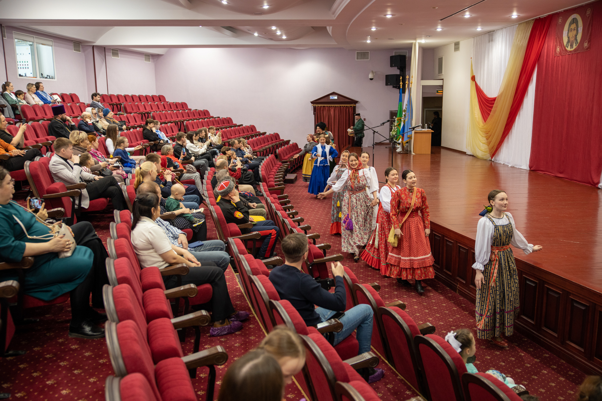 30 ноября 2025 года в воскресной школе храма Георгия Победоносца г.Сургута прошло одно из самых трогательных мероприятий – концерт, посвященный Дню Матери — праздник любви и благодарности. Ученики и преподаватели собрались, чтобы поздравить с праздником самых родных, самых милых и любимых наших мам и бабушек. Полный зал лучился светом улыбок и сиянием глаз родных людей. Поздравительным словом приветствовал всех собравшихся настоятель храма отец Антоний Исаков, отметив огромный женский труд материнства, неиссякаемую женскую силу, бесконечную заботу и безусловную любовь. Дети всех возрастов поздравляли мам и бабушек, рассказывая стихи, исполняя песни и танцы, показывая сценки. Изюминкой концерта стал танец «Девчата», исполненный нашими замечательными и талантливыми мамами.