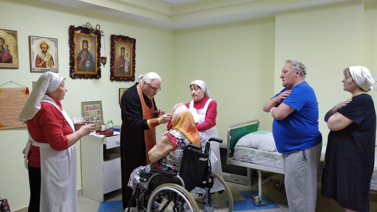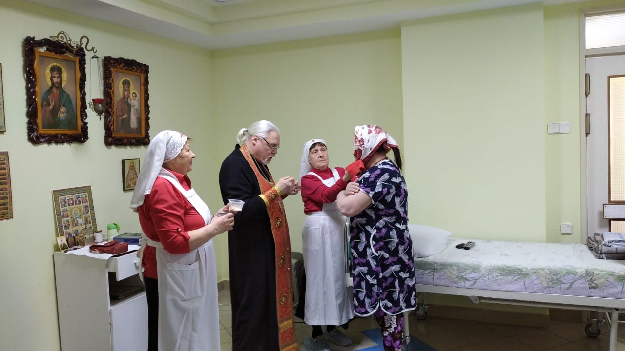 Помимо молебна, по просьбе близких, отец Леонид совершил Таинство Елеосвящения над двумя пациентами. Таинство Соборования является особым лекарством для души, данным самим Христом для исцеления душевных и телесных недугов. Участники молитвы верят, что по вере Господь подаст страждущим силы, утешение и облегчение в их скорби.
